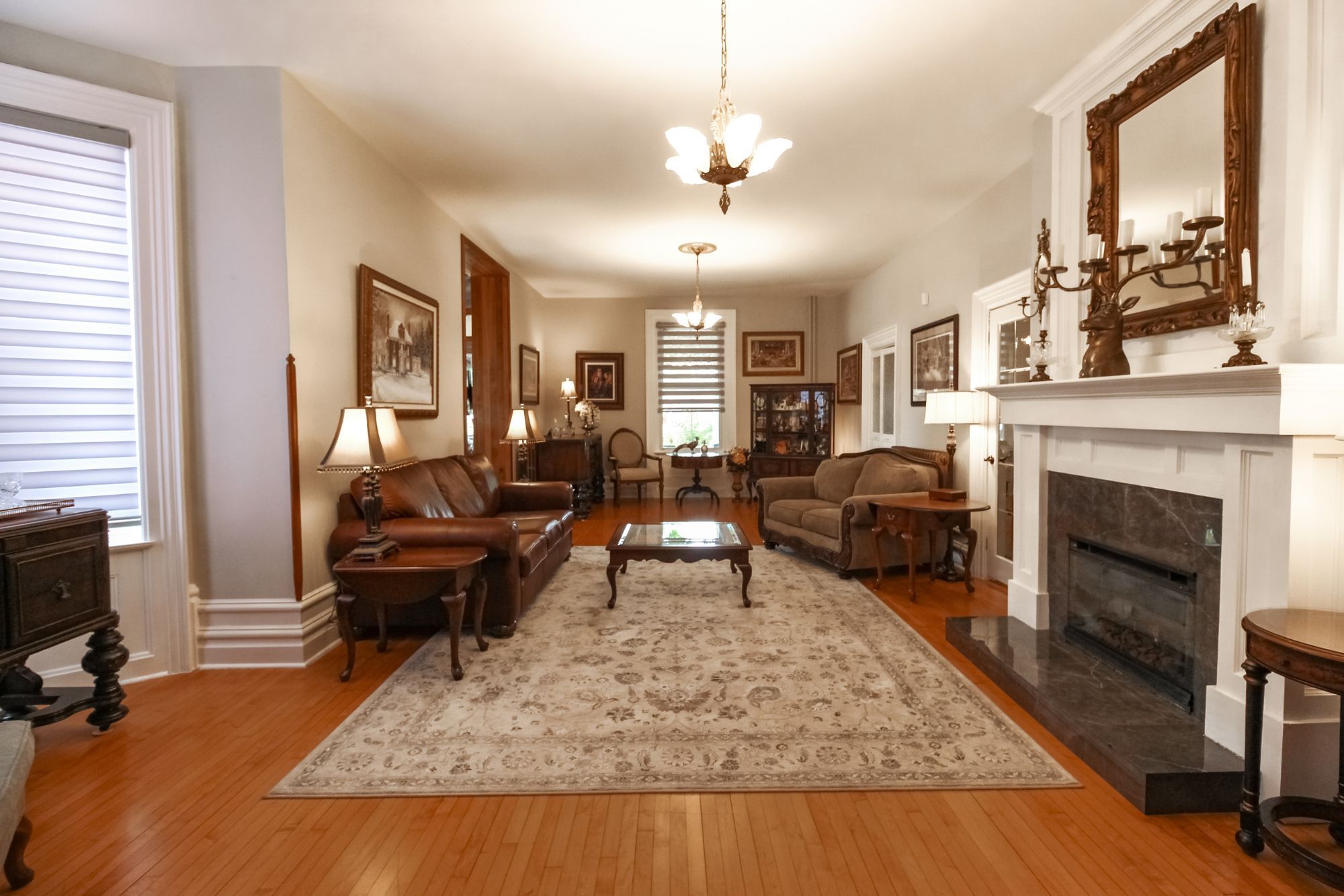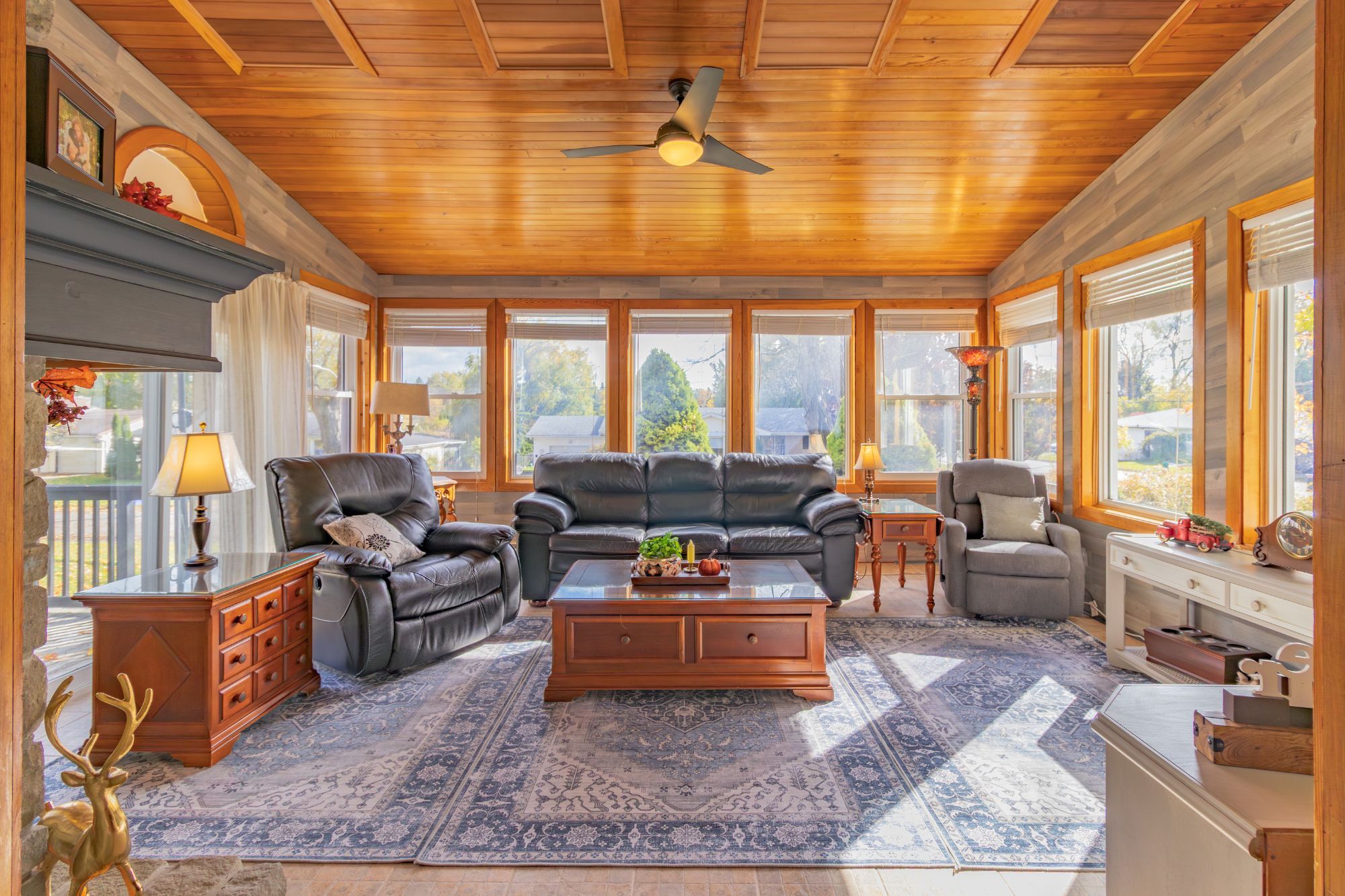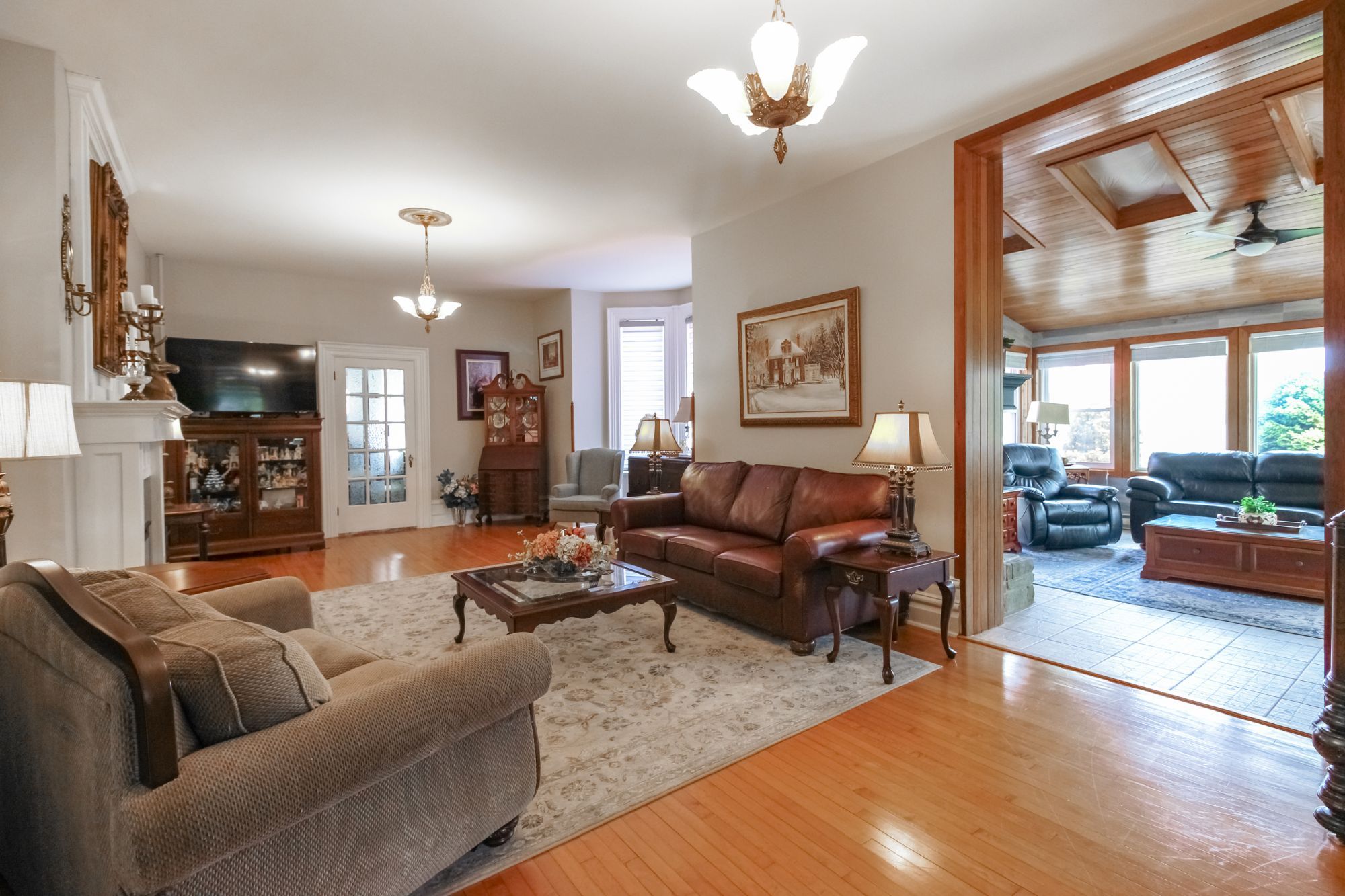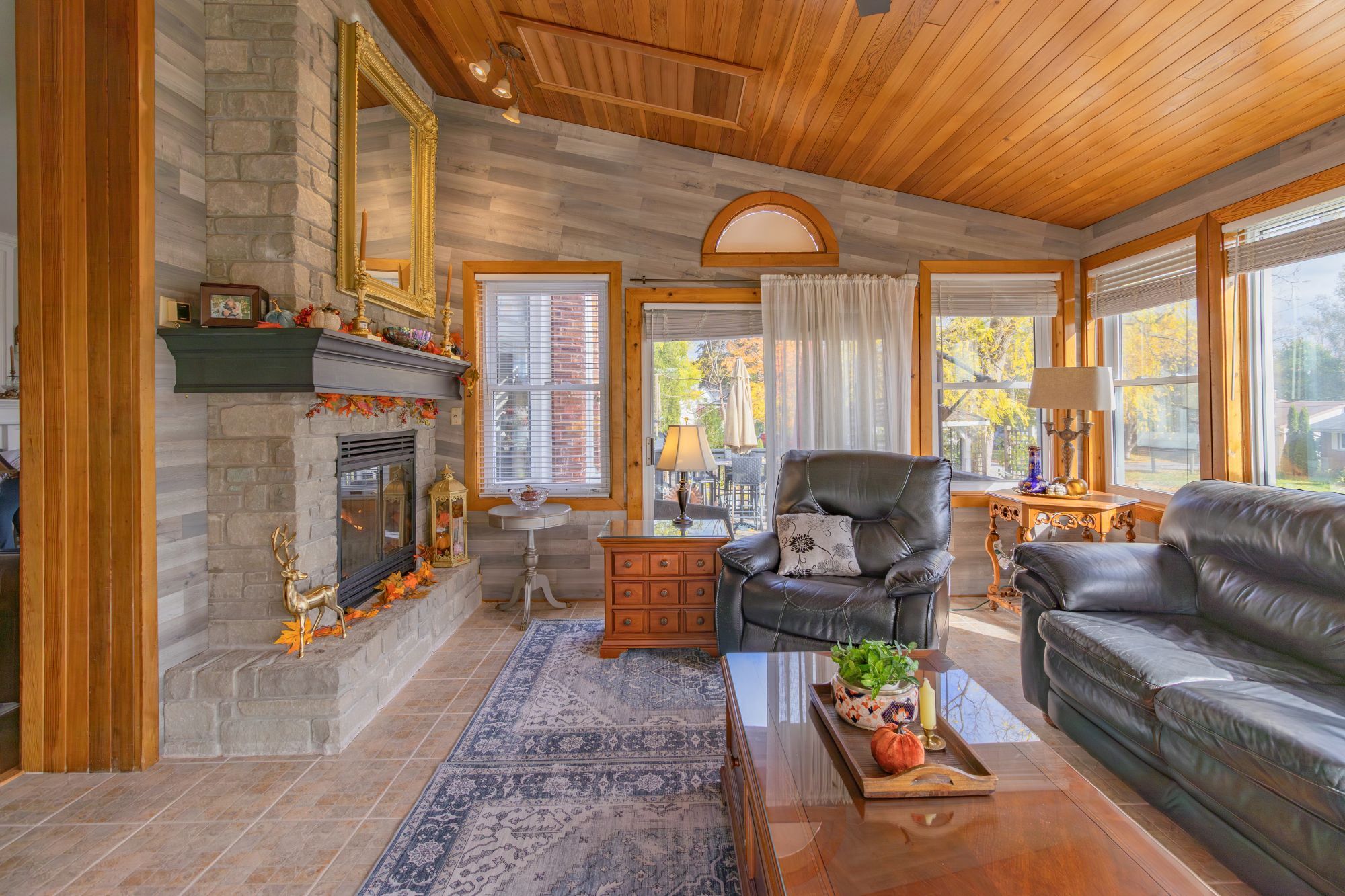 • Multiple fireplaces and a sunroom for relaxing and entertaining.