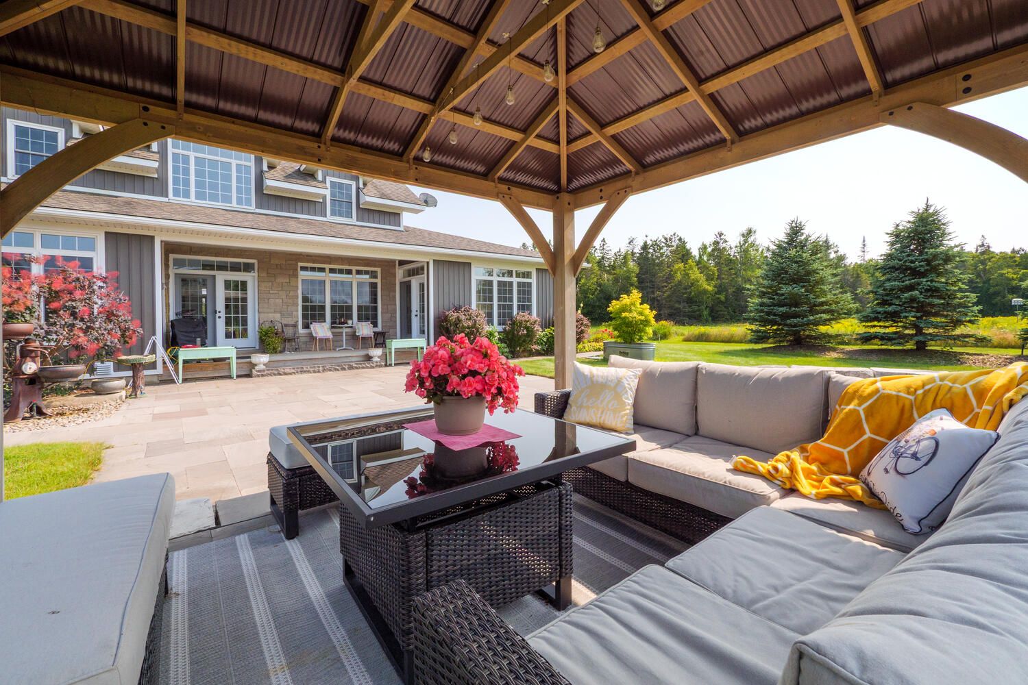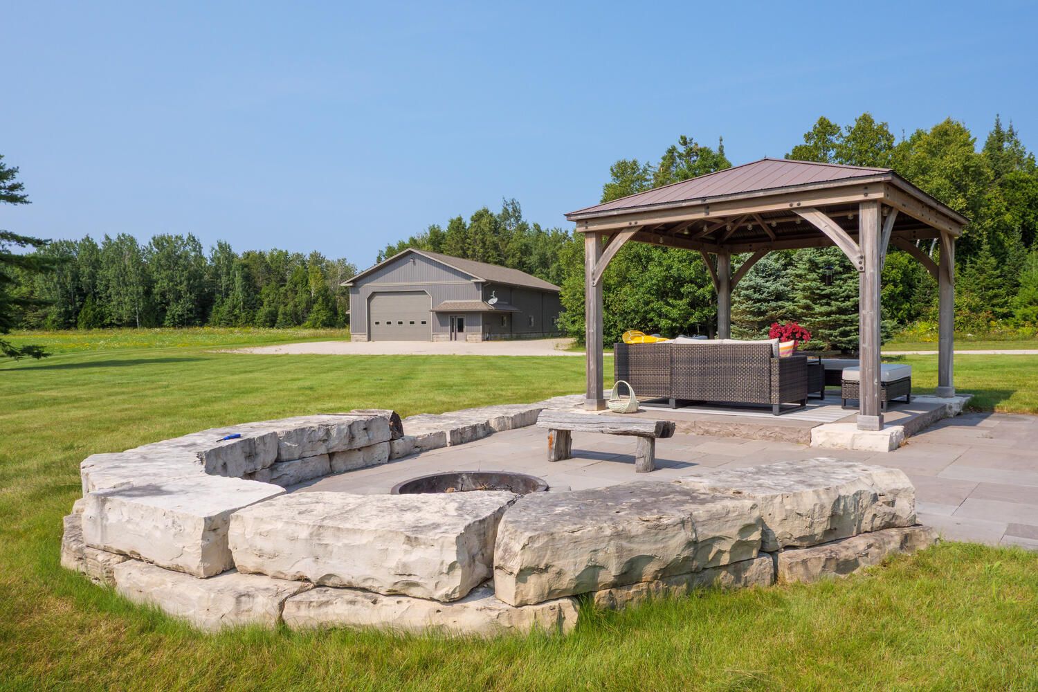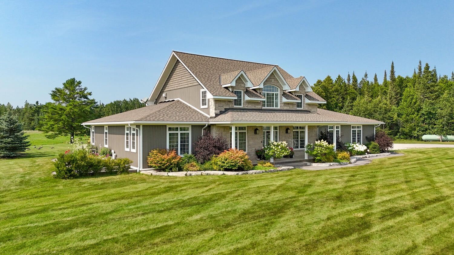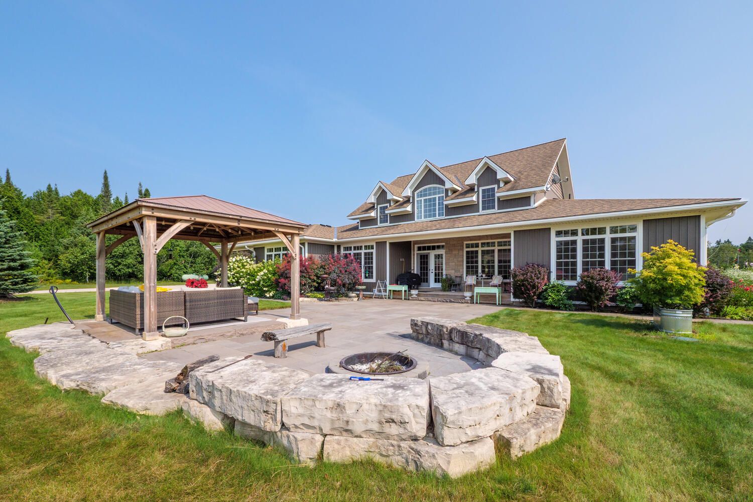 Welcome to this beautifully crafted home, offering comfort, functionality, and elegance. Boasting over 3,100 sq. Ft. Of thoughtfully designed living space, this residence is set on 54 scenic acres featuring forested trails, a sprawling meadow, and plenty of room to explore. Located just minutes from tobermory - a picturesque lakeside town known for its crystal-clear waters, dramatic limestone cliffs, scuba diving, and the bruce peninsula national park. With public beaches, hiking, and snowmobile trails nearby, year-round recreation is right at your doorstep. Enjoy peaceful moments under one of three covered decks, relax beneath the pergola, or gather around the firepit. Inside, the home welcomes you with a warm, spacious ambiance. The main level is ideal for hosting family and friends. The custom kitchen is a dream for any home chef, featuring black granite countertops, under-cabinet lighting, pantry, and breakfast bar, seamlessly flowing into the living area and formal dining room. Retreat to the main-floor primary suite, a private oasis complete with two walk-in closets and a luxurious 5-pc ensuite bath. Upstairs, you'll find three generously sized bedrooms and a 4-pc bathroom - ideal for a growing family, guests, or potential bed & breakfast accommodations. Elegant features throughout: hardwood flooring, 10-ft ceilings, transom windows. Modern conveniences abound with a 2-car attached garage, in-floor heating, central air conditioning, main-floor laundry, irrigation system, underground hydro service and an automatic whole-home generator. A true standout feature is the impressive 40' x 80' workshop - perfect for a home-based business or serious hobbyist - complete with in-floor heating. Located a short distance to public water access at dunks bay, bruce trail access, and the tobermory airport. This exceptional property combines serene natural surroundings with modern luxury - offering a rare opportunity to live, work, and play in one incredible location.