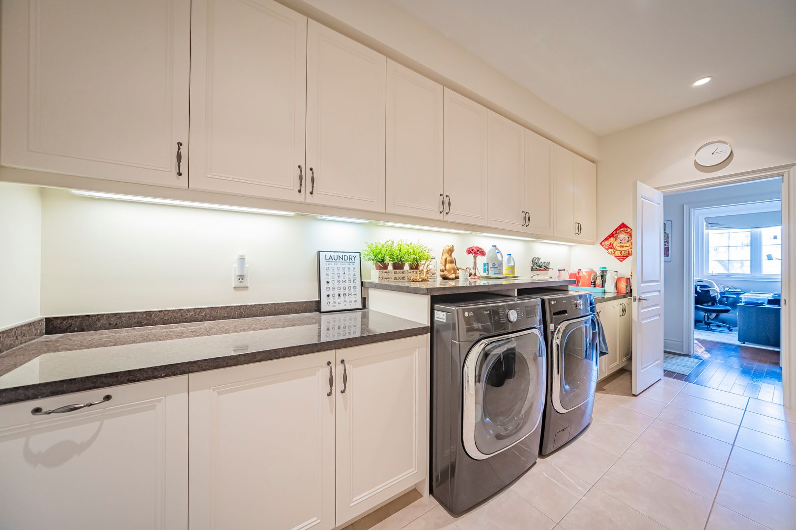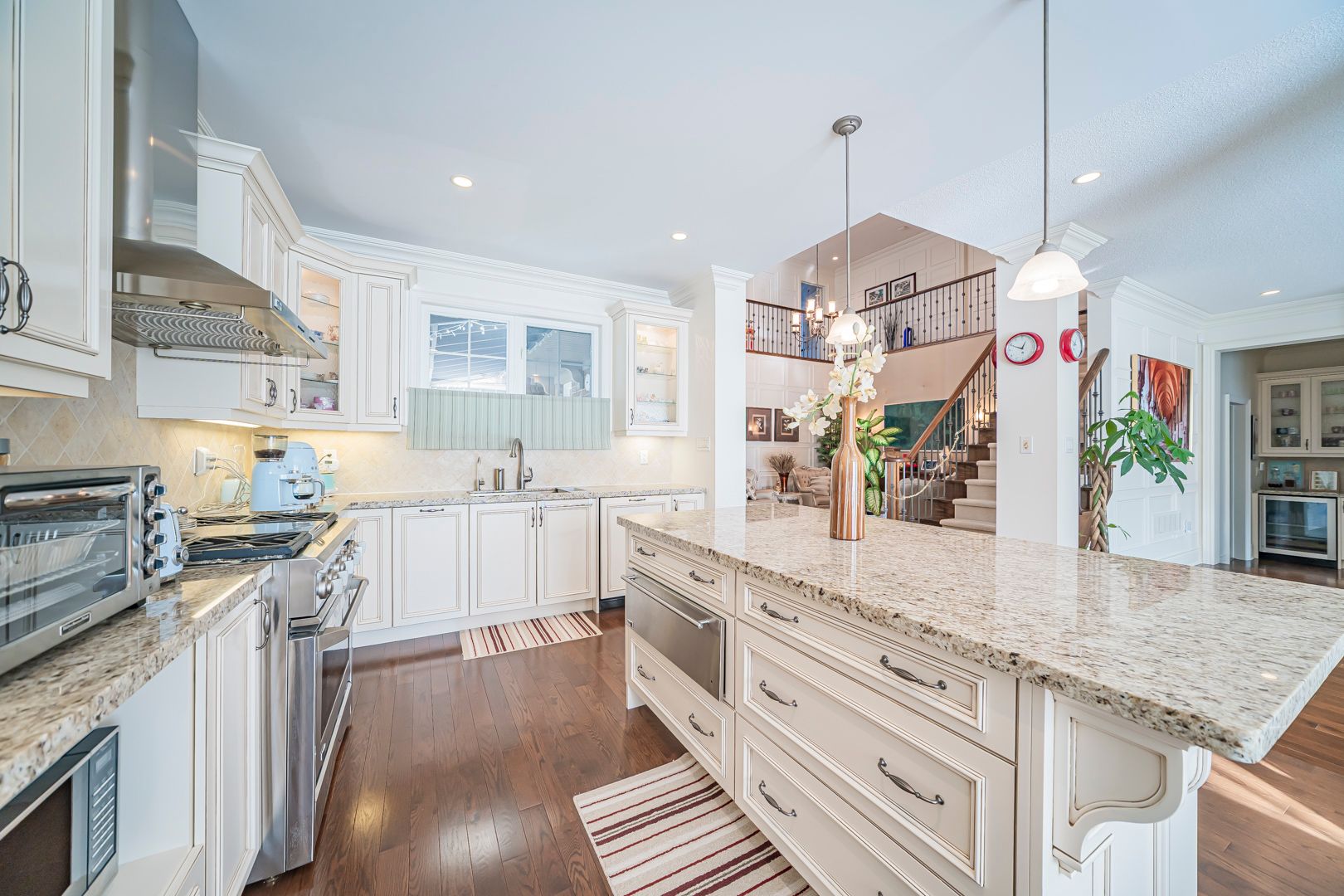 One of a kind luxury residence located in the prestigious victoria square community, offering over 5,000 sqft. Of finished functional living space. This builder's model home, lovingly maintained by the original owner, features numerous upgrades including a whole house water filter and drinkable water system, built-in sound system, smart thermostat, security alarm system, and professional interlocking in both the front and backyard. The main floor boasts hardwood flooring, pot lights, and a 9 ft ceiling, creating a bright and sophisticated atmosphere. A stunning cathedral-ceiling dining room provides a grand setting for entertaining. The gourmet open-concept kitchen showcases custom cabinetry, built-in appliances, a large centre island with granite countertop, and a spacious breakfast area with a walk-out to the rear deck, offering seamless indoor-outdoor living. The second floor features four generously sized bedrooms and three full bathrooms, providing comfort, functionality, and flexibility for family needs. The primary suite offers a spacious layout with large windows and a luxurious ensuite bath, creating a peaceful retreat. The fully finished basement adds exceptional value, designed for multi-generational living with a large recreation room, modern kitchen with eat-in area, wet bar, gym area, library, sitting area, and a 3-piece bathroom. Perfect for extended family, guests, or personalized use. Ideally situated in a highly sought-after neighborhood, this home is steps away from top-ranking schools including sir wilfrid laurier ps, pierre elliott trudeau hs (fi), and richmond green hs. Enjoy close proximity to parks, community centre, costco, home depot, supermarkets, and major shopping. Convenient access to highway 404 and go transit makes commuting easy and efficient. A rare offering that combines luxury, space, and prime location-this home delivers exceptional quality and a truly elevated living experience.
