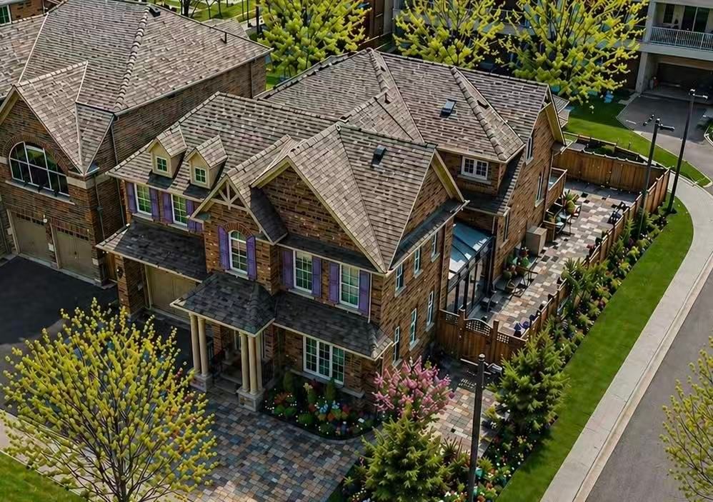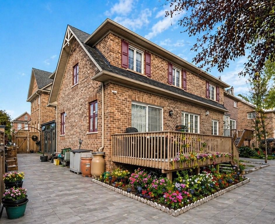 Eyes locked on this luxury residence located in the prestigious victoria square community, offering over 5,000 sqft. Of finished functional living space. This builder's model home, lovingly maintained by the original owner, features numerous upgrades including a whole house water filter and drinkable water system, built-in sound system, smart thermostat, security alarm system, ev charger, and professional interlocking in both the front and backyard. The main floor boasts hardwood flooring, pot lights, and a 9 ft ceiling, creating a bright and sophisticated atmosphere. A stunning cathedral-ceiling dining room provides a grand setting for entertaining. The gourmet open-concept kitchen showcases custom cabinetry, built-in appliances, a large centre island with granite countertop, and a spacious breakfast area with a walk-out to the rear deck, offering seamless indoor-outdoor living. The second floor features four generously sized bedrooms and three full bathrooms, providing comfort, functionality, and flexibility for family needs. The primary suite offers a spacious layout with large windows and a luxurious ensuite bath, creating a peaceful retreat. The fully finished basement adds exceptional value, designed for multi-generational living with a large recreation room, modern kitchen with eat-in area, wet bar, gym area, library, sitting area, and a 3-piece bathroom. Perfect for extended family, guests, or personalized use. Ideally situated in a highly sought-after neighborhood, this home is steps away from top-ranking schools including sir wilfrid laurier ps, pierre elliott trudeau hs (fi), and richmond green hs. Enjoy close proximity to parks, community centre, costco, home depot, supermarkets, and major shopping. Convenient access to highway 404 and go transit makes commuting easy and efficient. A rare offering that combines luxury, space, and prime location-this home delivers exceptional quality and a truly elevated living experience.