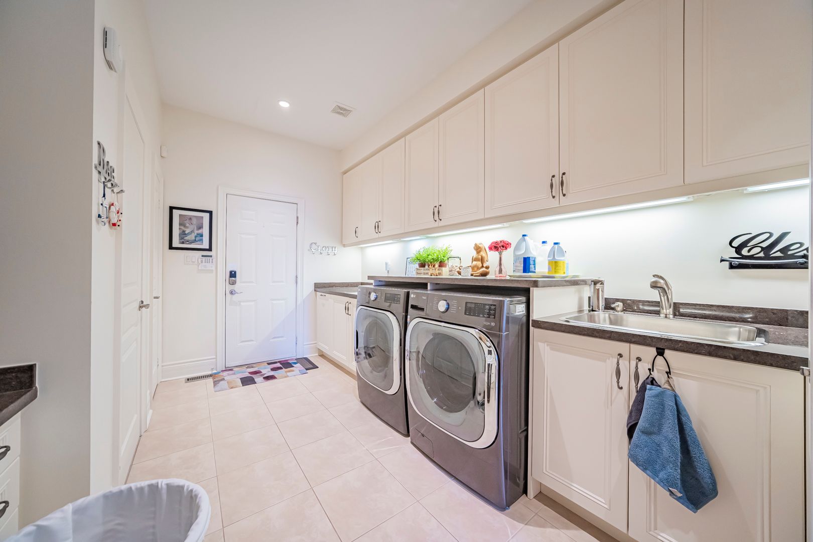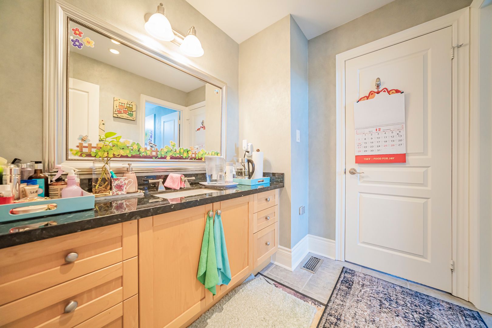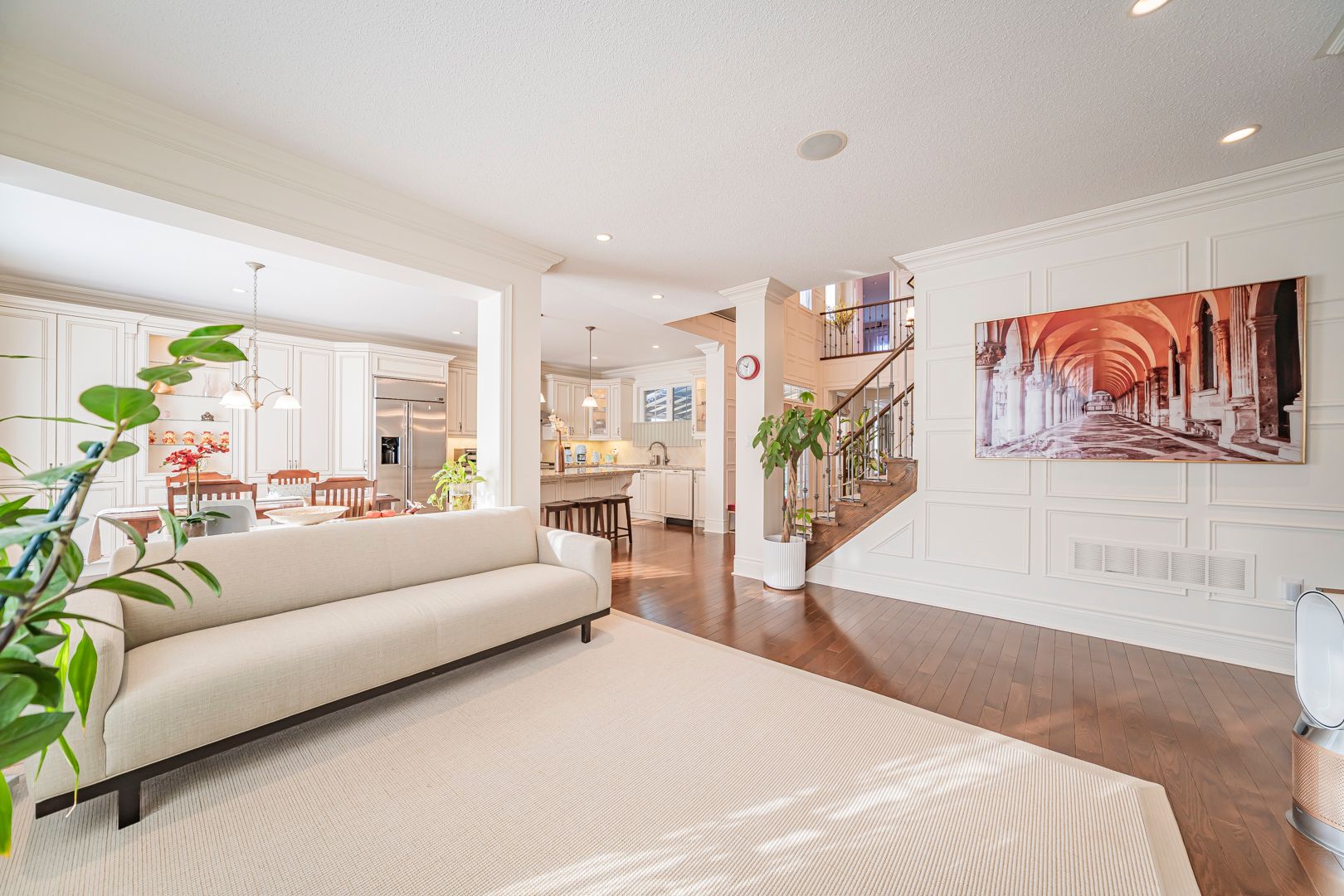 • Gourmet kitchen with custom cabinetry and large centre island for cooking enthusiasts.