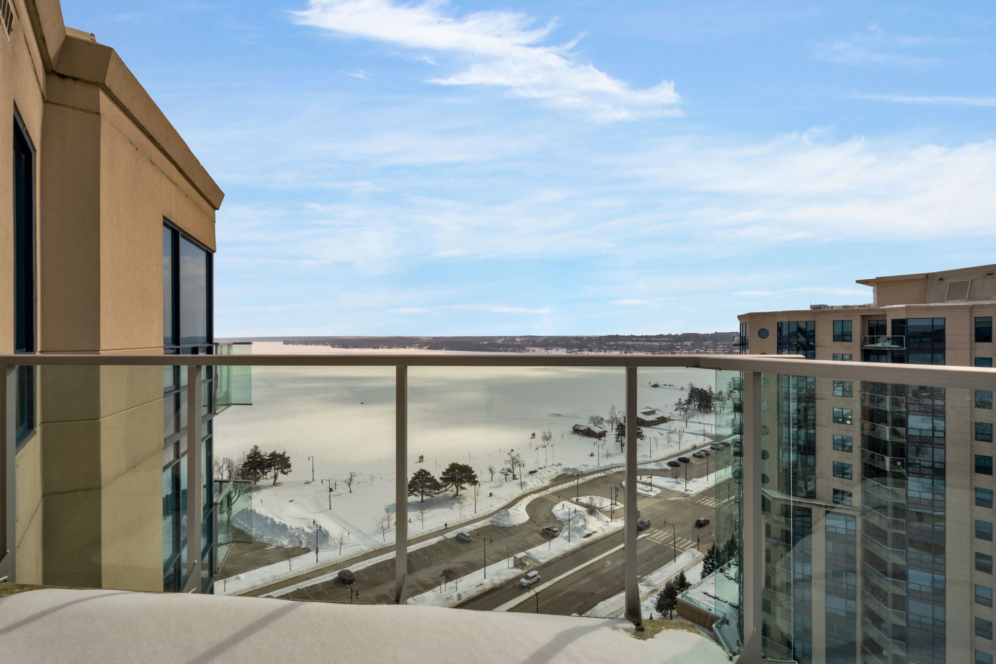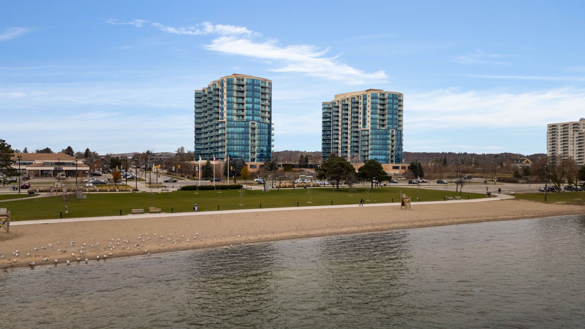 Presenting 33 ellen street - penthouse eight at nautica condominiums. This condo suite is a must see - not your average condo layout, and never before offered for sale! Welcome to one of the most highly sought-after condo floor plans in barrie - 1,381 sq. Ft. Of functional living space offering 10' ceilings - two bedrooms + den, two baths, ensuite laundry - stunning views from large floor to ceiling windows! Downsizing from a home to a condo? This bermuda model offers you the space you need, without the extra maintenance and chores of a larger home. This hotel-inspired condo community comprised of 33 ellen street and 37 ellen street is situated on the shore of lake simcoe's kempenfelt bay, with this penthouse unit facing south-east - enjoy your morning coffee and daily sunrises on your private open balcony. The nautica condo community is an established site with many exceptional amenities. You will find timeless architectural details, and tasteful neutral decor throughout the phenomenal common areas at nautica, as well as well-equipped spaces to enjoy like the stunning party room, well-appointed gym/exercise room, indoor pool with hot tub, sauna and change rooms, a shared library / resource centre, games room and outdoor meeting spaces for gathering al fresco with friends and family. Convenience of two guest suites and visitor parking. Step outdoors to the boardwalk at centennial beach, and the simcoe country trails for hiking, biking, walking. A few steps more takes you to barrie's vibrant downtown sector with many casual and fine dining options, entertainment, local shops and services. Barrie has all that and more - libraries, rec centres, rvh healthcare centre, and an abundance of municipal services. Easy access to key commuter routes - public transit, go train/bus service, highways north to cottage country or south to the gta and beyond. One parking space is included with this condo unit. Second parking space is available for purchase.