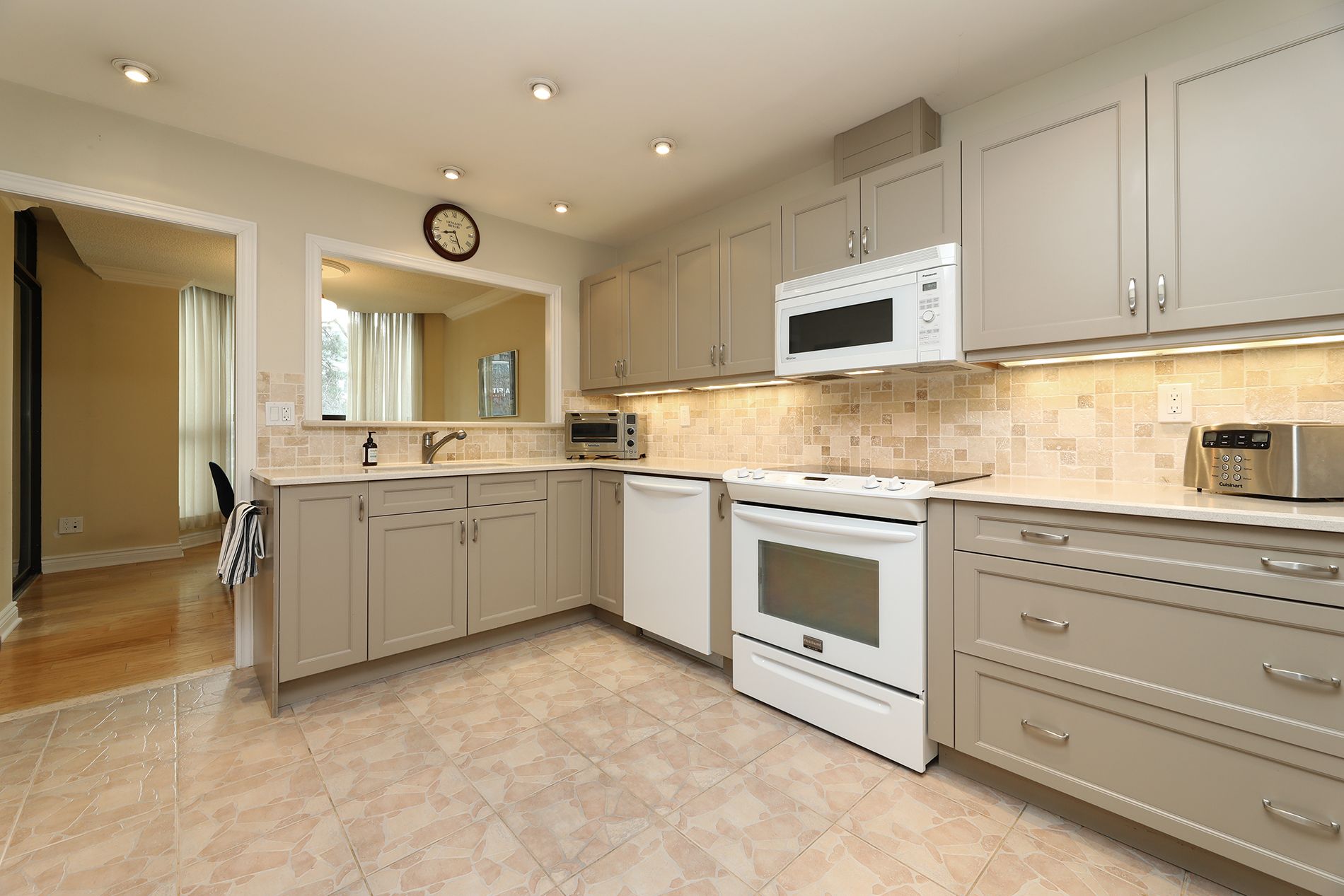 • Recently renovated eat-in kitchen with quality finishes and built-in pantry.