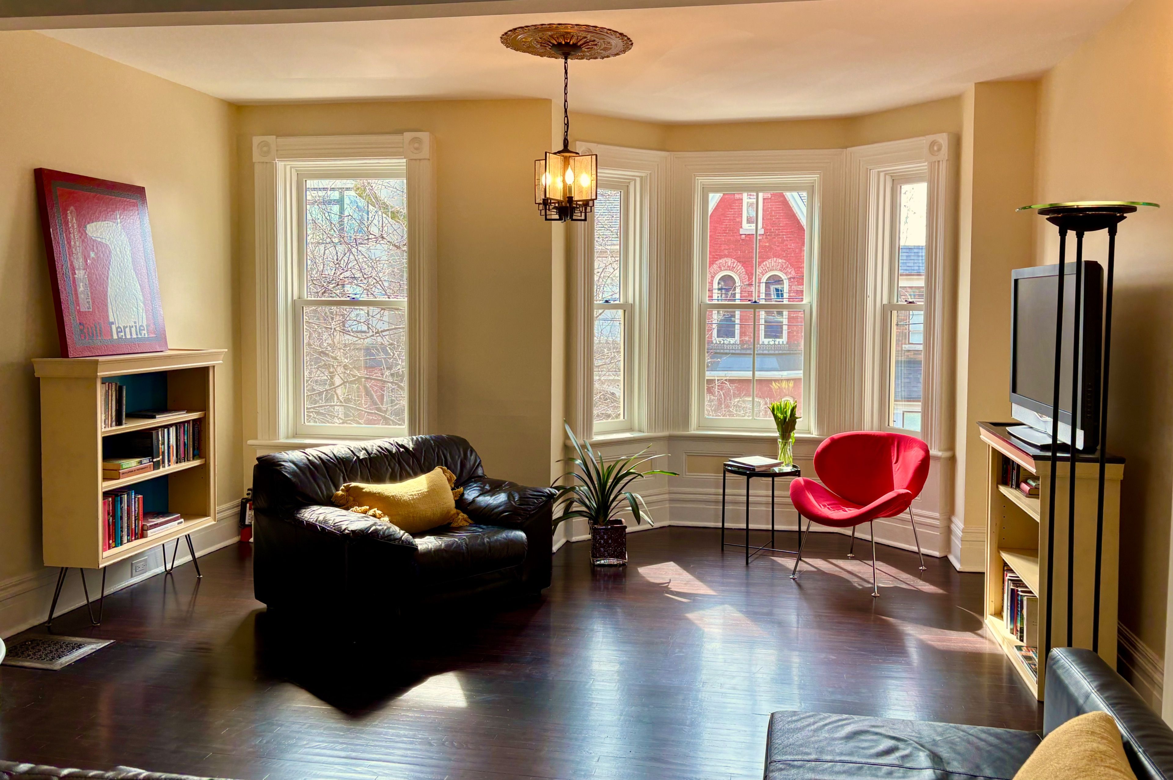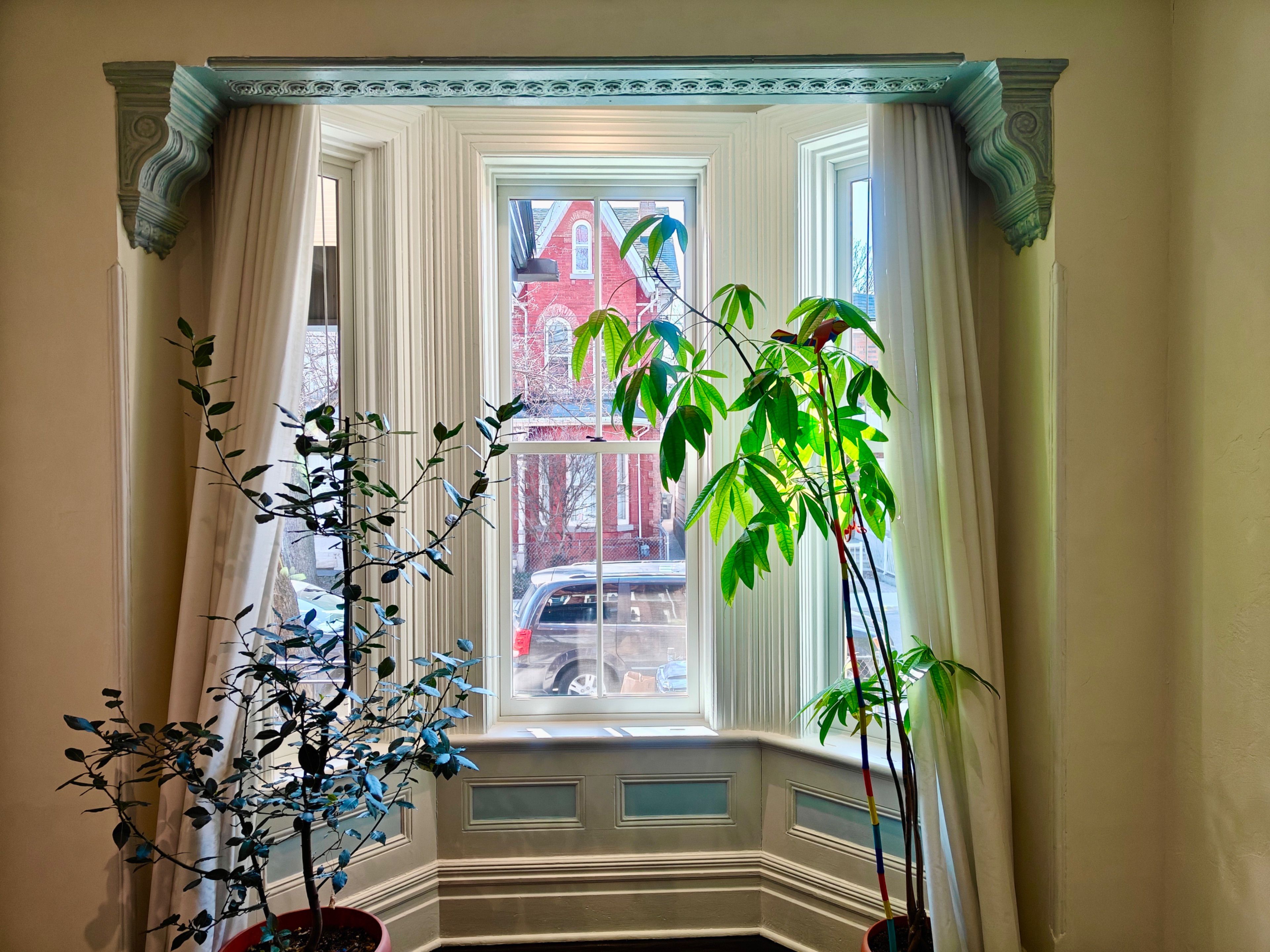 • Bright main floor boasts a double-sized living room and bay window.