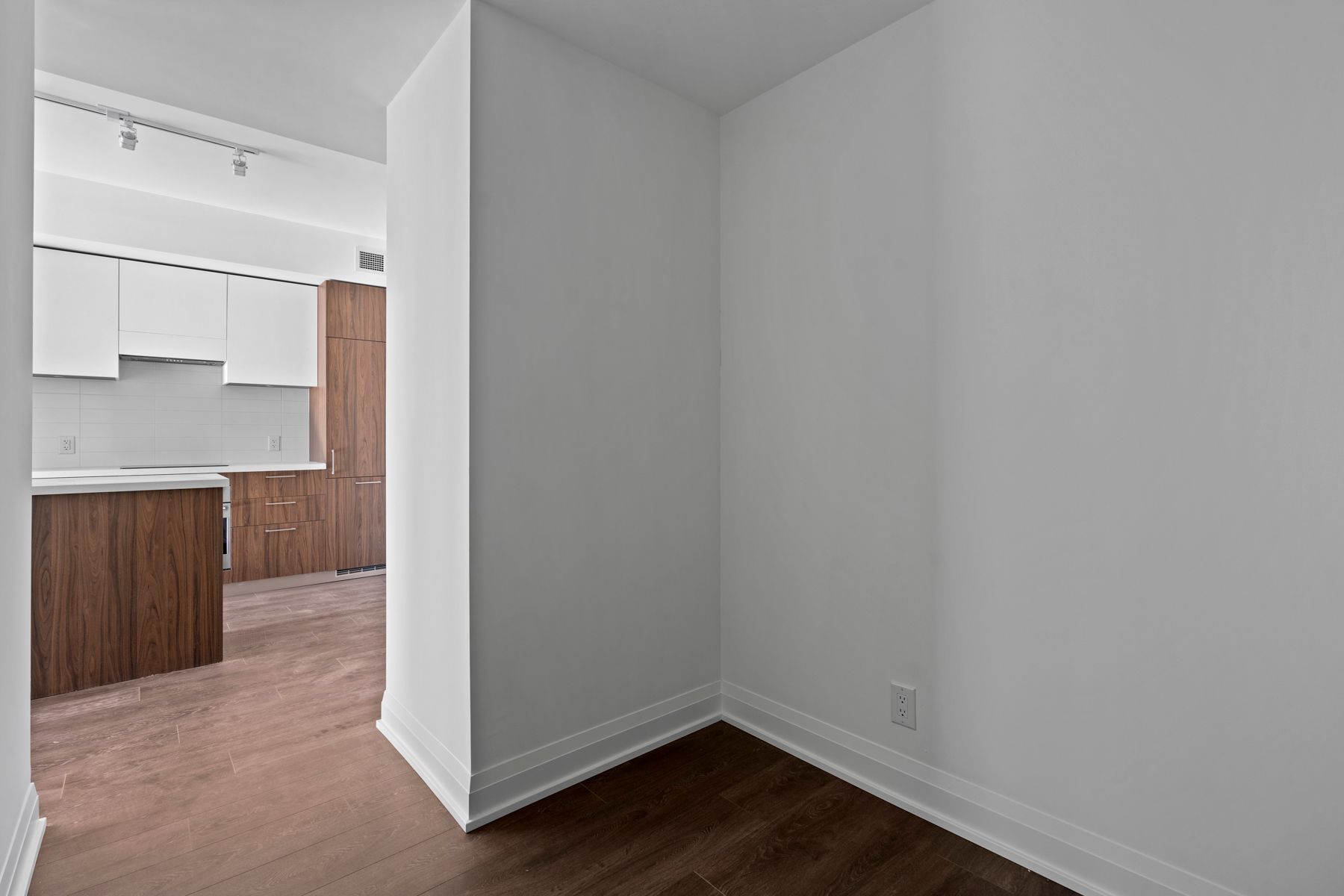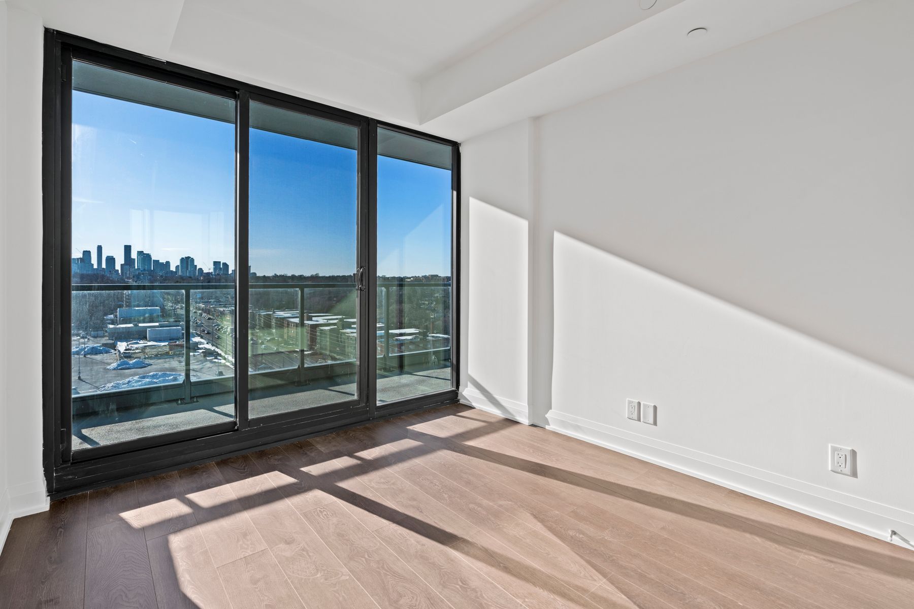 Welcome to the upper east village, leaside's luxury condominium! This suite is a beautiful 1 bed & den with w/o to balcony from living/dining and bedroom! Clear west-facing views of midtown and downtown toronto. Custom kitchen island, integrated kitchen appliances, sleek modern finishes, ensuite laundry and hi-speed internet (included). Parking and locker included. Steps to lrt laird station, transit, sunnybrook park, top-rated schools, numerous restaurants, homesense, canadian tire, marshalls & more! Enjoy amazing amenities: 24 hr concierge, indoor pool, cardio/weight room, outdoor lounge with fire pit & bbq and private dining. Close to dvp, sunnybrook hospital, aga khan museum & edwards gardens.