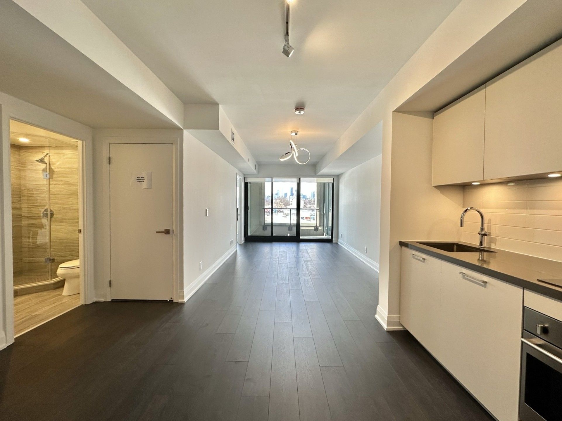 Welcome to the residences of upper village, set in the heart of one of toronto's most sought-after neighbourhoods. This newer, design-forward building offers a smart, stylish floorplan in a spacious 1-bedroom + den, 2 full bath suite. Flooded with natural light, the suite features a sunny west exposure and unobstructed skyline views through expansive windows. The layout is both functional and flexible, with generous living space and room for a breakfast bar or full dining setup. The primary bedroom is a standout, featuring extra-large windows on two sides and a sleek ensuite. Step out onto the large private balcony, perfect for al fresco dining or unwinding as the city moves below. Residents enjoy resort-style amenities including an indoor pool, steam room, private gym, games and party rooms, boardroom, dining space, outdoor entertainment areas with bbqs and fire pits, and 24-hour concierge service. Conveniently located just steps from shops, cafés, and restaurants-truly walk to everything. Set within a new master-planned community nestled in a lush enclave at brentcliffe rd & eglinton ave, this location offers exceptional value in one of the city's most desirable and well-connected pockets. Enjoy a walk score of 88, an upcoming lrt at your doorstep, and seamless access to the dvp, downtown, and uptown.