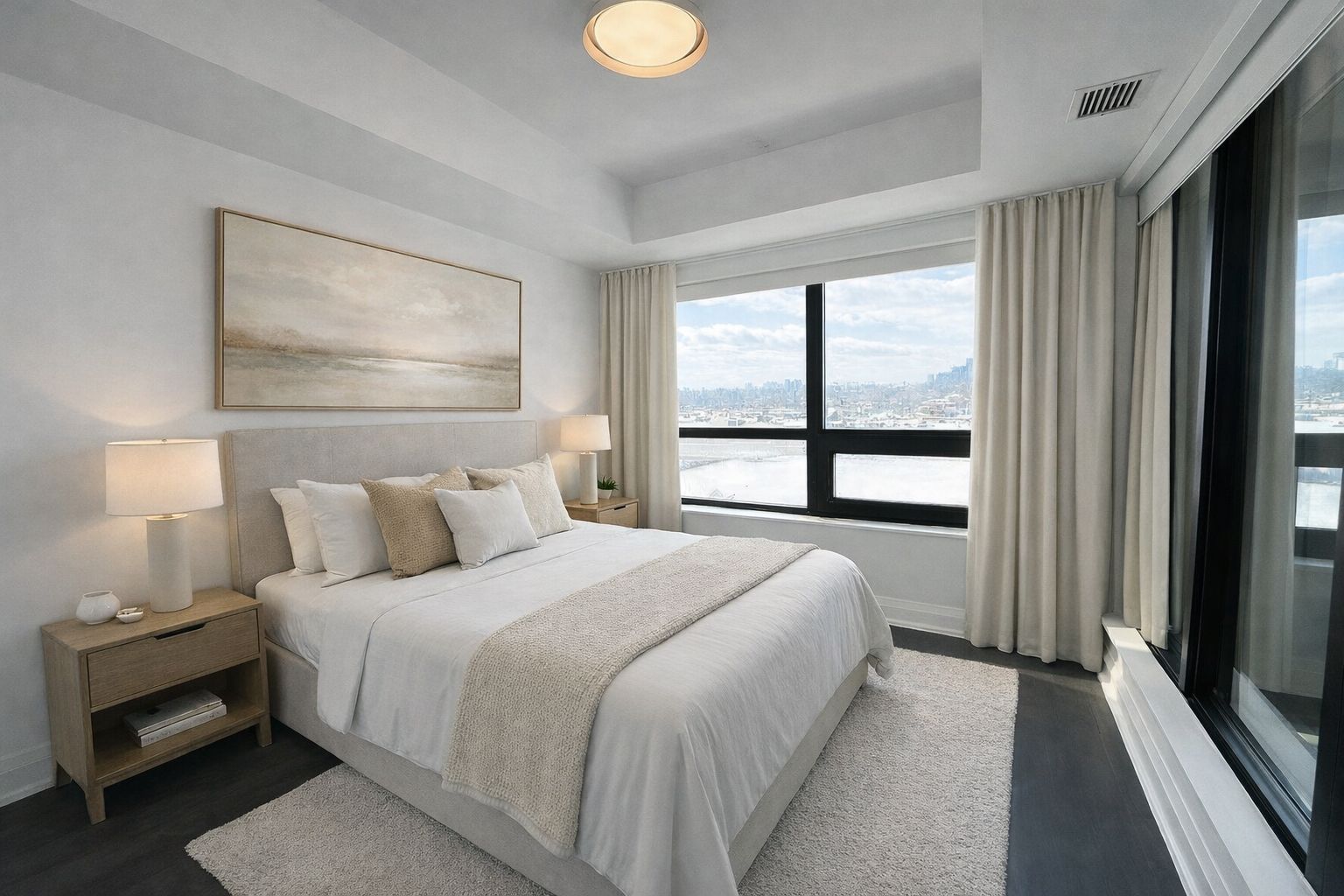 • Bright west-facing windows provide stunning skyline views and natural light.