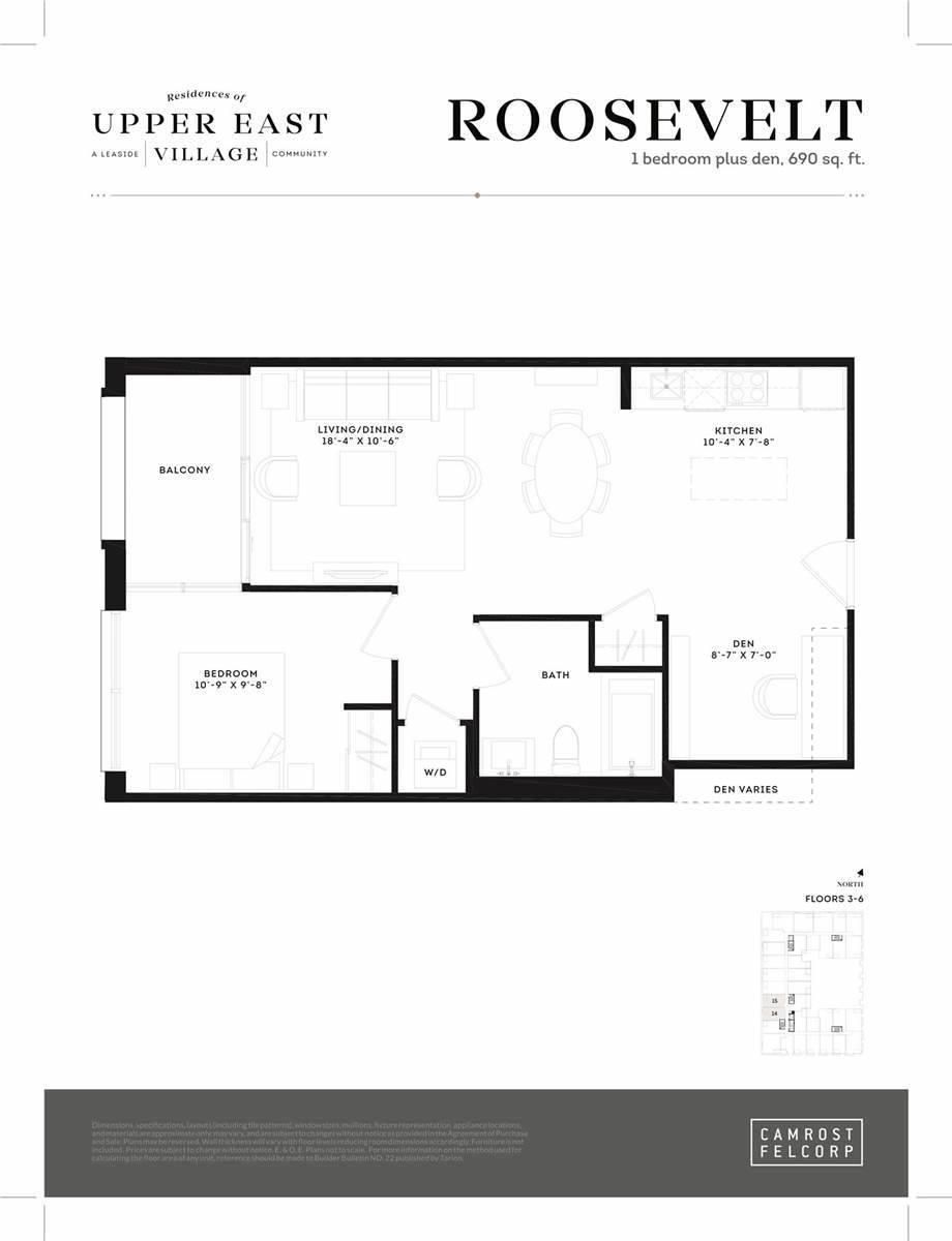 • Bright and spacious 1 bed plus den suite with a balcony.