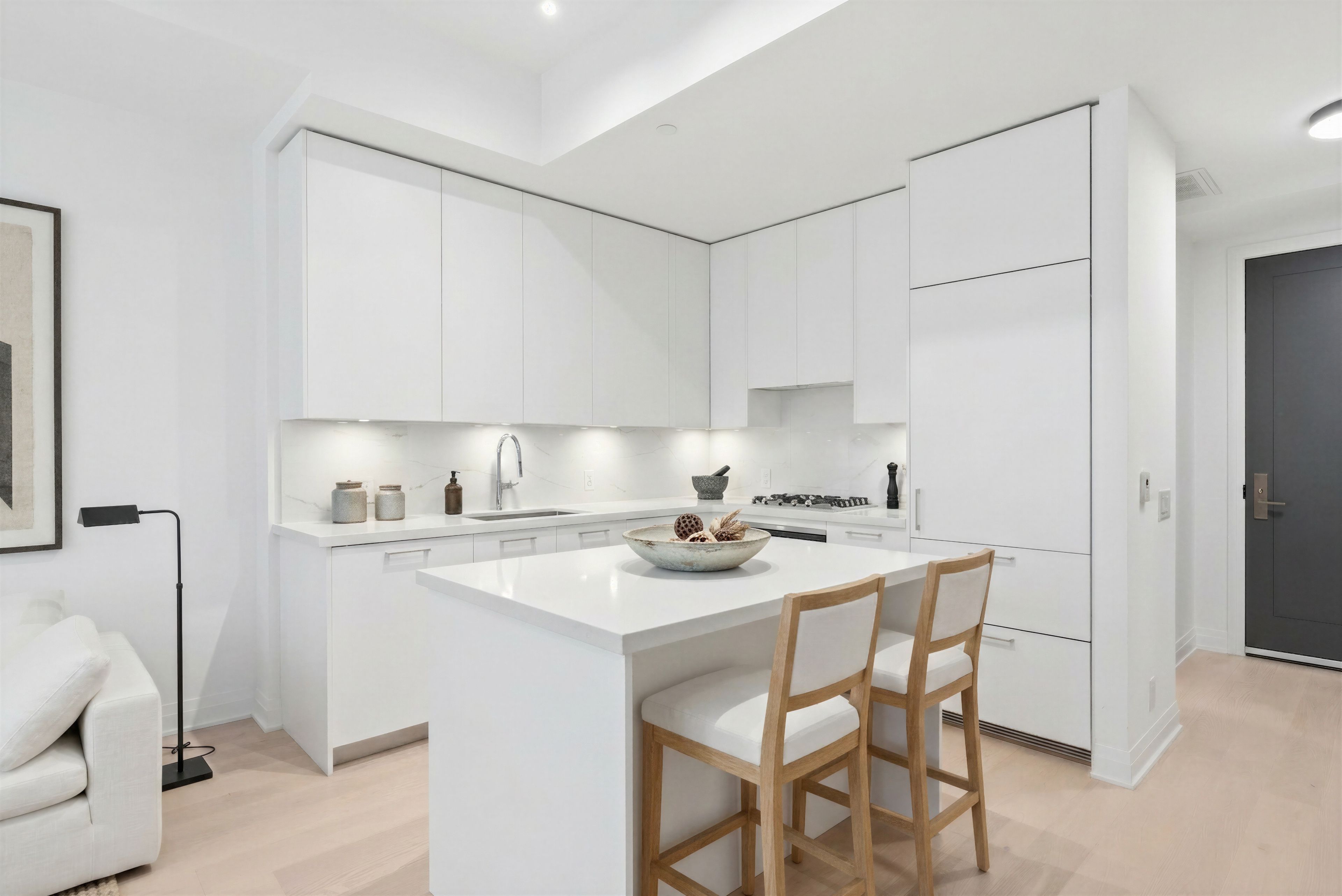 • Chef-inspired kitchen with high-end Miele appliances and large island.
