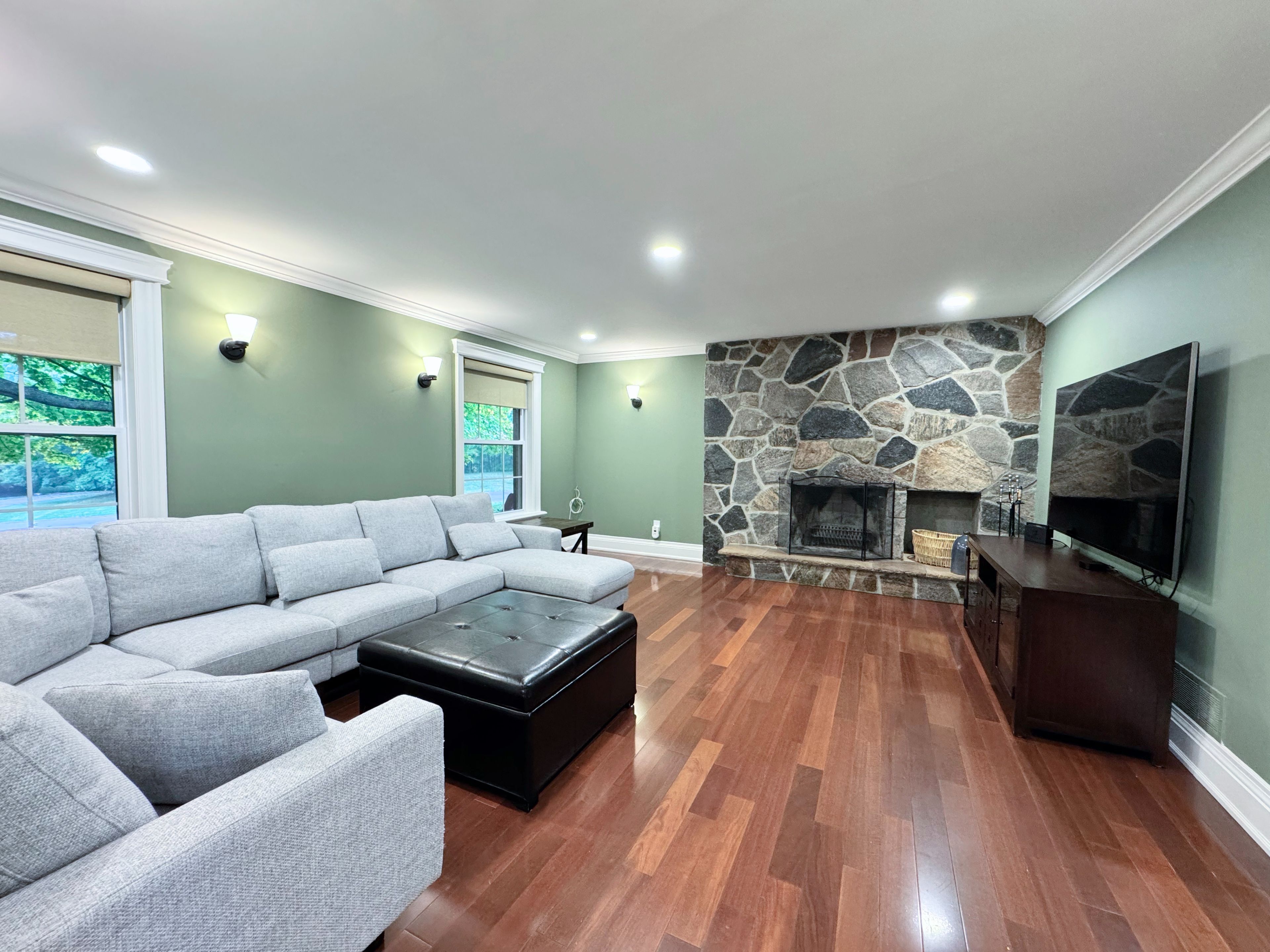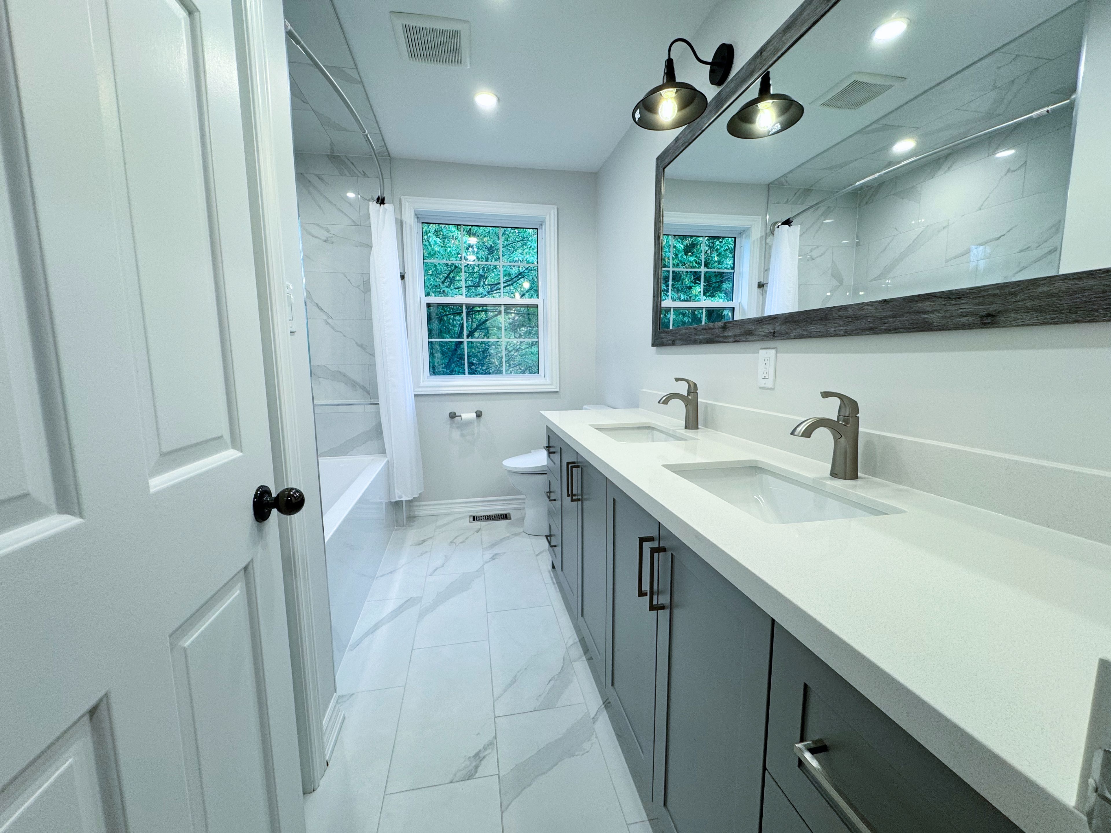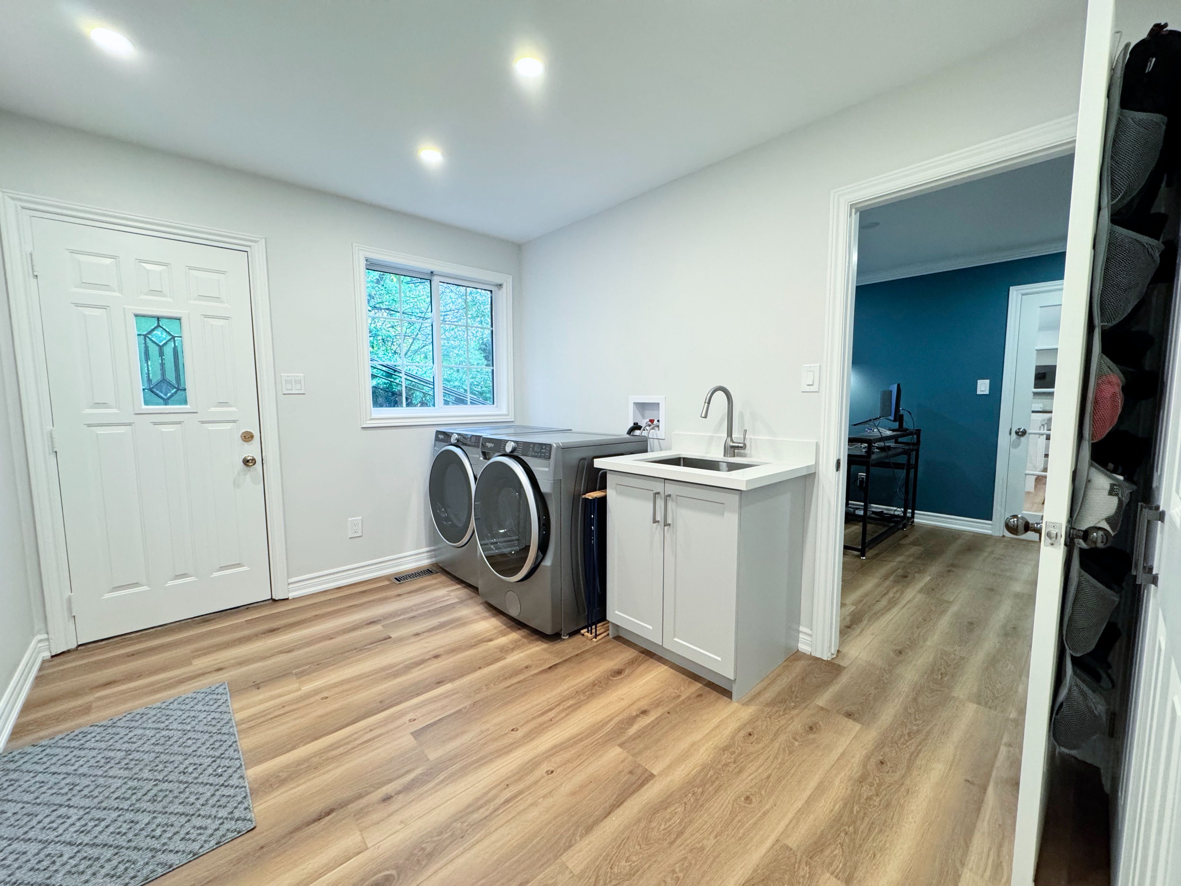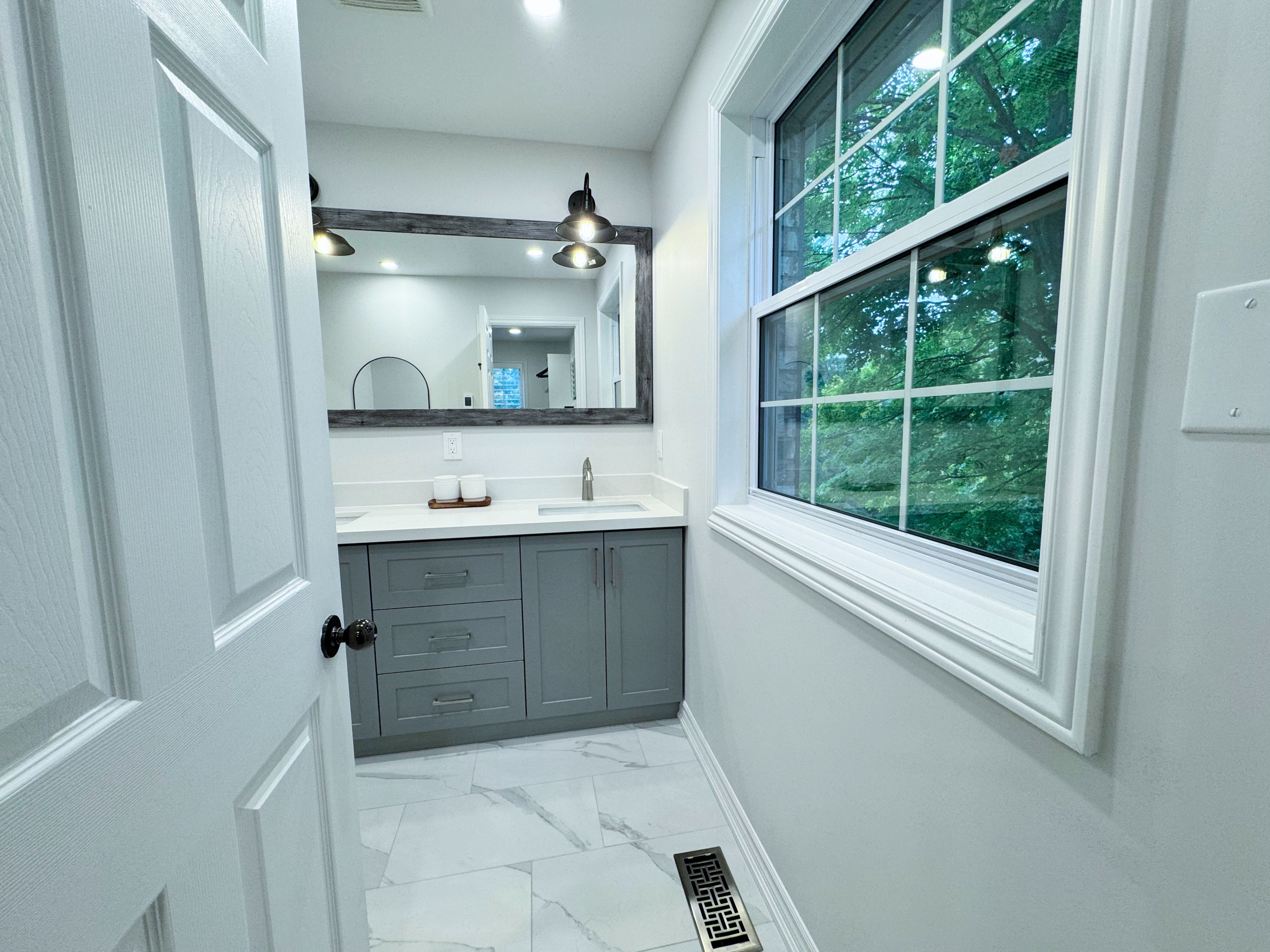 • Newly renovated custom kitchen with quartz countertops and modern appliances.