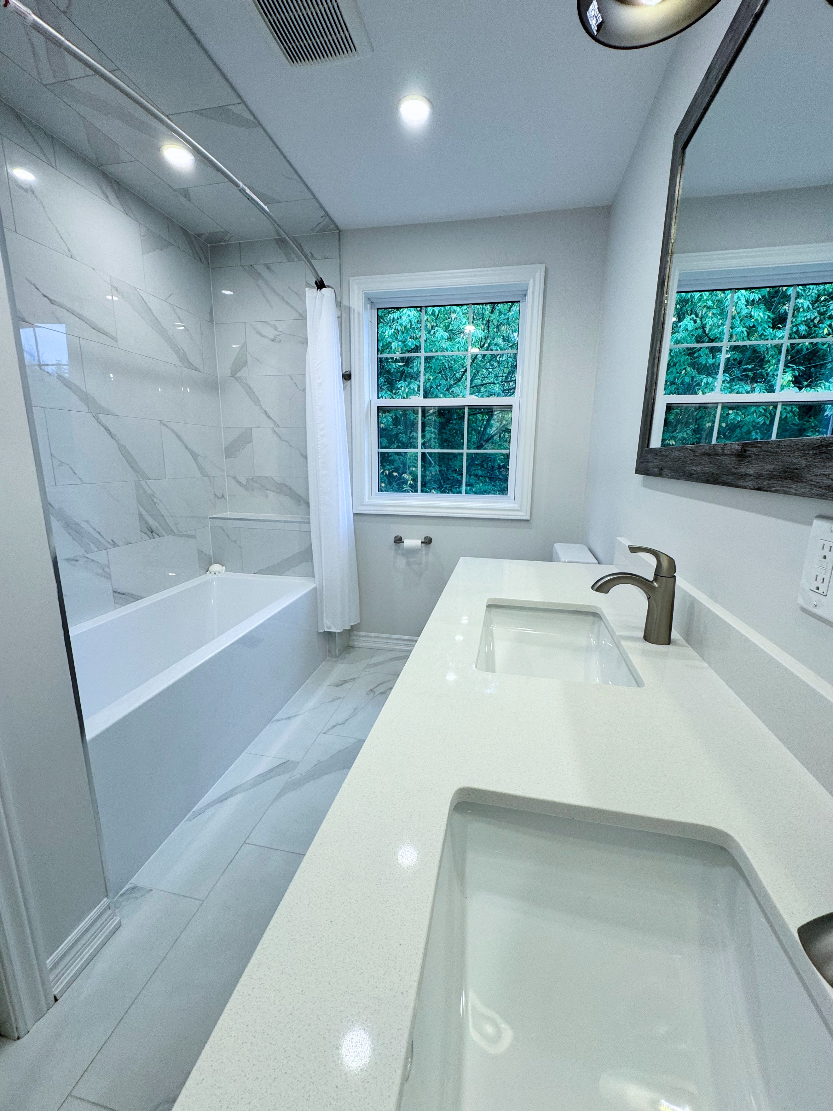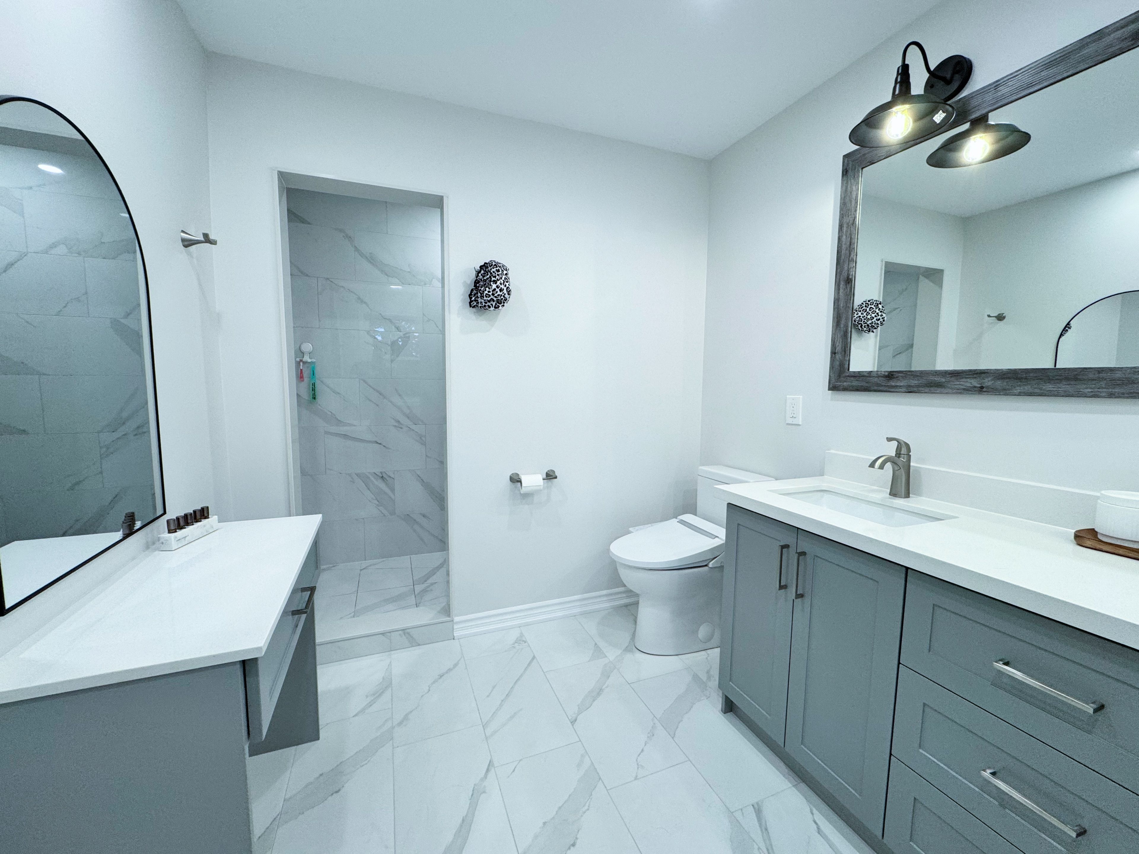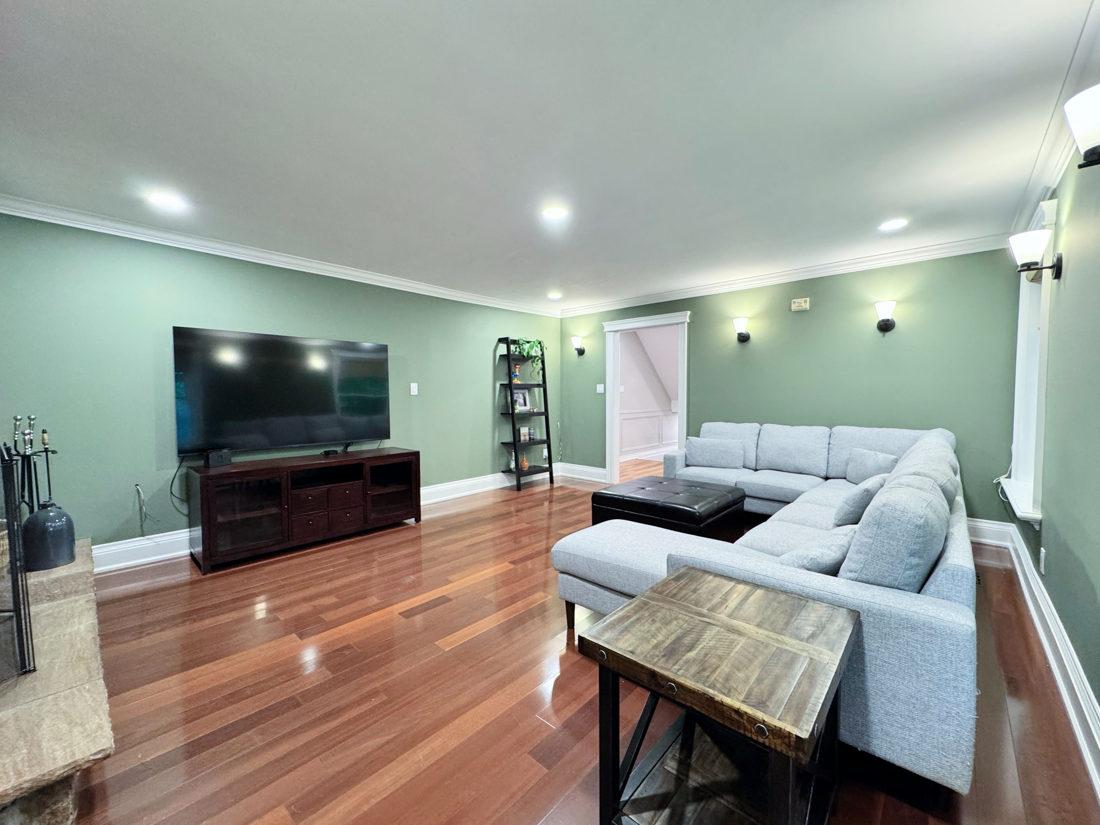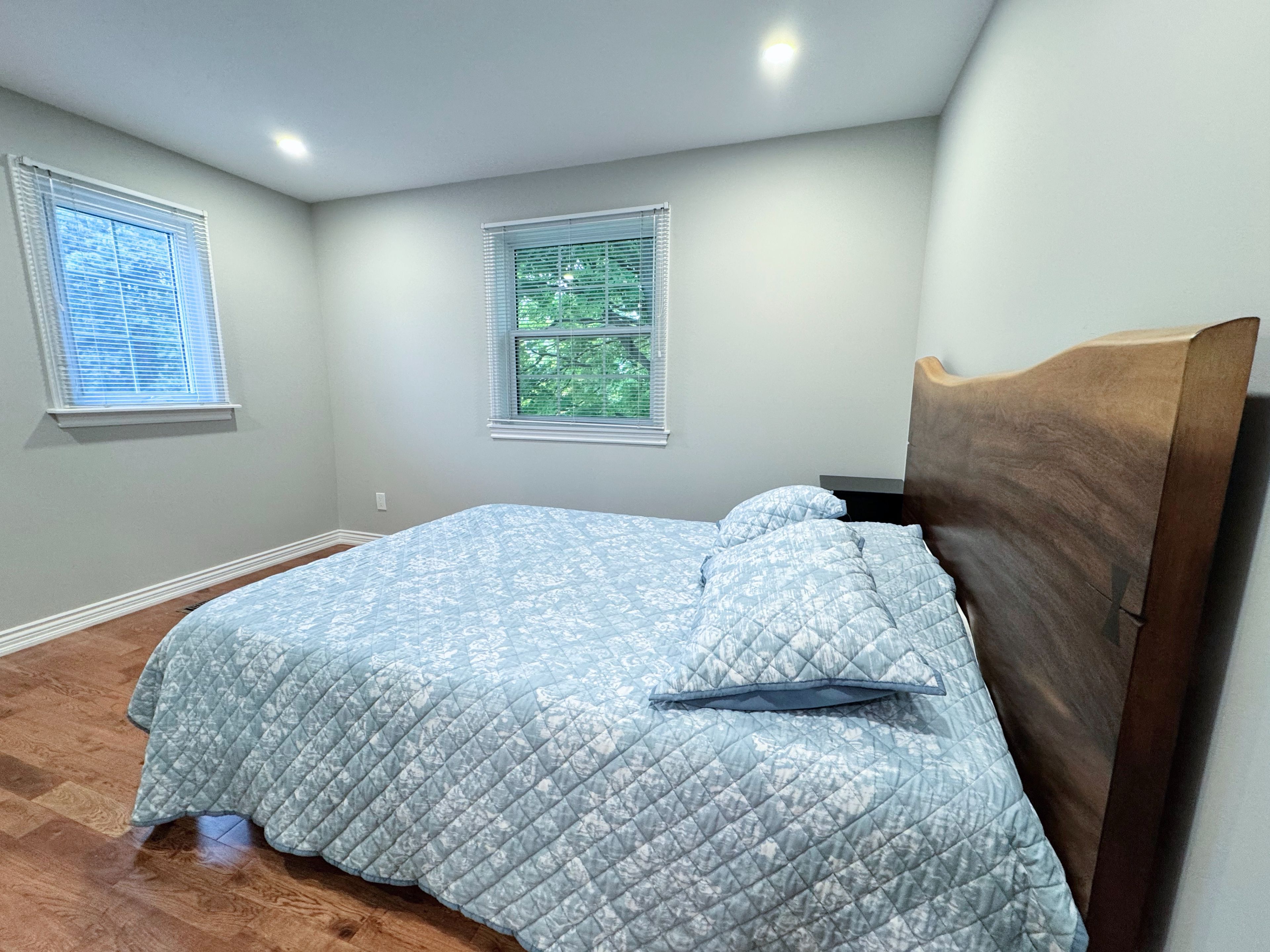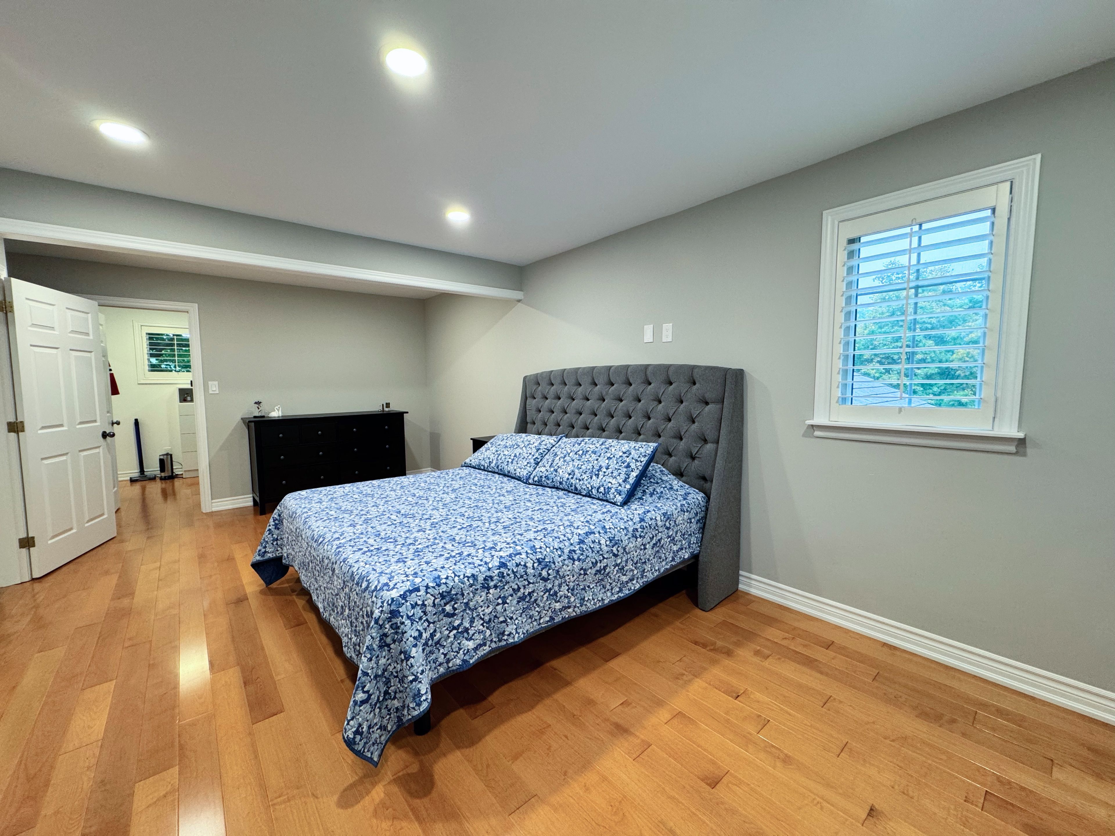 • Newly renovated custom kitchen with quartz countertops and modern appliances.