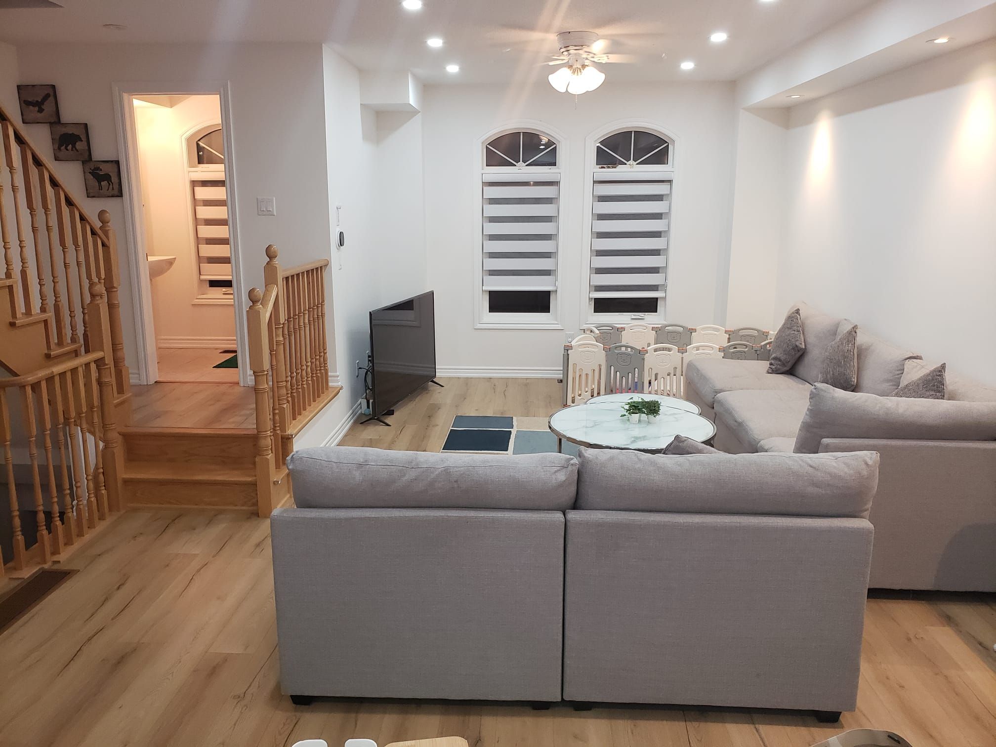 This gorgeous 3-bedroom plus den, 4-bathroom townhouse offers the perfect mix of comfort, style, and convenience. With 4 parking spots, 10 ft ceilings, and a bright open-concept layout, its designed for both everyday living and entertaining. The private second-floor balcony is ideal for relaxing, while two separate entrances from the front and back add flexibility. Families will love having a school right across the street, with a bus stop just 100 metres away. Commuters will appreciate the easy access to major highways and mount pleasant go station just minutes away. Surrounded by parks, shopping, and all essential amenities, this home delivers the lifestyle you've been looking for.