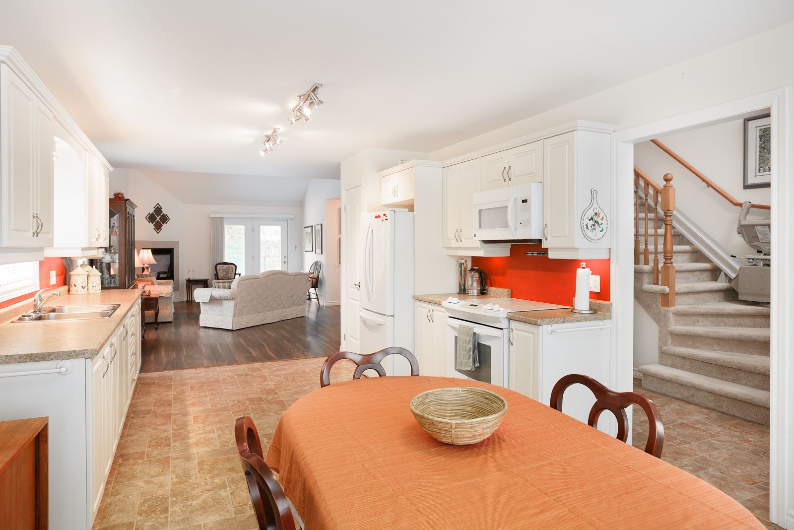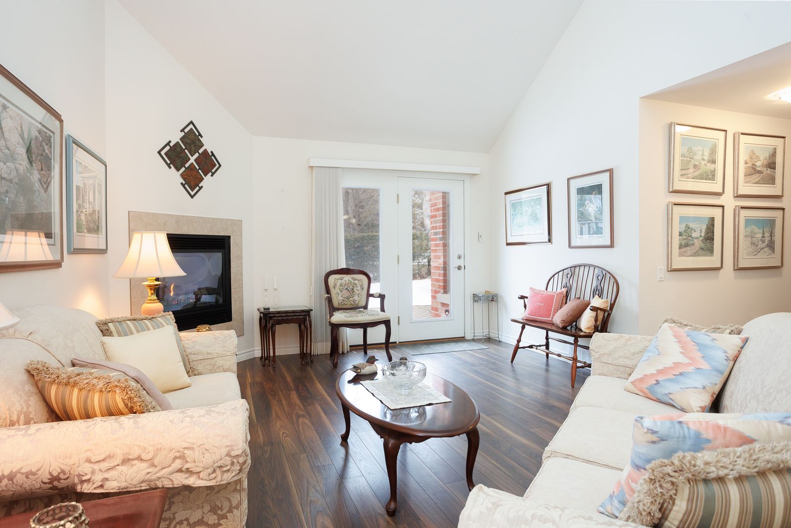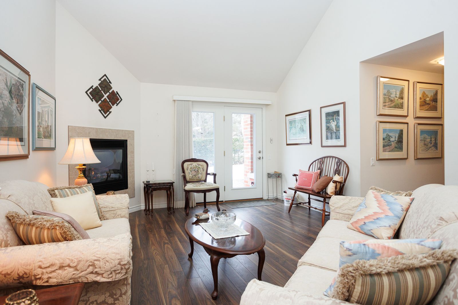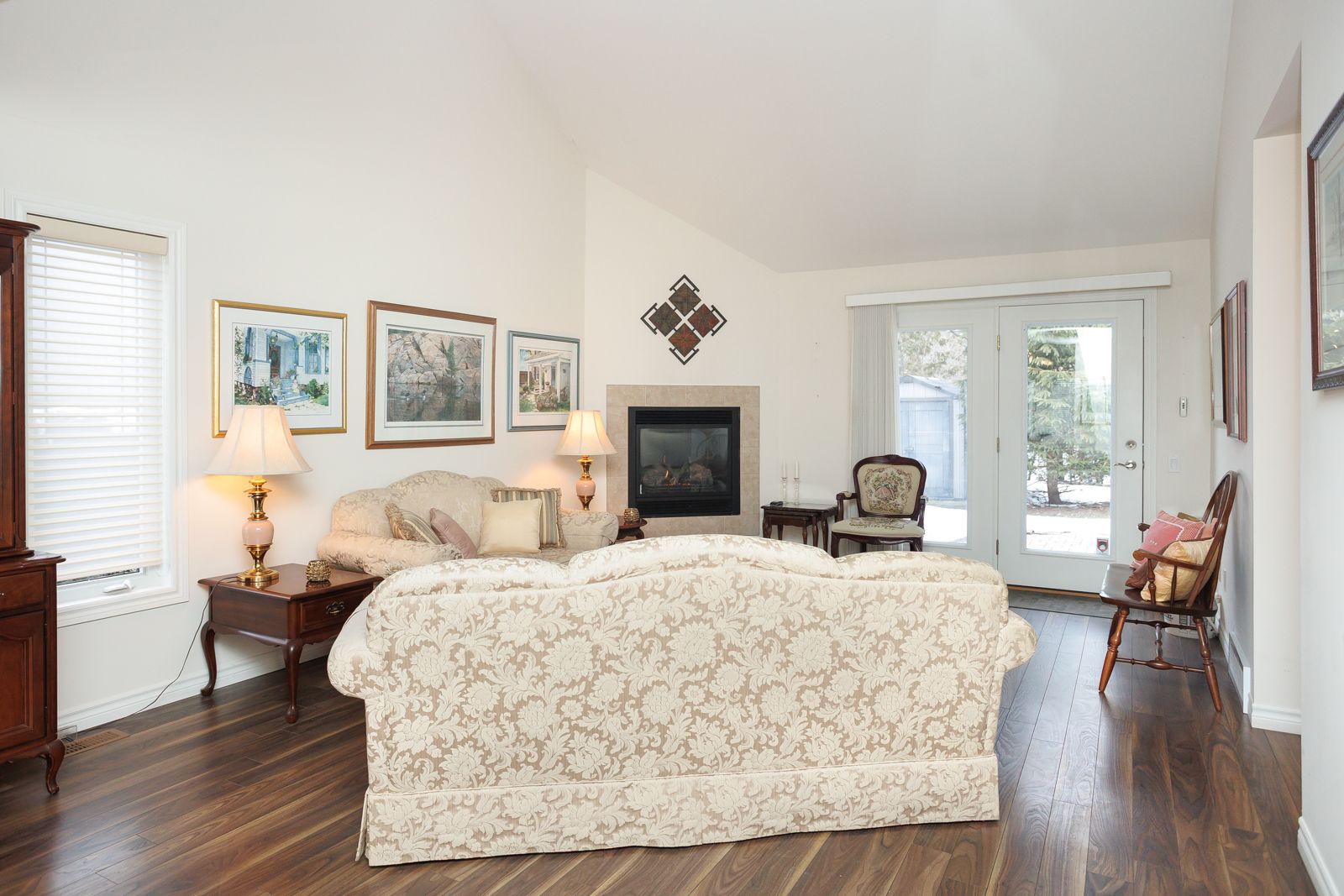 • Open concept main floor with vaulted ceiling and gas fireplace.
