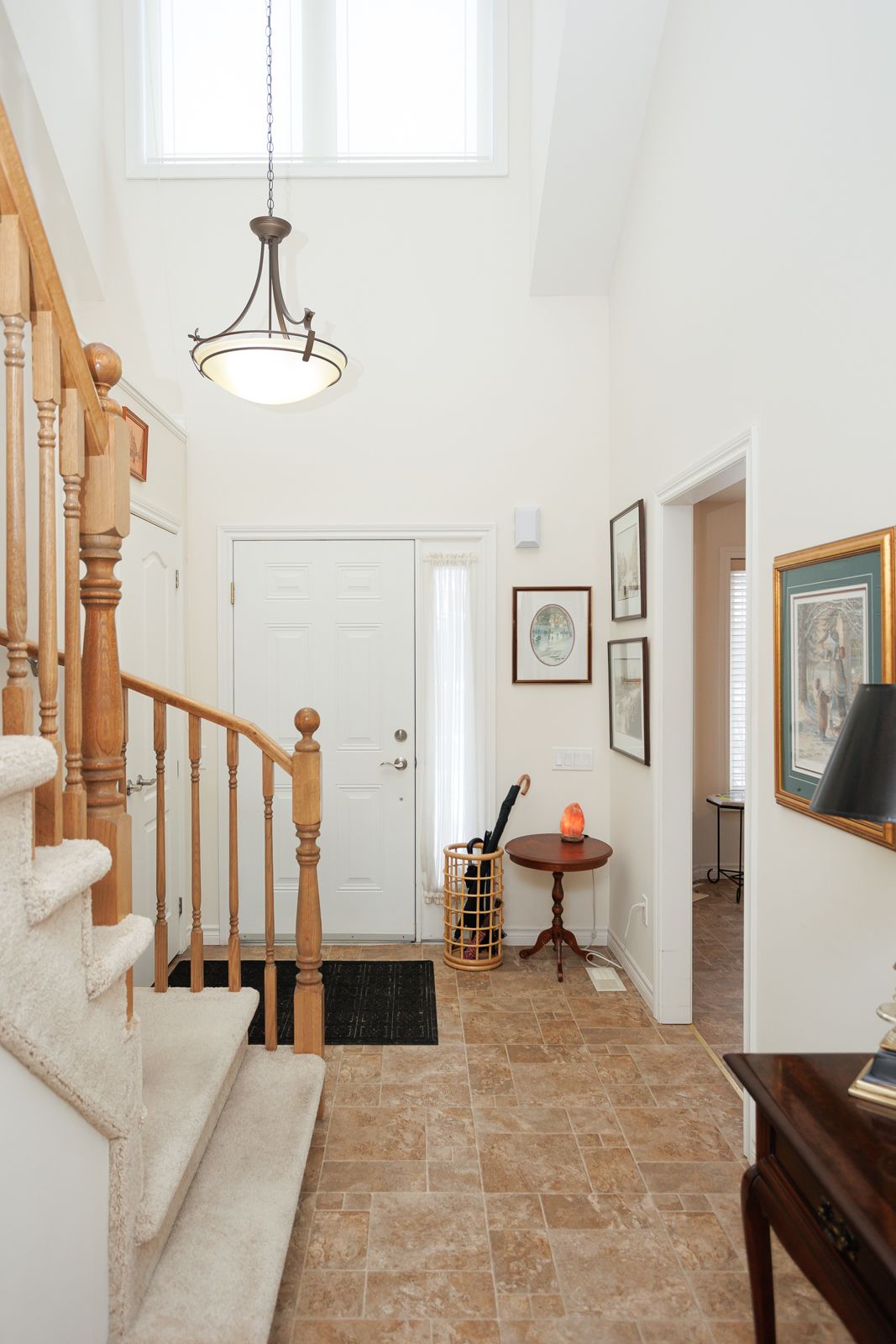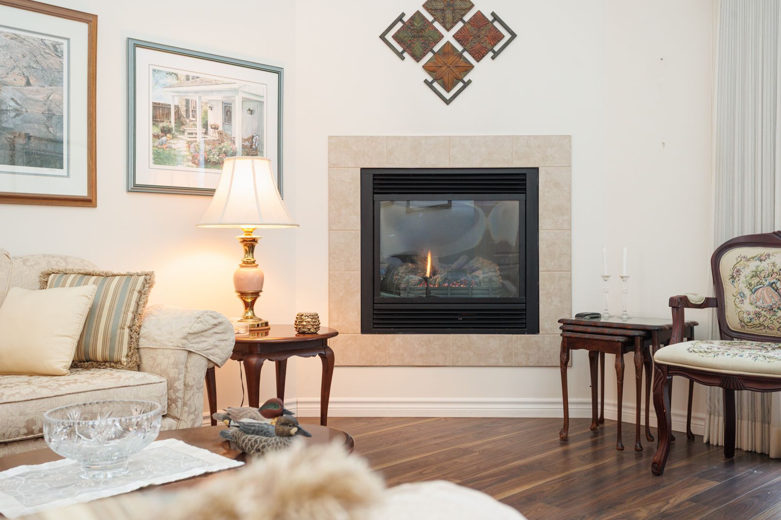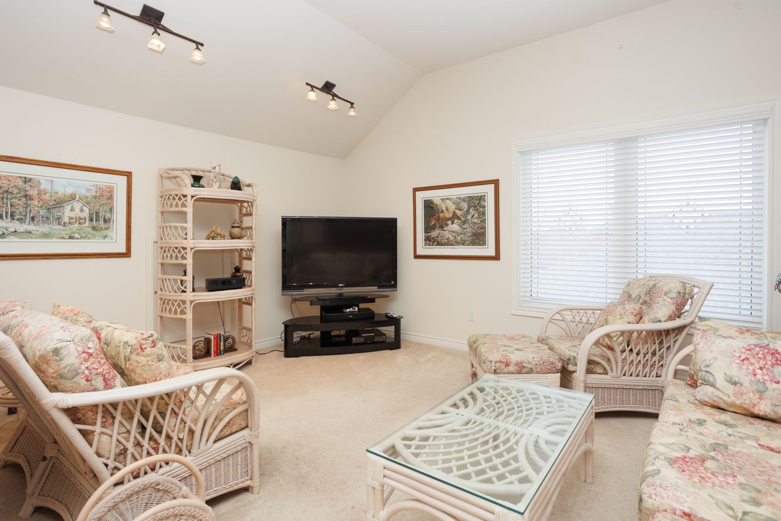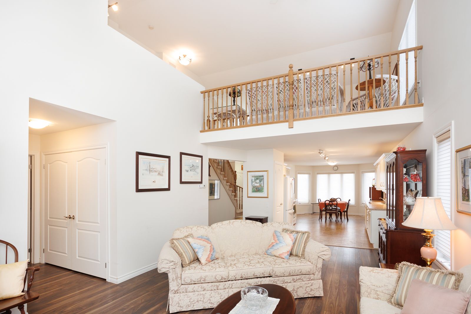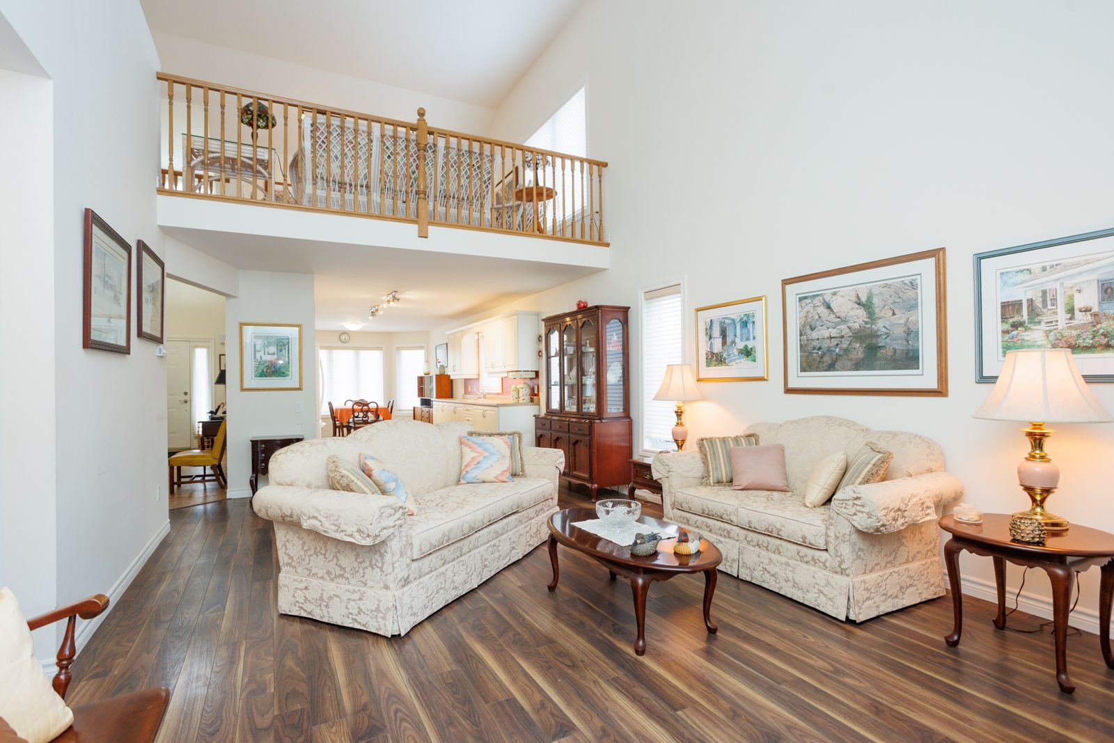 • Open concept main floor with vaulted ceiling and gas fireplace.