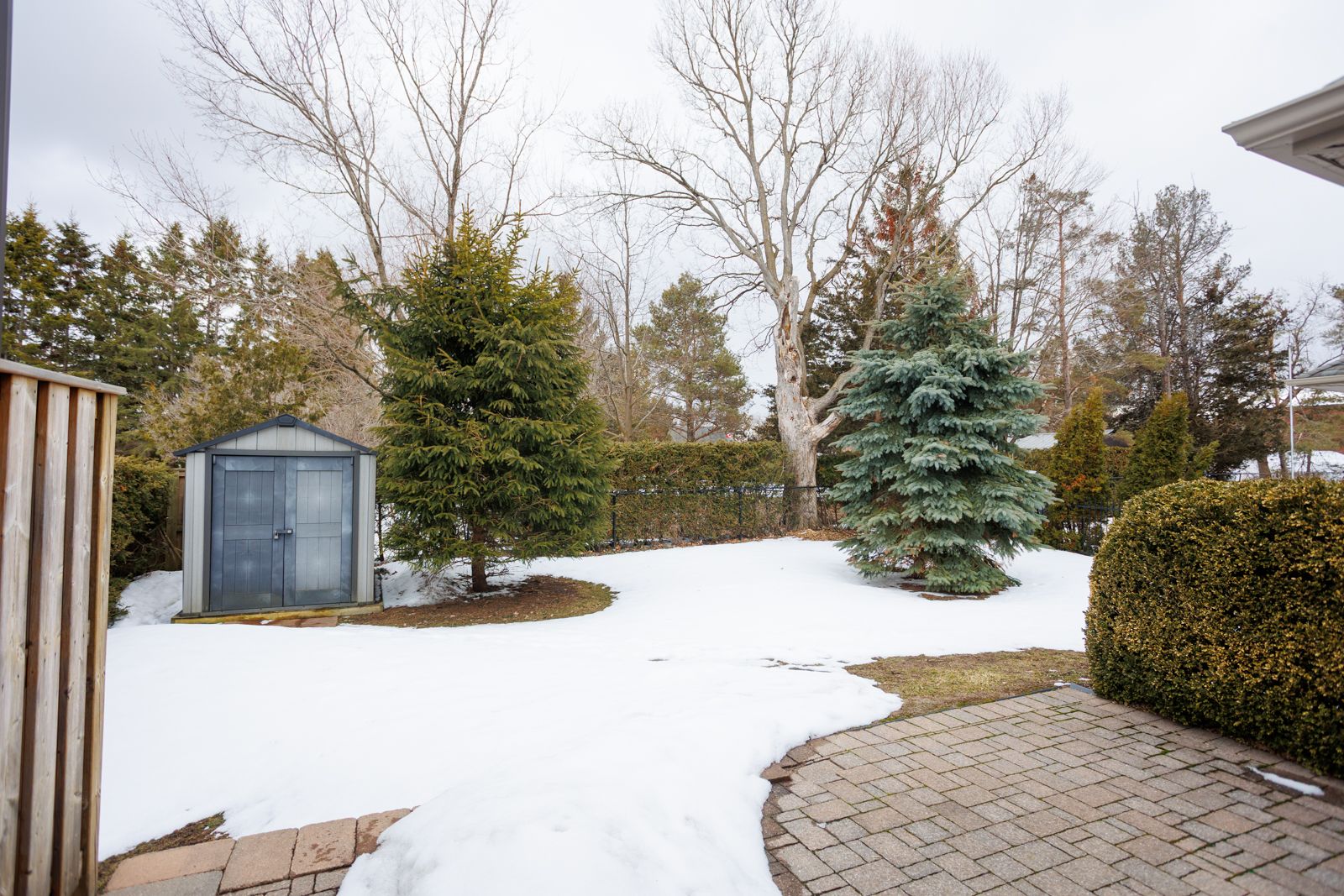 • Private backyard sitting space with storage shed and ample parking.