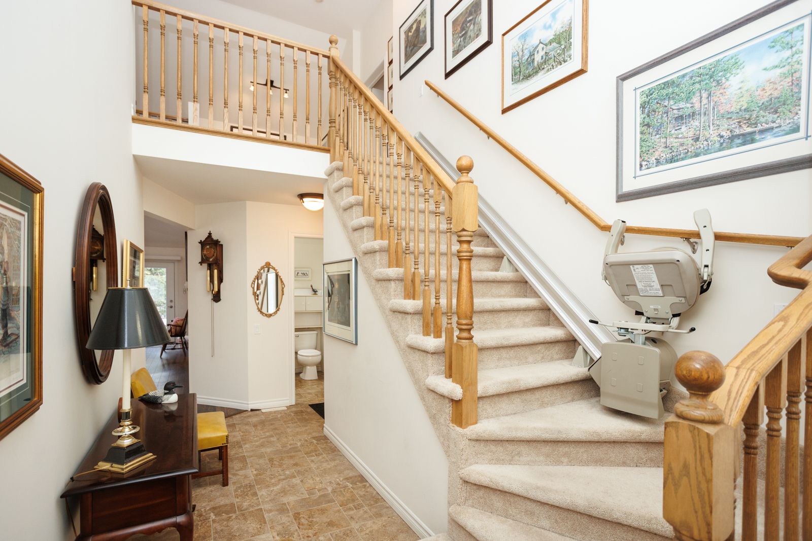Beautifully crafted custom wilson bungaloft located in a prestigious neighbourhood, thoughtfully designed with accessibility in mind. This exceptional home features a gently sloping front entrance, extra wide hallways and doorways, a barrier-free shower, and a convenient stair lift to the loft. The open concept main floor showcases a spacious kitchen, dining and living area, highlighted by a vaulted ceiling and a cozy gas fireplace - perfect for both everyday living and entertaining. The main floor primary suite is truly impressive, offering a generous sitting area, walk-in closet and a fully accessible 4 piece ensuite bathroom. Upstairs, the loft provides an ideal retreat for guests or family, complete with a large bedroom private ensuite and a charming sitting area. Step outside to enjoy a private backyard sitting space, along with storage shed, attached garage and ample parking. A rare combination of style, comfort and accessibility - this home is a must-see