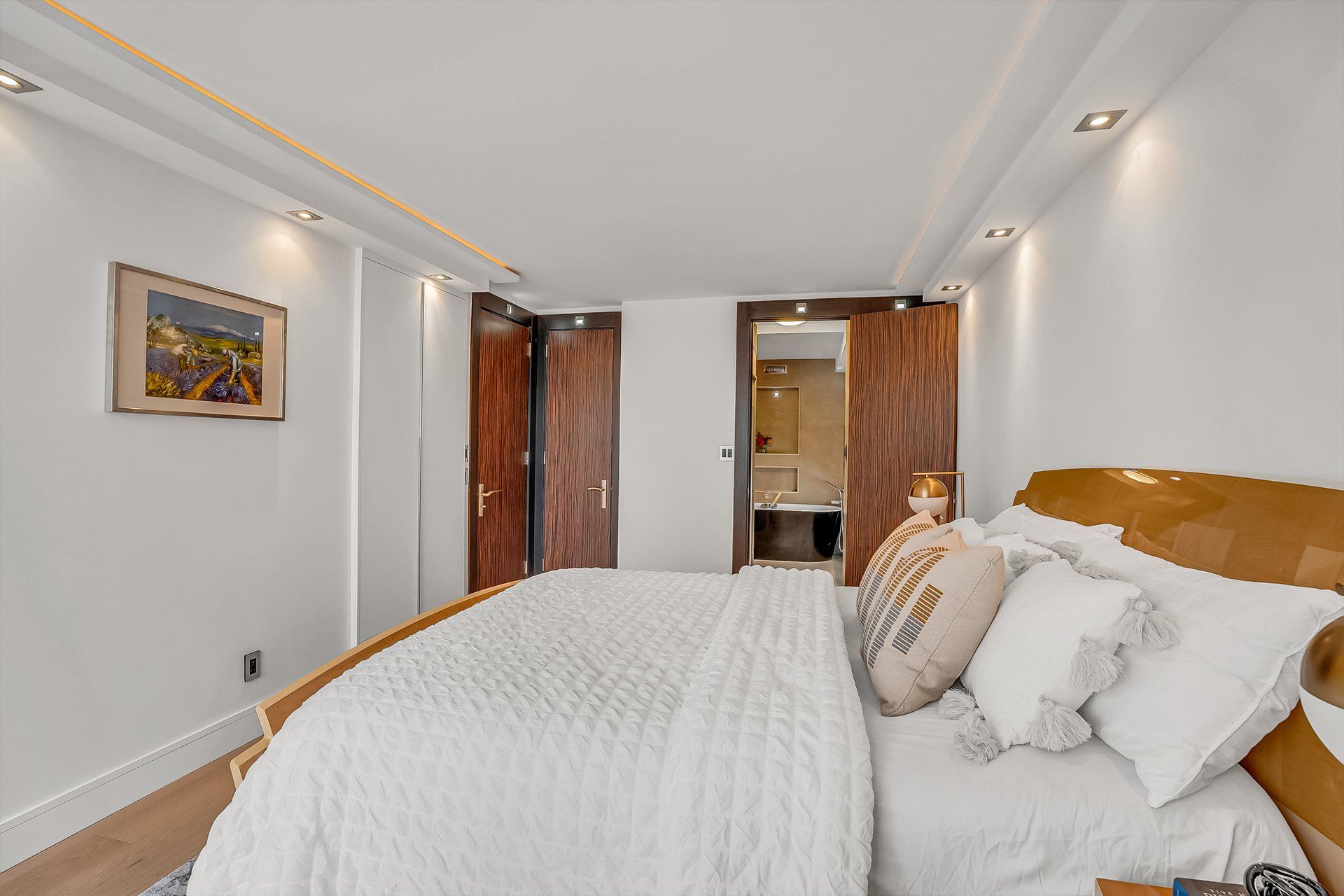 Welcome to toronto's original waterfront condo! South east facing unobstructed, panoramic, forever views of lake ontario! Rarely available spectacular waterfront luxury living with a stunning two-storey 2-bedroom/2 bathroom residence at the iconic 33 harbour square. One of toronto's most sought-after condominium addresses on queens quay. Completely renovated and exquisitely designed to provide over 1400 sqft of contemporary living space with high ceilings, stunning glass millwork, and white oak wide plank flooring. Harmoniously merges warm finishes with modern functionality, offering generous space for family living or entertaining. Expansive floor-to-ceiling windows for abundant natural light. State of art the kitchen with high-end gaggenau appliances. Spa master ensuite with heated flooring and fireplace. Full-service building amenities with 24-hour concierge service & parcel room, surface & u/g visitors parking, complimentary shuttle bus to major dt locations, guest suites, & 2 laundry rooms. Huge salt water indoor pool w/terrace overlooking the lake on the 35ft floor, rooftop garden with bbq, picnic & lounge areas. Full-sized gym, squash courts, games/billiards rooms, library, children's playroom, car wash bay w/vacuum & air & workshop. Steps to path, ttc, go, financial & entertainment districts, st. Lawrence market, scotiabank arena, rogers centre, ferry terminal.