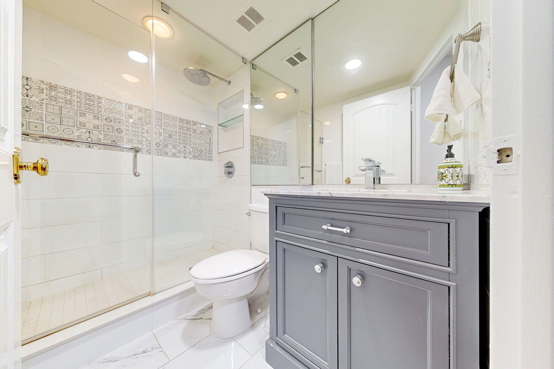 • Spacious lower level with modern ensuite and custom built-ins for organization.
