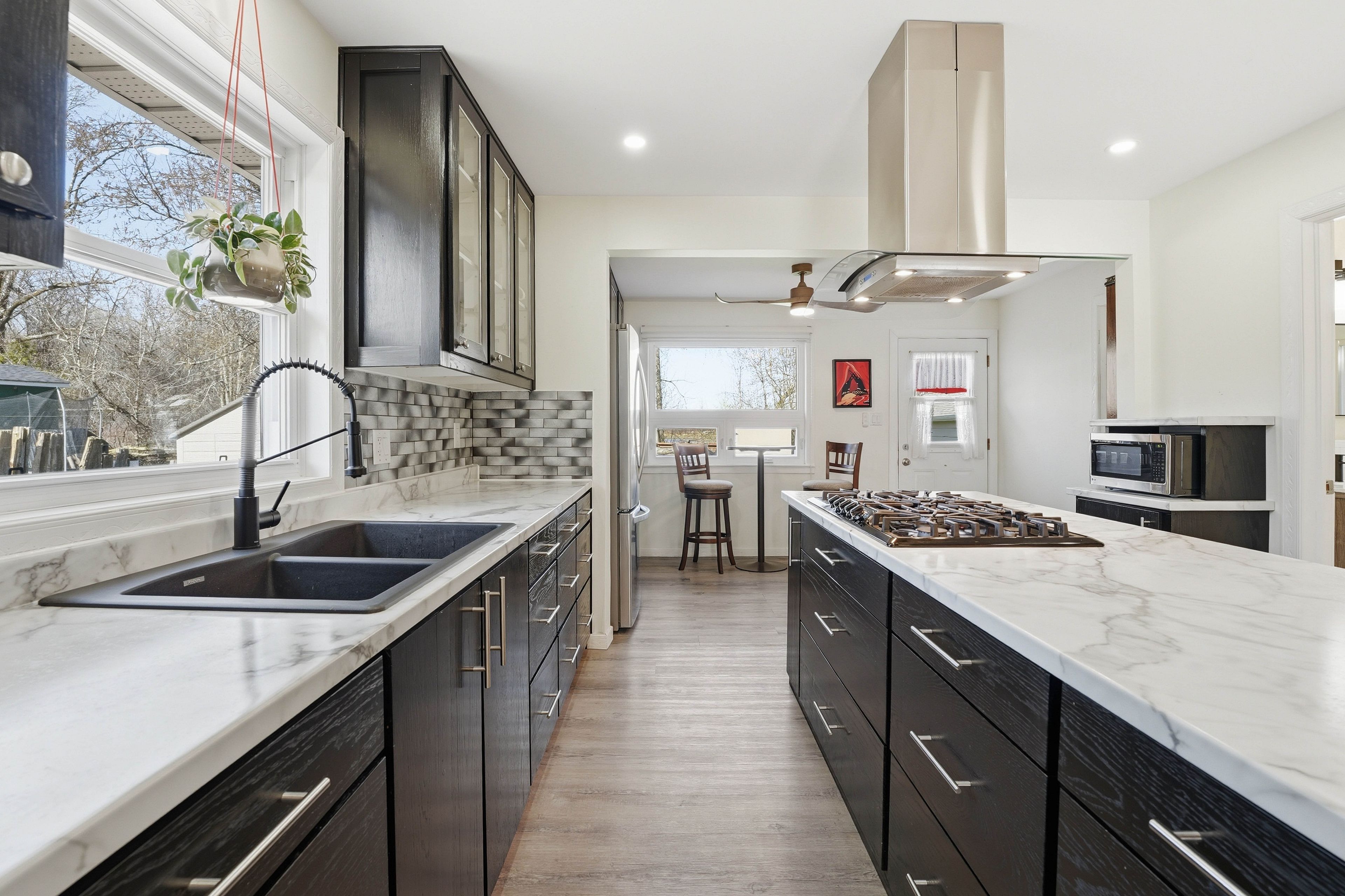 • Renovated 3-bedroom home features open-concept living and a cozy gas fireplace.