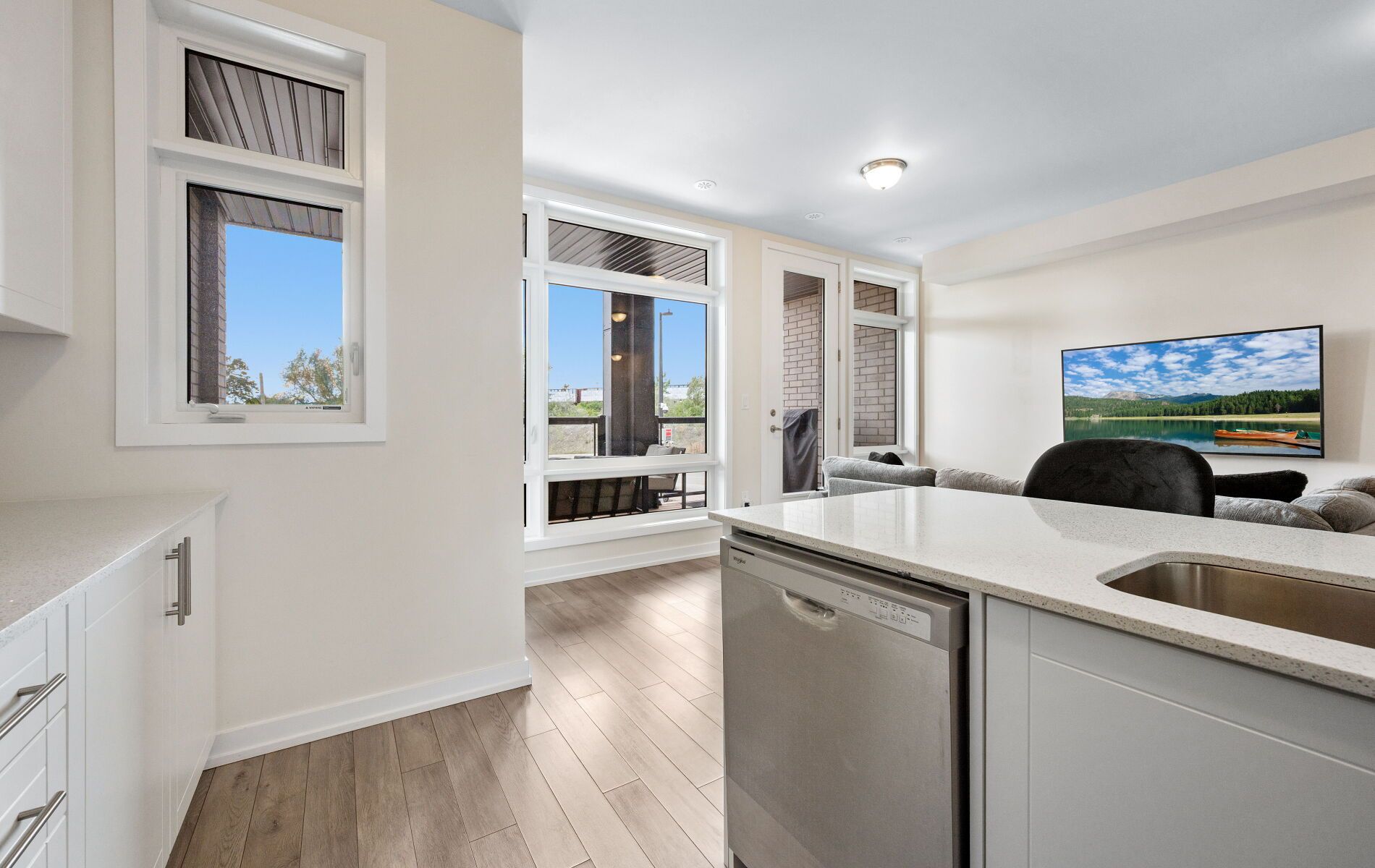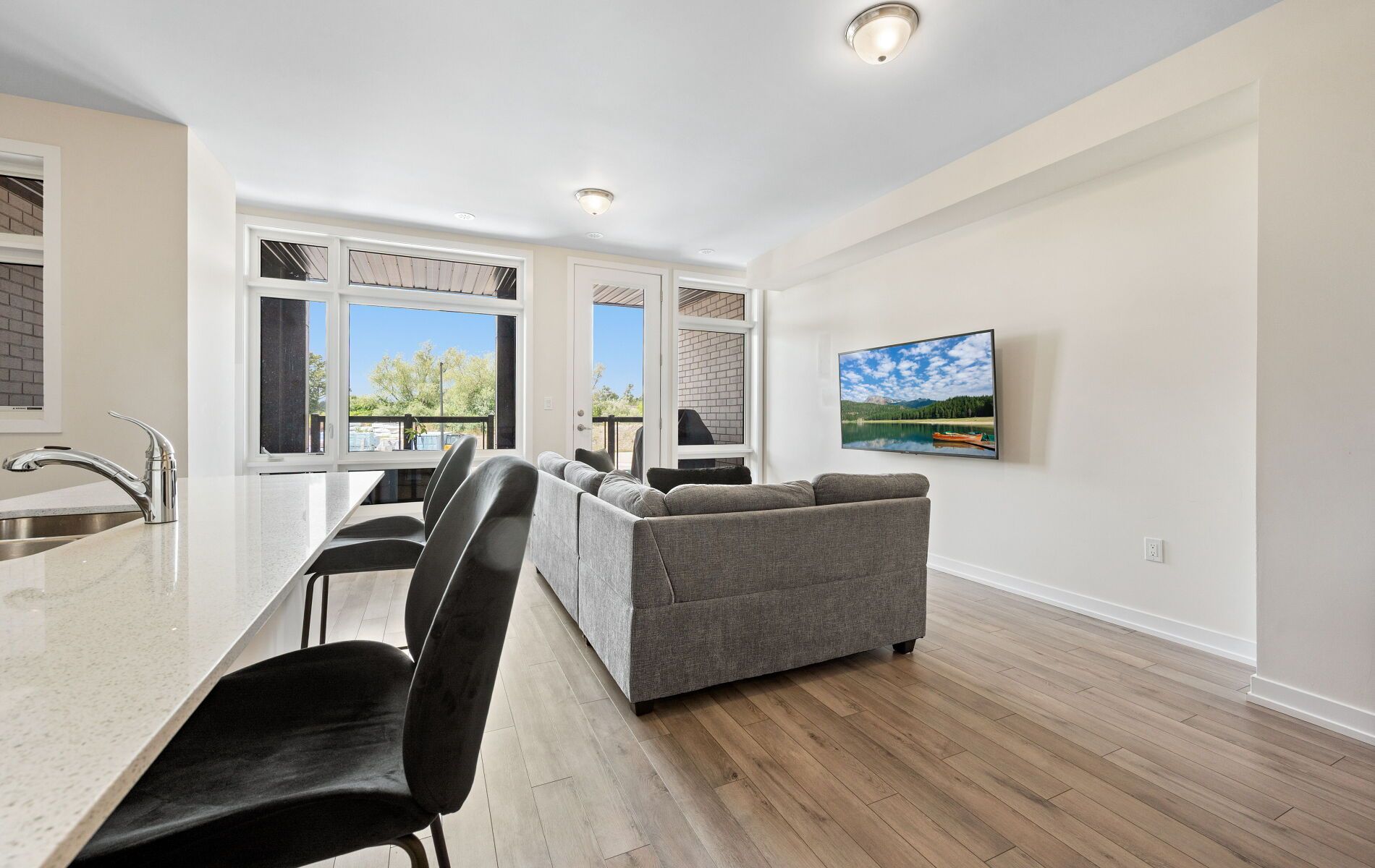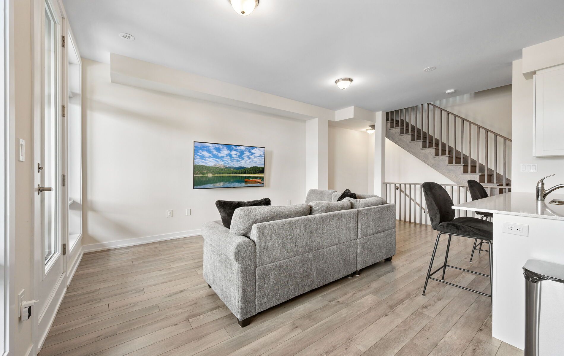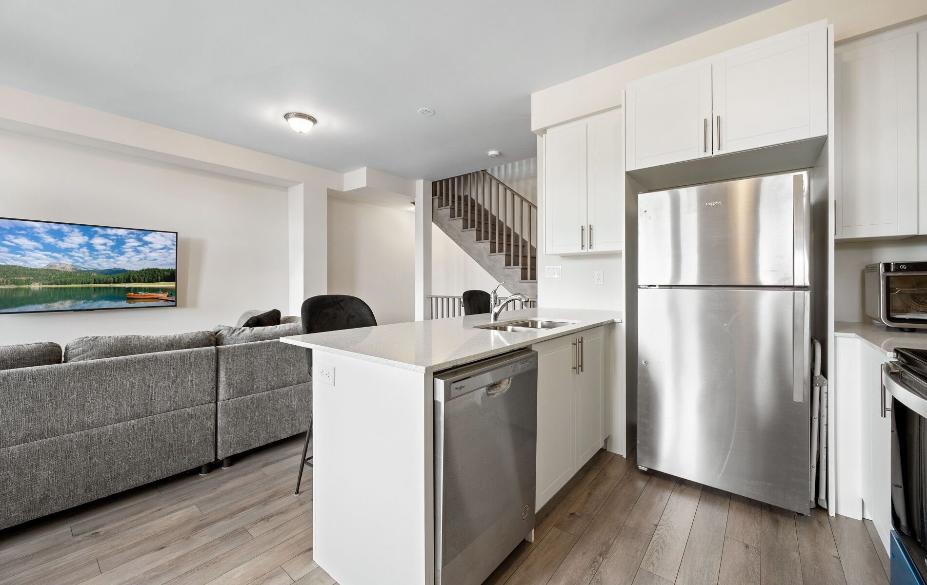 • Open-concept main floor connects kitchen, dining, and living areas.