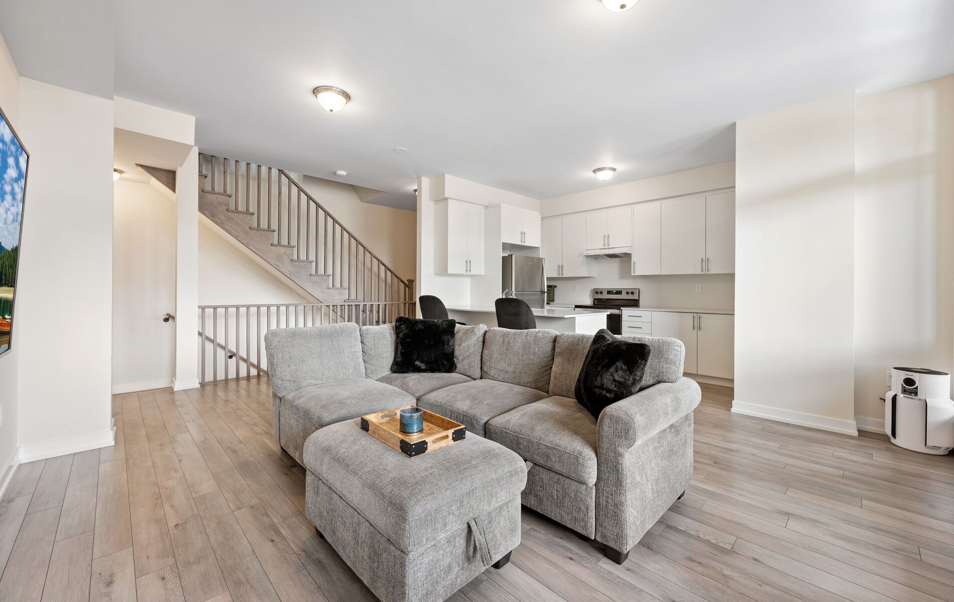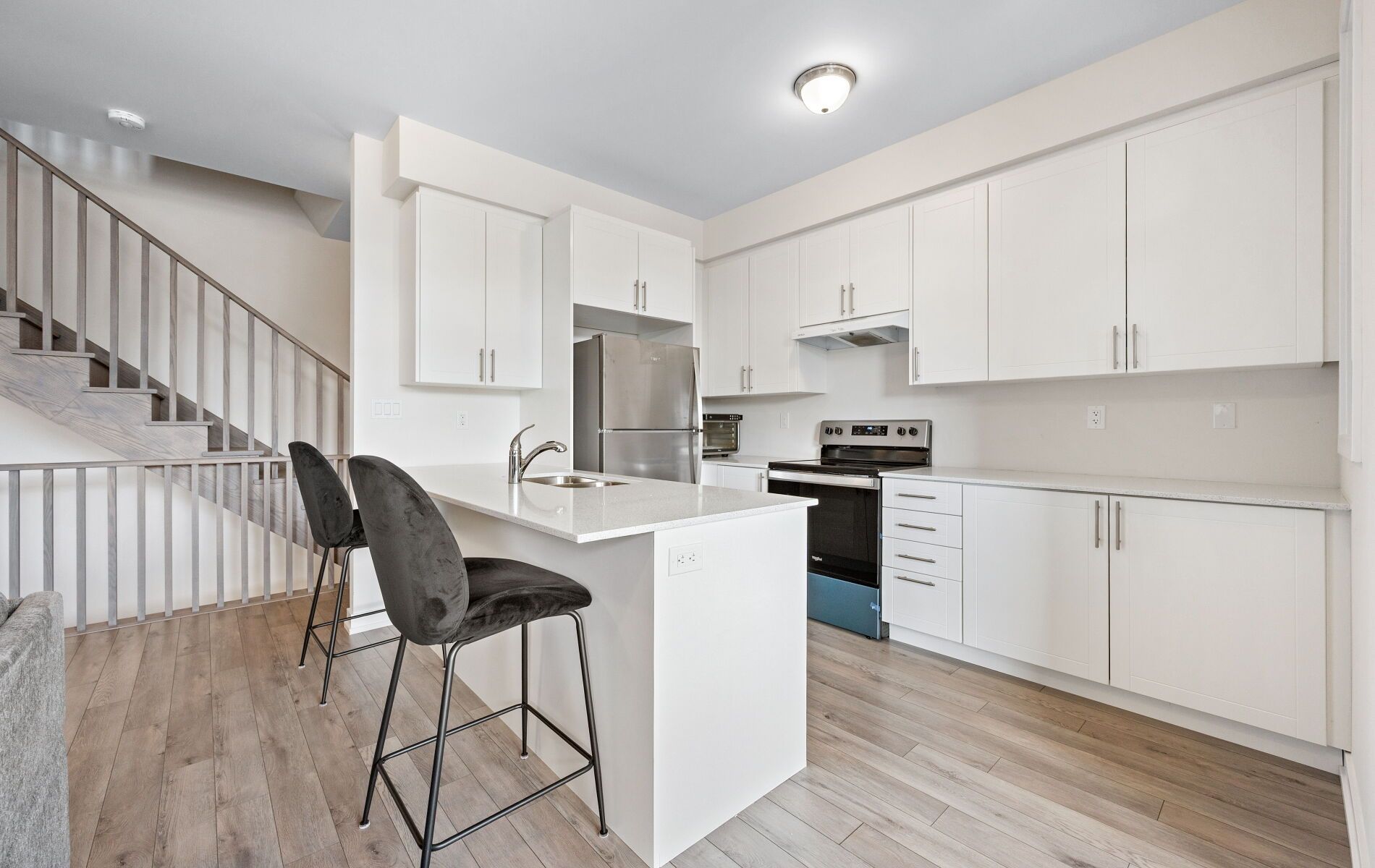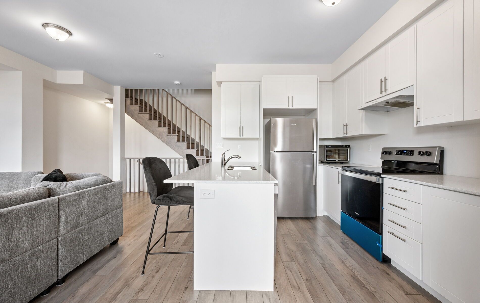 Welcome to 33 kintall way! This newly built three-storey townhome in vaughan offers the perfect blend of style and comfort. Featuring three bedrooms and three bathrooms, it's an ideal home for both families and professionals. The open-concept main floor seamlessly connects the kitchen, dining, and living areas, highlighted by granite countertops and stainless steel appliances. The bright living room extends to a spacious balcony, creating an inviting spot for outdoor enjoyment. The primary bedroom boasts a private ensuite, while the additional bedrooms share a thoughtfully designed bathroom. Potl fee of $209. 48/month, this home combined modern living with convenience.