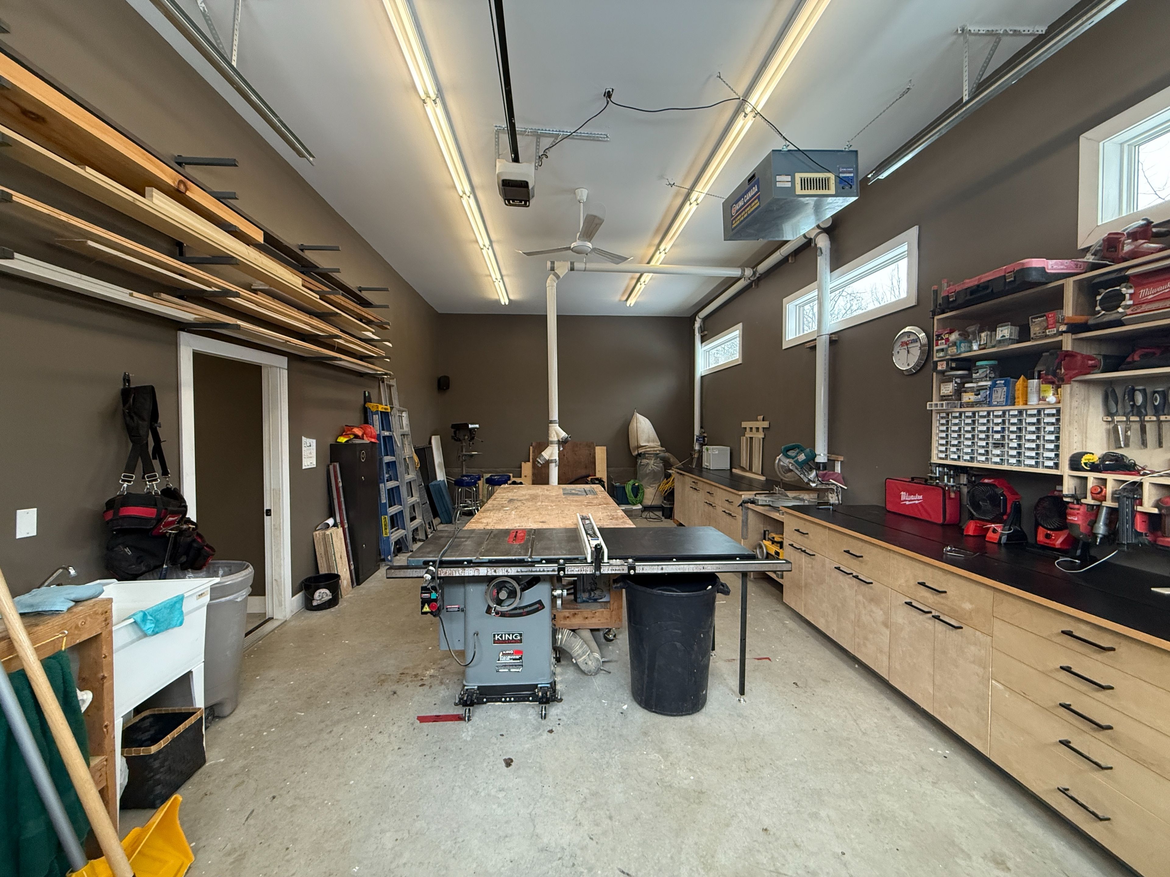 • Spacious garage/workshop offers over 2480sqft with various amenities.