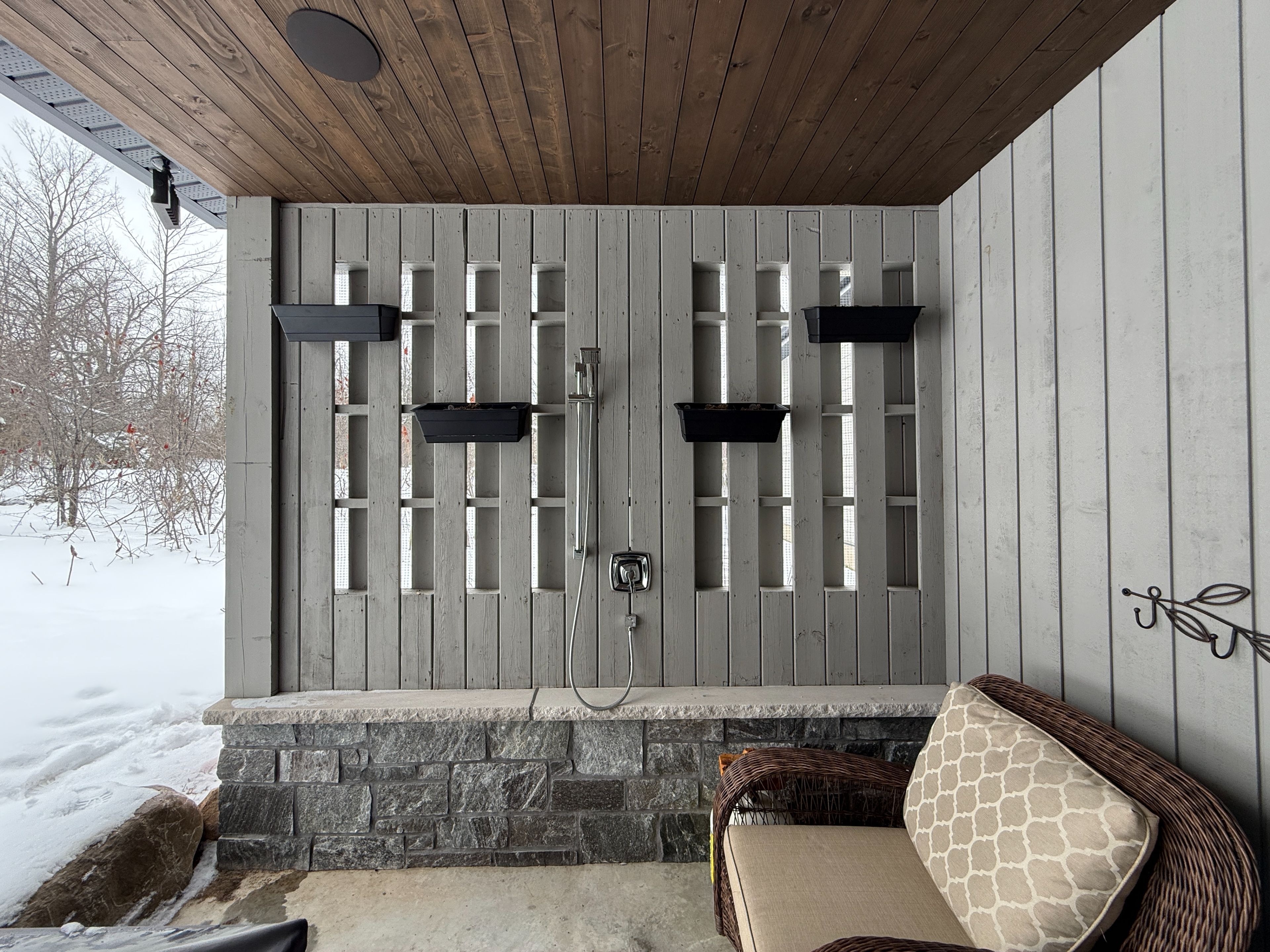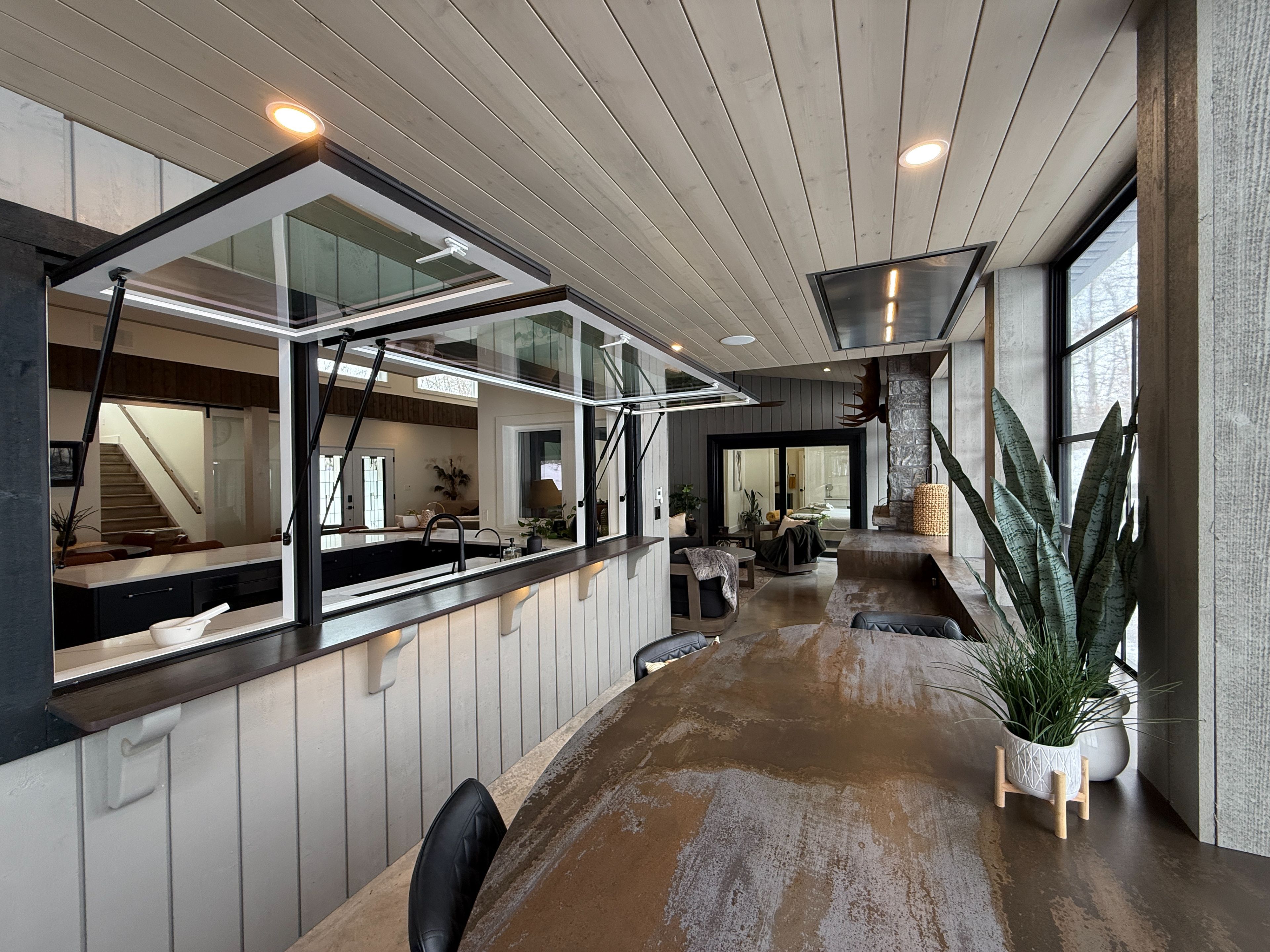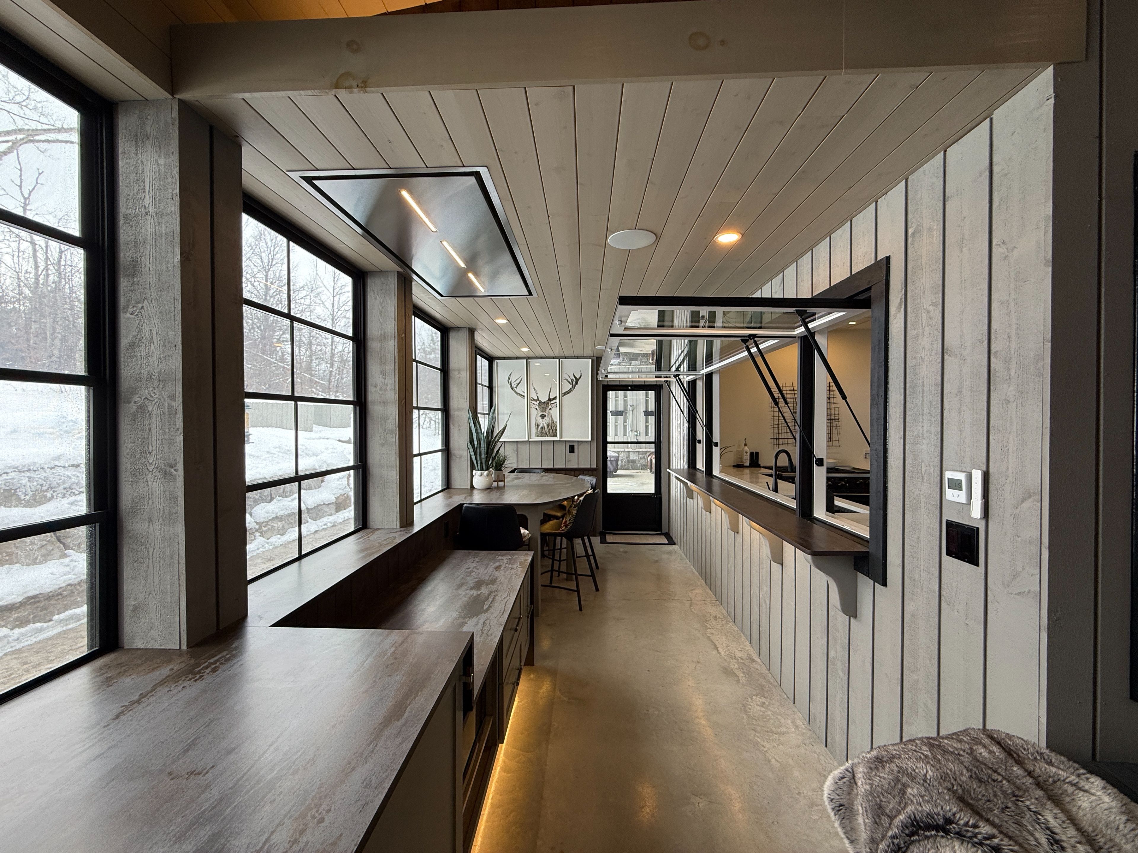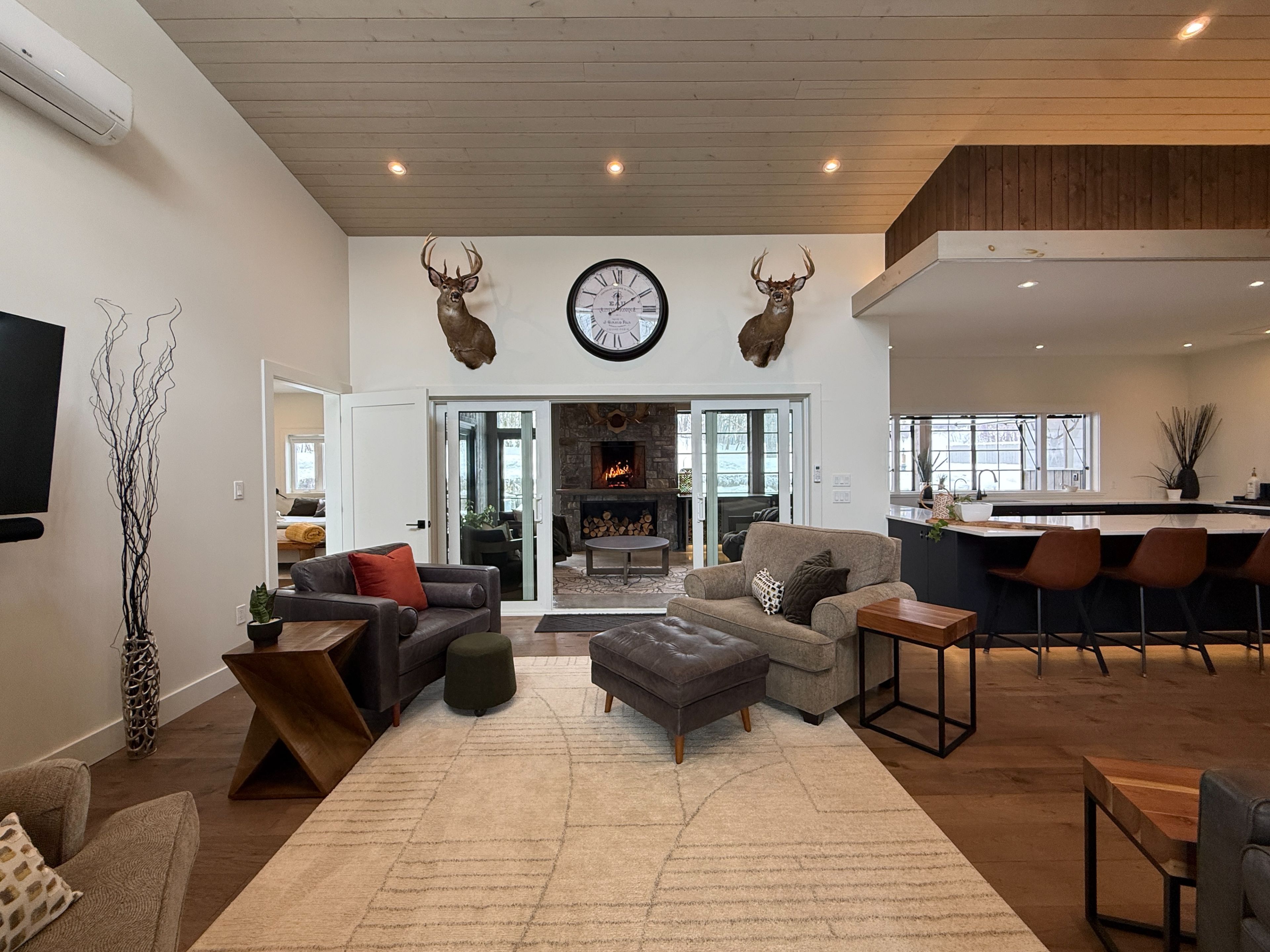 • Heated sunroom with fireplace and BBQ station connected to living area.