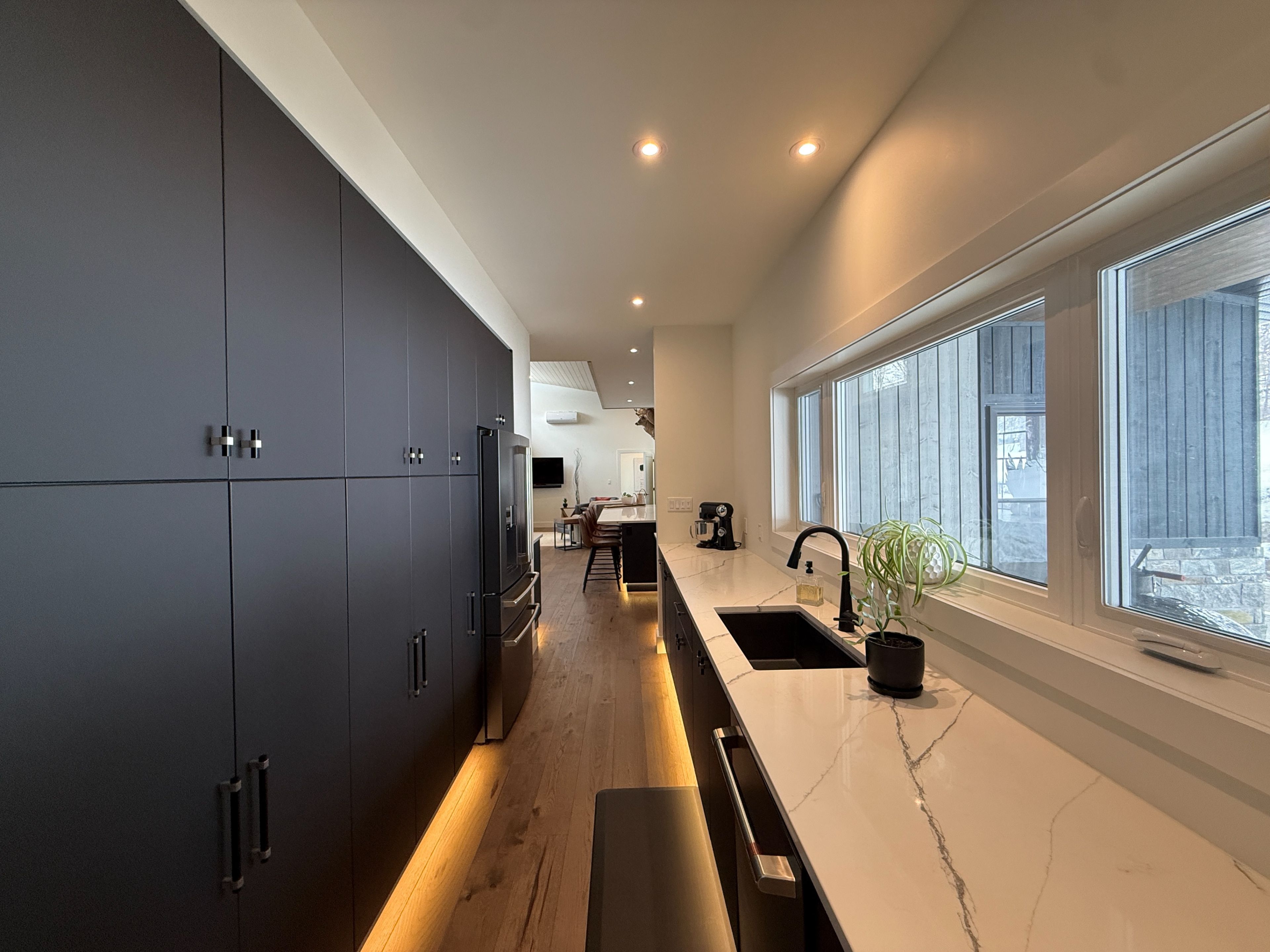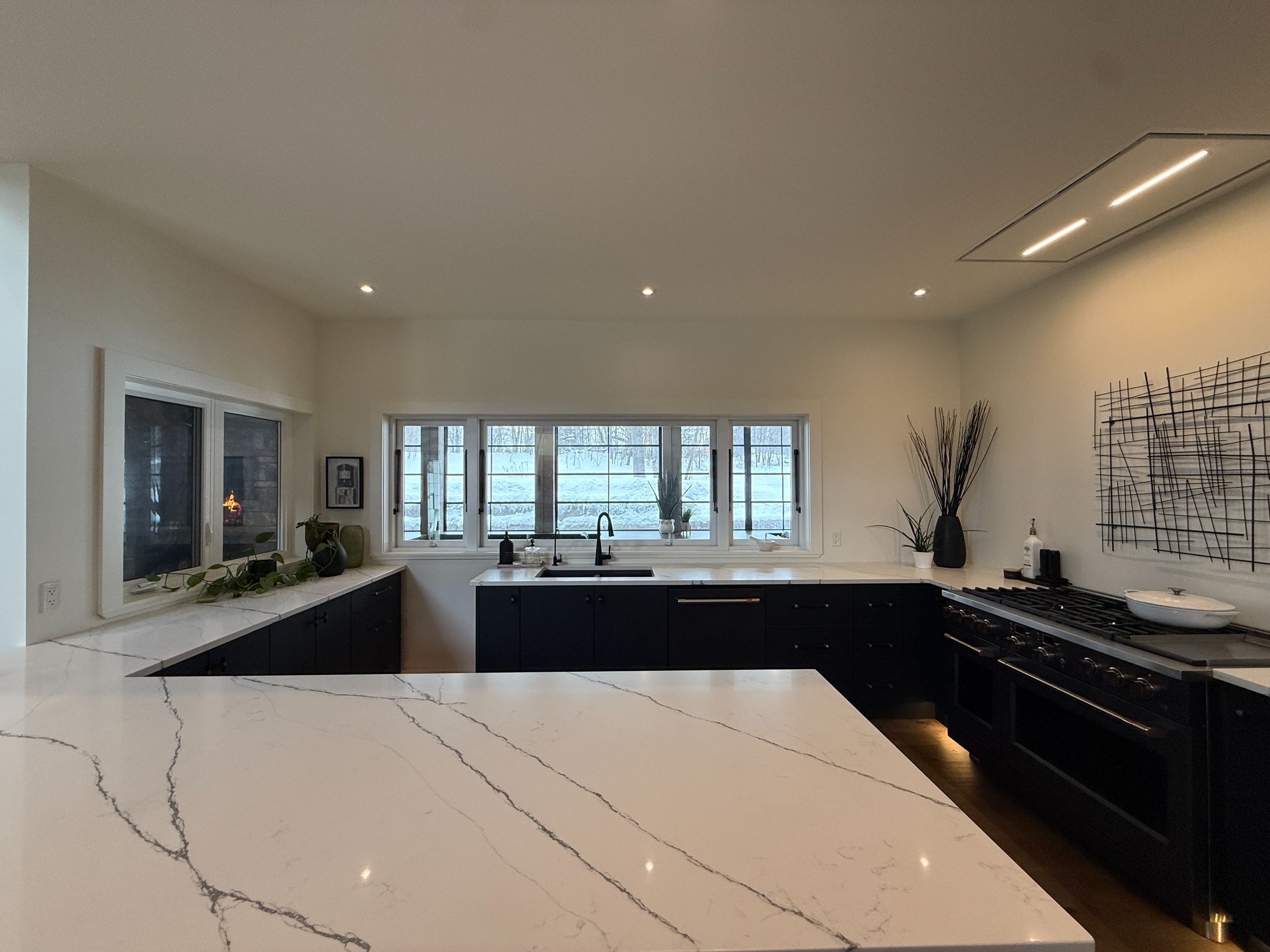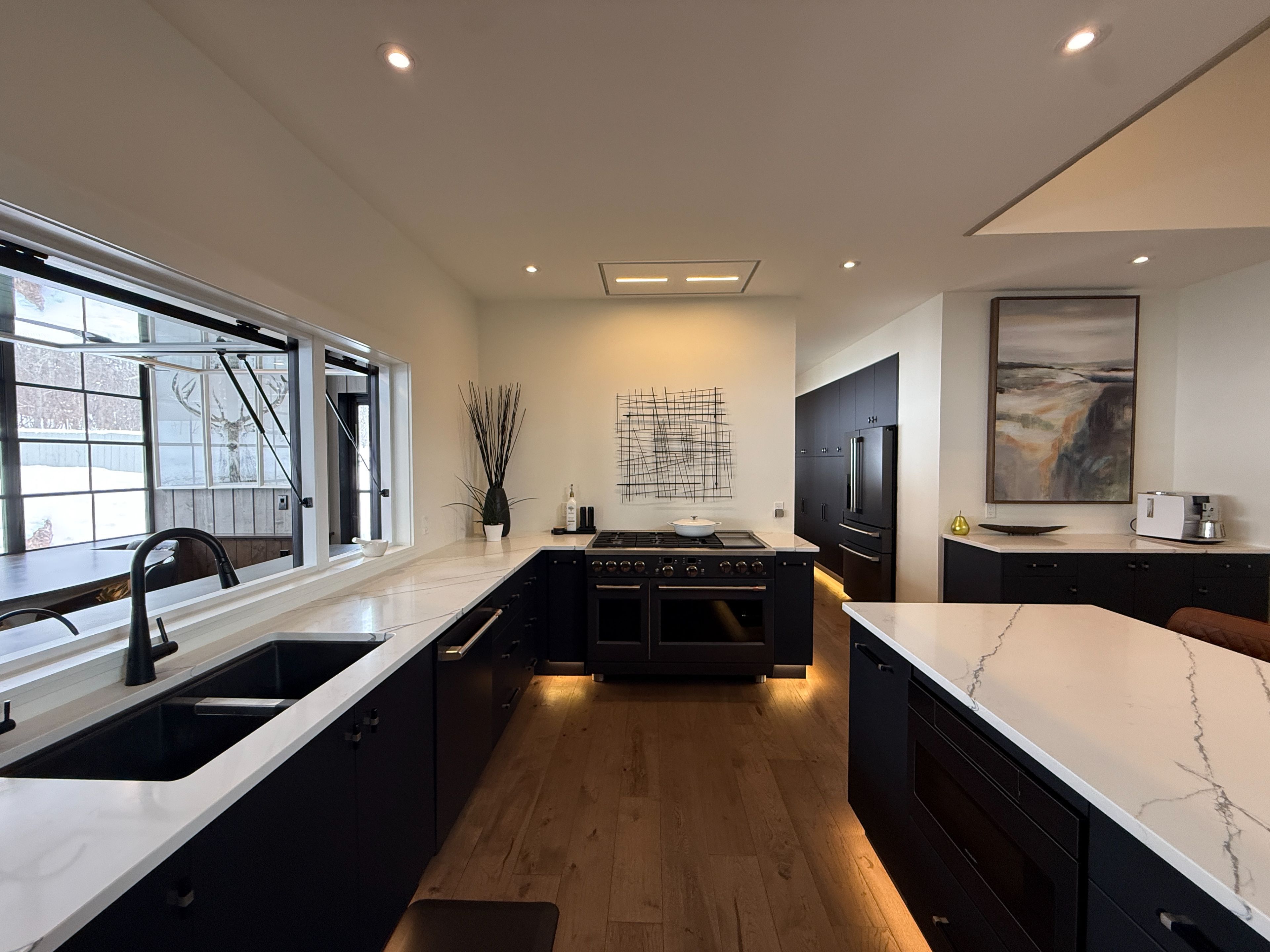 • Bright open concept kitchen features top appliances and butler's pantry.