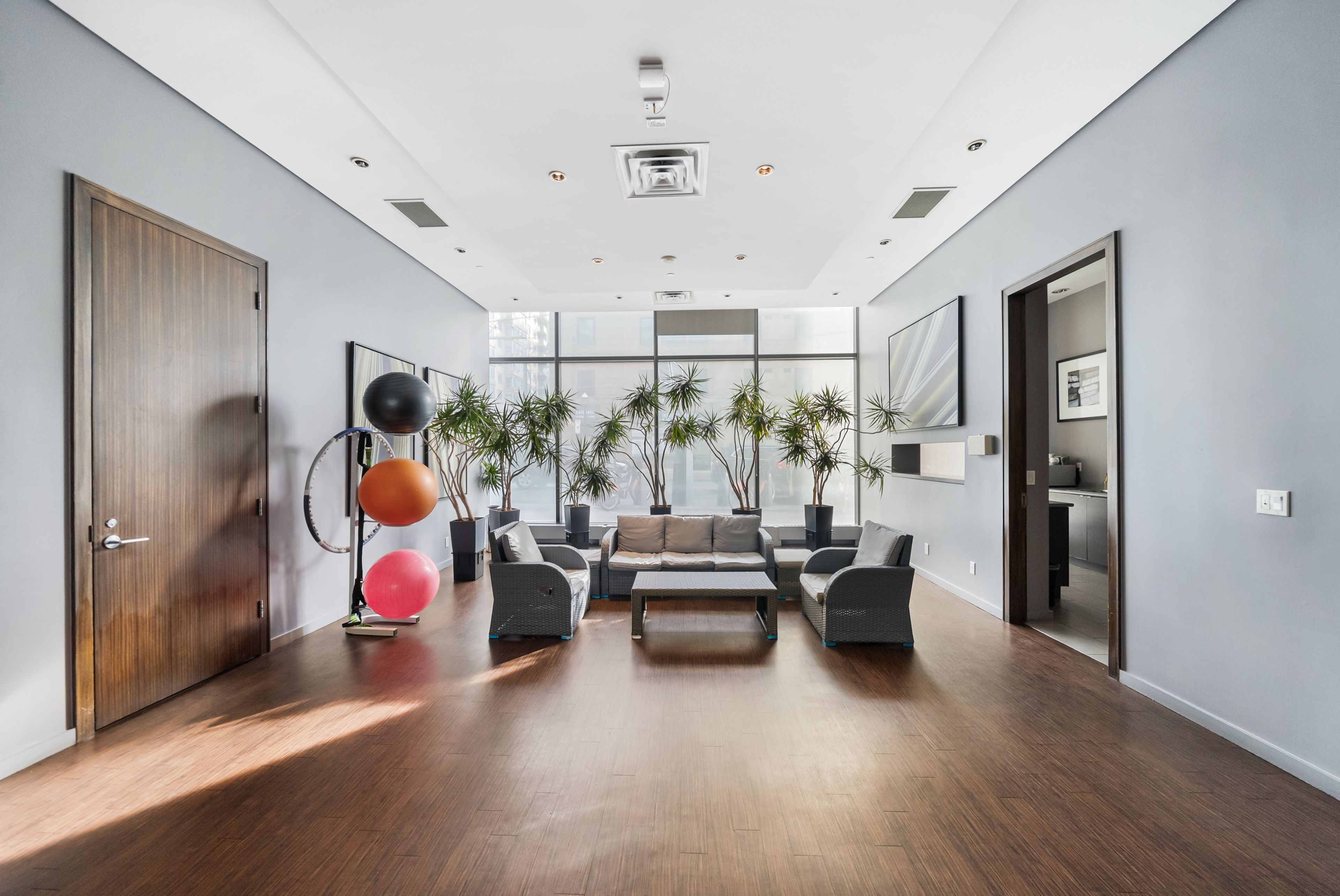 Spacious and thoughtfully laid out jr 1 bedroom, 1 bathroom unit in the heart of downtown! Freshly painted, new light fixtures, and absolutely turn-key, this unit is the perfect place to call home. Open concept living and dining, bright with floor-to-ceiling windows and walkout to the balcony. The modern kitchen offers full-sized stainless steel appliances, stone counters, and undercabinet lighting. The bedroom alcove provides privacy and separation with 2 double closets and wall-sconce lighting. Full 4pc bathroom with ample storage, and in-suite laundry! Enjoy the perks of the building's great amenities: gym, exercise area, party room, rooftop lounge, and visitor parking. Outstanding location in the financial district, steps to the subway/ttc, st lawrence market, entertainment district, distillery district, eatons centre, st mike's hospital, parks, shops, restaurants, and cafes. Love where you live and embrace all that downtown has to offer!