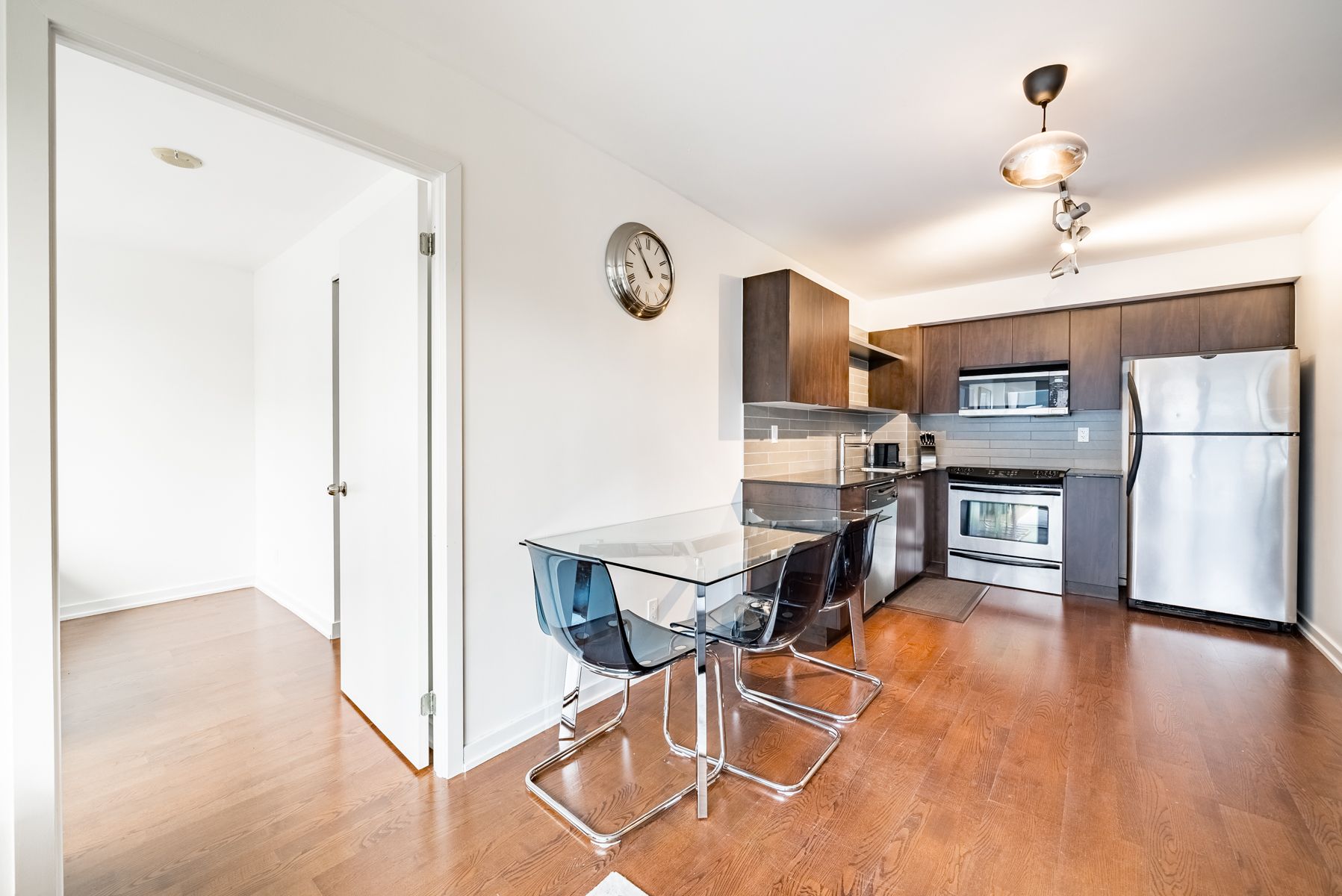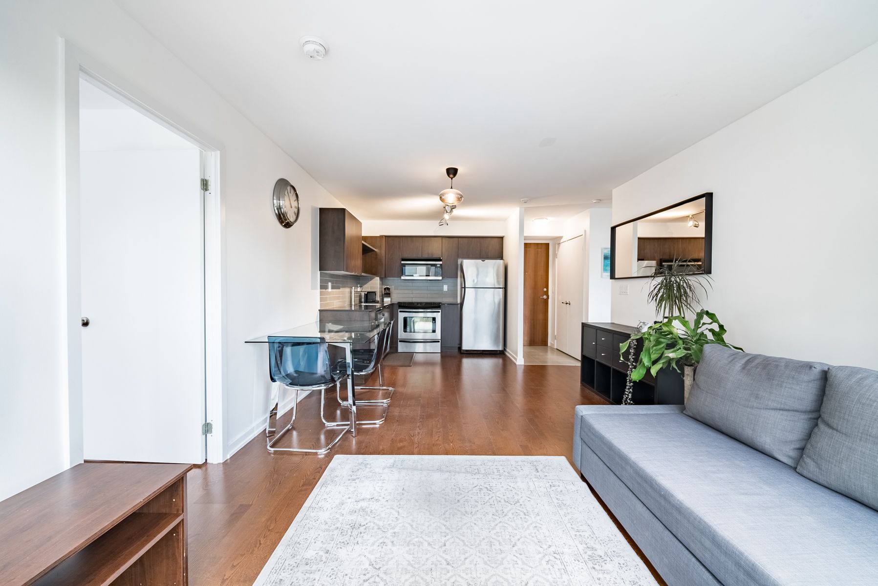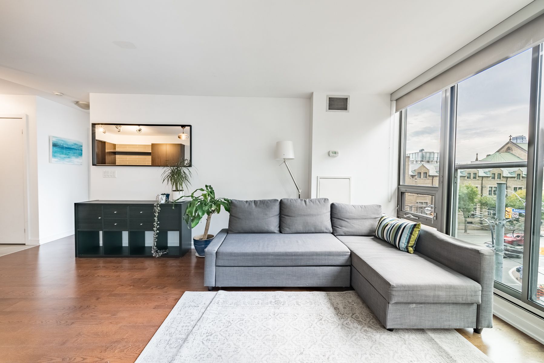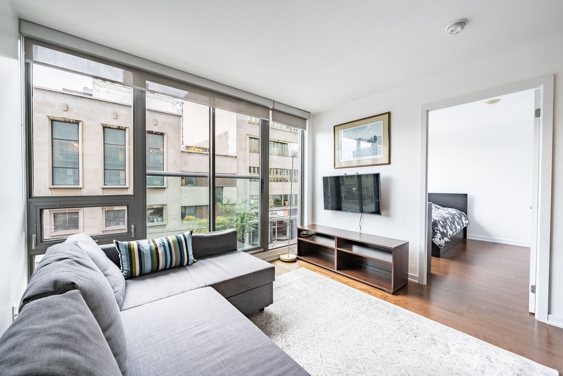 Welcome the spire at 33 lombard street. This stylish fully furnished residence offers bright, open-concept living with hardwood floors throughout, a contemporary kitchen, and a thoughtfully designed two-bedroom split layout with generous storage throughout. Floor-to-ceiling windows and a juliette balcony invite natural light into the space, while a murphy bed in the second bedroom allows the room to seamlessly transition between a comfortable bedroom and a functional home office. Residents enjoy a full suite of premium amenities including a rooftop terrace with bbqs on the fifth floor, a well-equipped fitness centre, yoga studio, saunas, party room, guest suites, visitor parking, and 24-hour concierge service. Ideally located in the heart of downtown with a 99 walk score, just steps from the financial district, st. Lawrence market, eaton centre, subway, ttc, the path, and some of the city's best dining and shopping.