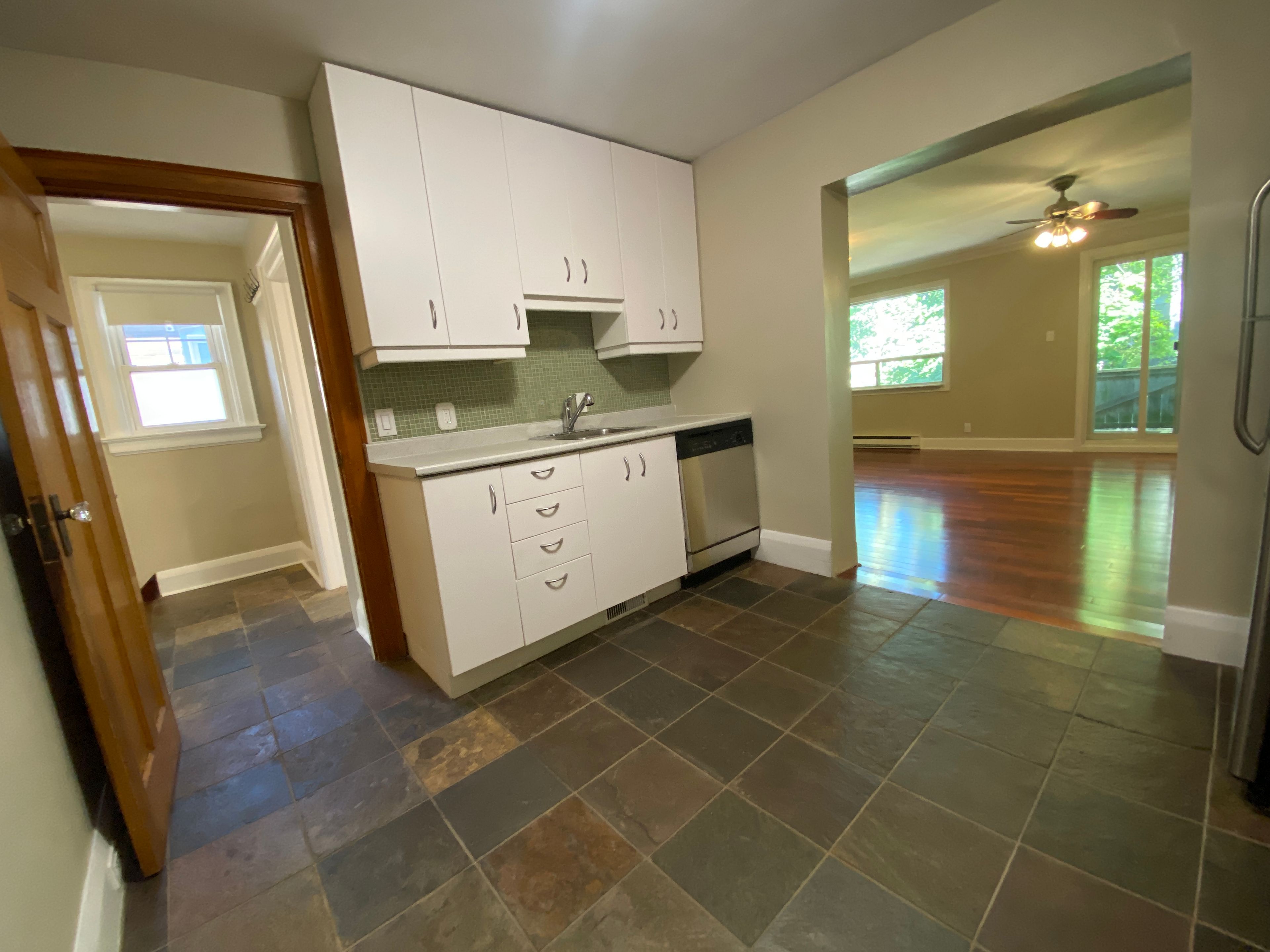 • Large eat-in kitchen with stainless steel appliances for convenience.