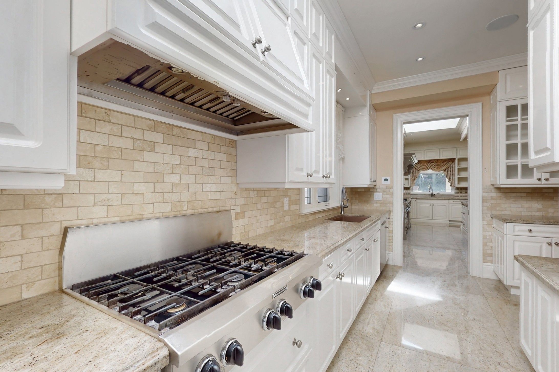• Gourmet kitchen with high-end appliances and large center island for cooking.