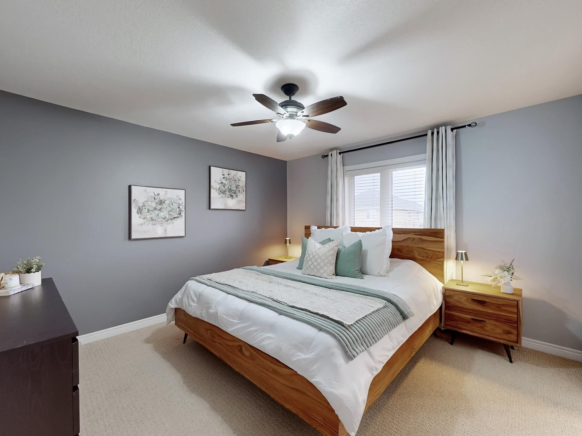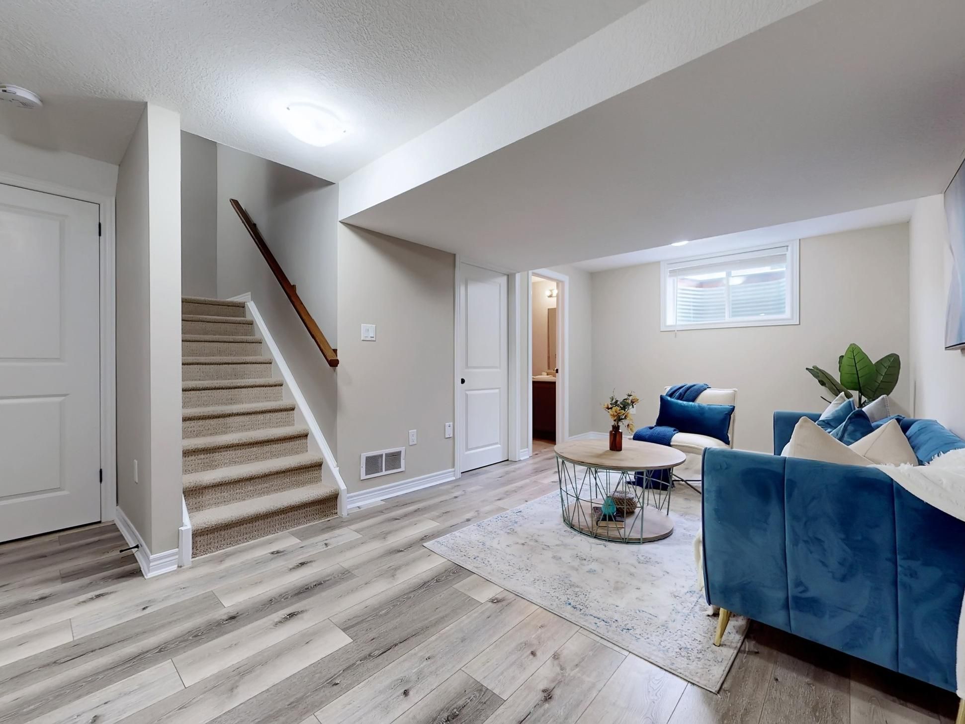 A much-loved freehold townhouse that stands out for its space, condition, and lifestyle appeal. Offering 3 bedrooms, 3 full bathrooms, and a powder room, this home delivers a rare level of functionality for today's buyers. The fully finished basement with a full bathroom adds exceptional flexibility for a family room, home office, or guest suite. The laundry room offers both everyday practicality and the opportunity to personalize with your own design touches. Step into an impressive backyard retreat featuring a beautiful deck and potted perennials, a private, peaceful setting ideal for entertaining or unwinding after a long day. Located in a sought-after, family-friendly neighbourhood close to schools, parks, trails, and everyday amenities, this move-in-ready freehold home presents an outstanding opportunity in the guelph market. Homes of this quality, layout, and care are rarely available. Other inclusions are google nest smart gen-3 thermostat, the kitchen table/ centre island with 2 chairs & nema 14-50 plug installed in garage for charging electric vehicles delivering 32 amps of continuous charging. Don't miss it!