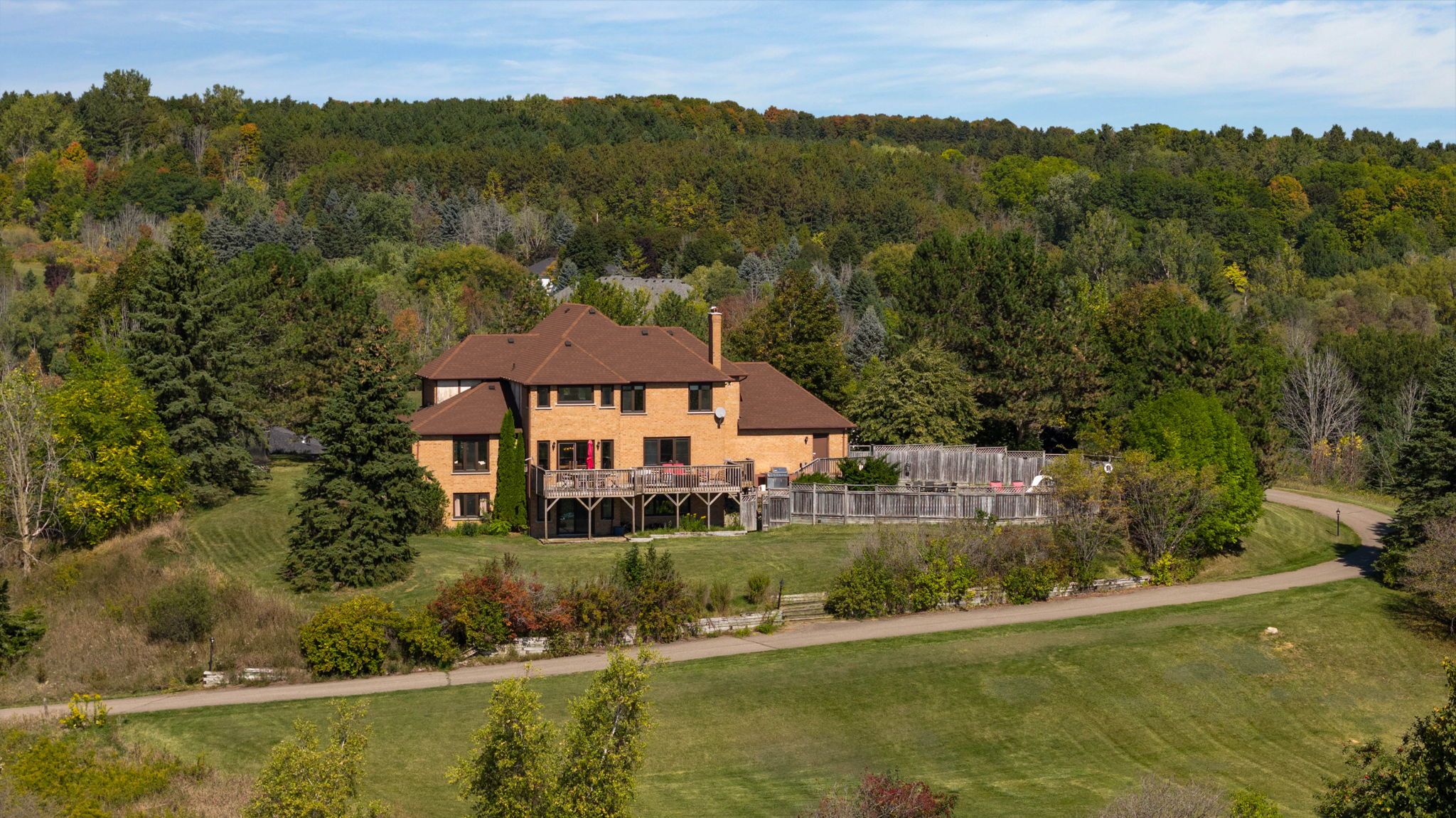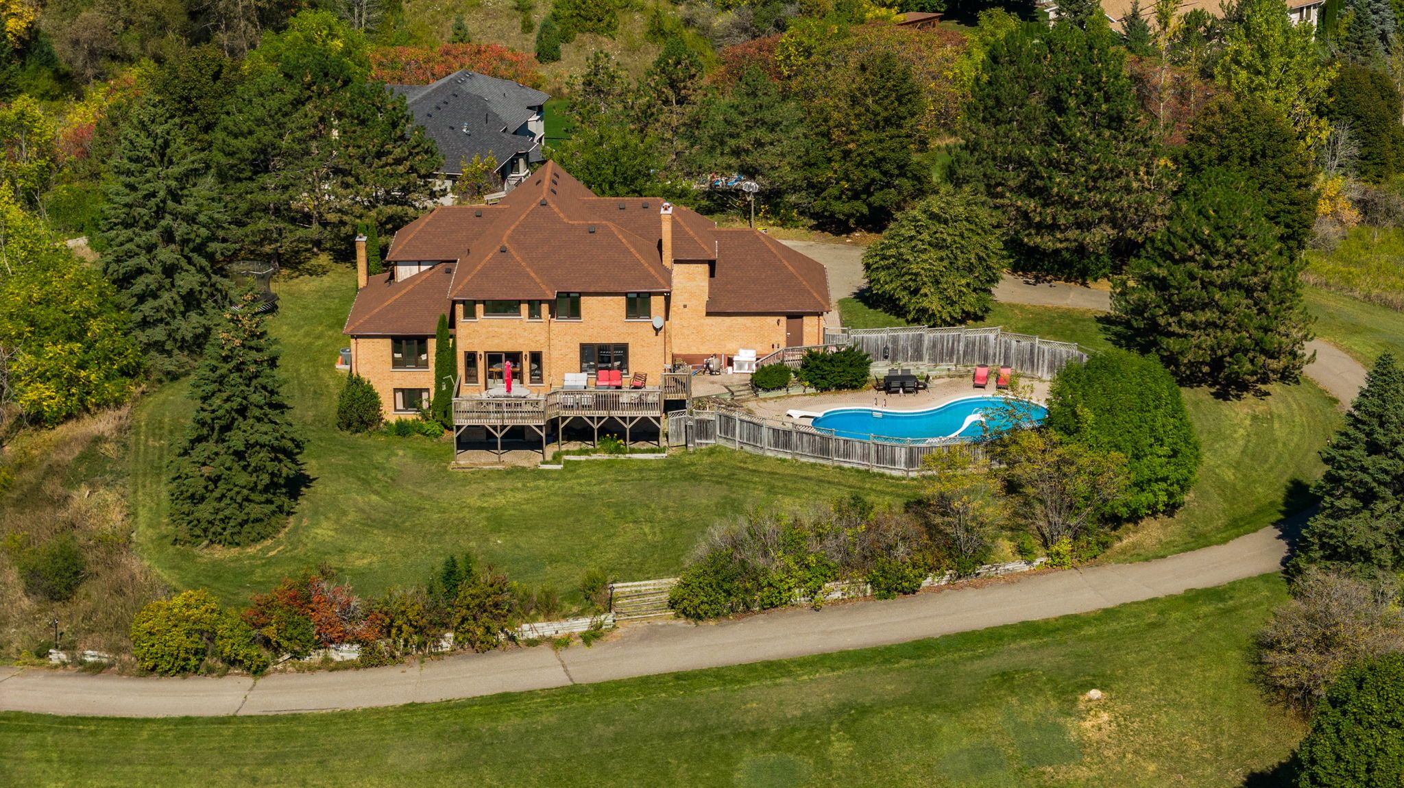Perched high on a hill in one of palgrave's most sought-after estate communities, this over 4000 sq ft home sits on nearly 3. 5 private acres surrounded by mature trees and breathtaking panoramic views of caledon. Featuring 5 bedrooms and 4 bathrooms, this elegant home is filled with natural light from expansive windows that frame stunning vistas in every direction. Designed for both comfort and entertaining, the property boasts three brick fireplaces, a finished walkout basement, and a custom wine cellar. The heart of the home includes a bright kitchen with a built-in gas cooktop and spacious principal rooms, while outdoors you'll enjoy sun all day by the inground pool, plus a cedar lined sauna for year-round relaxation. With its seamless blend of space, privacy, and luxury features, plus newer roof, furnace, and windows already in place, this estate is an exceptional opportunity to create your dream retreat in one of caledon's most prestigious enclaves.