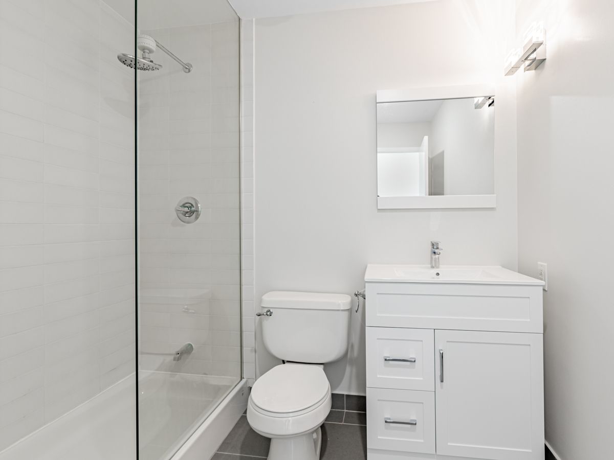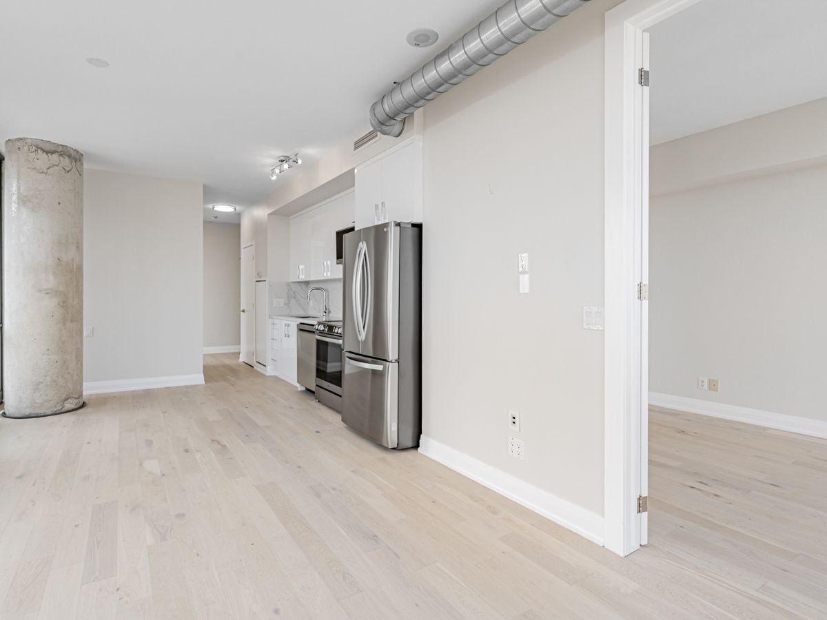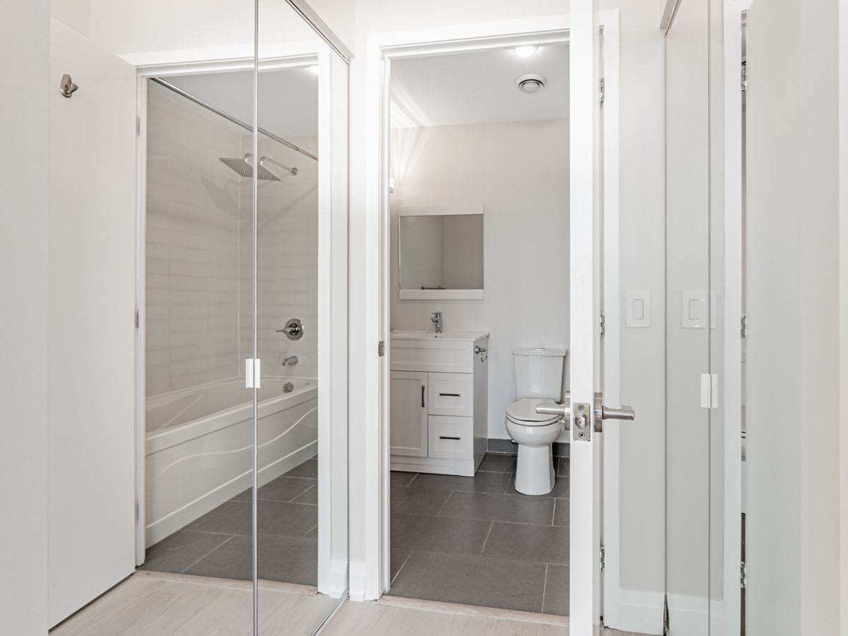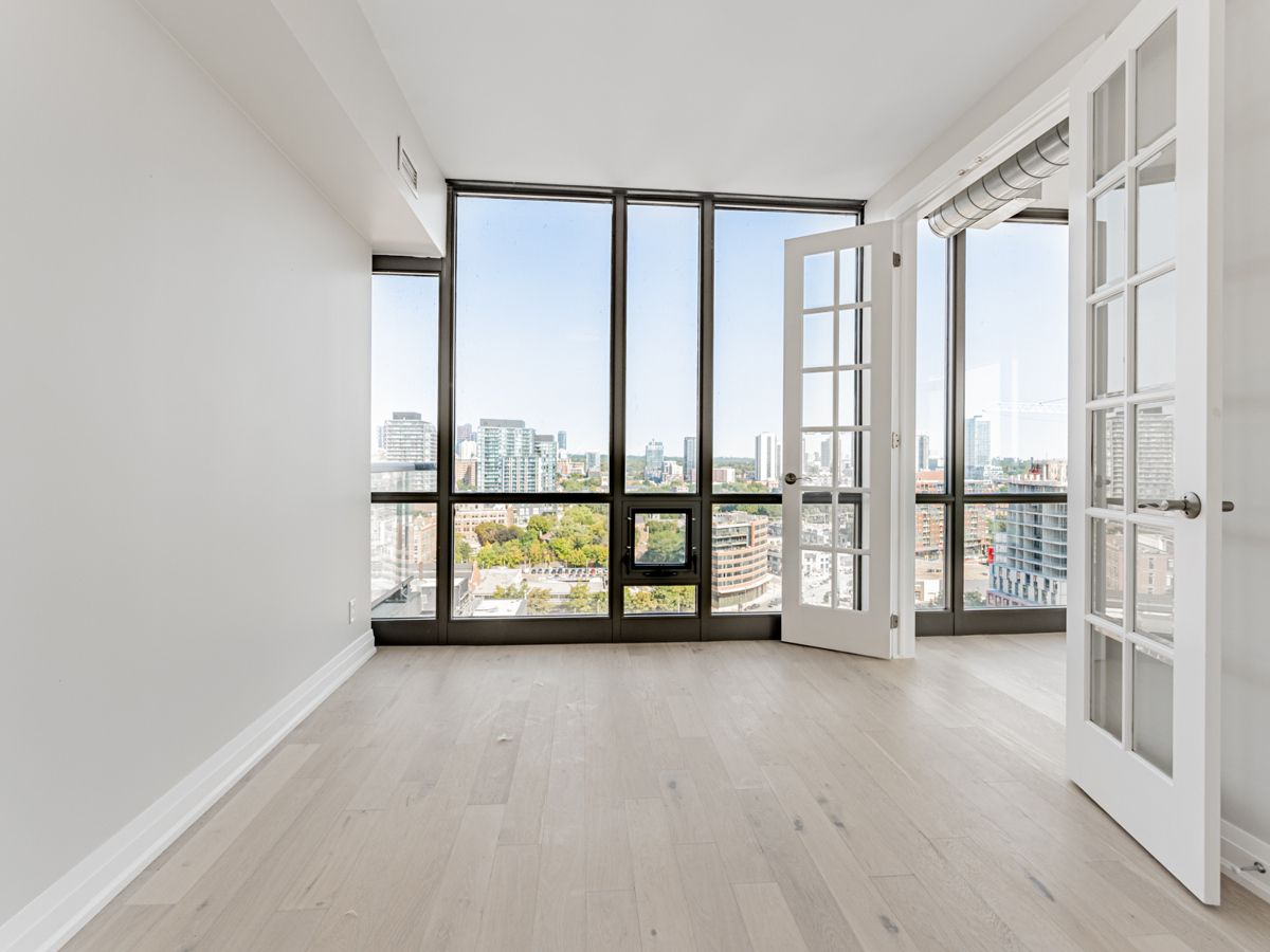 • Bright unit with floor-to-ceiling windows and city skyline views.