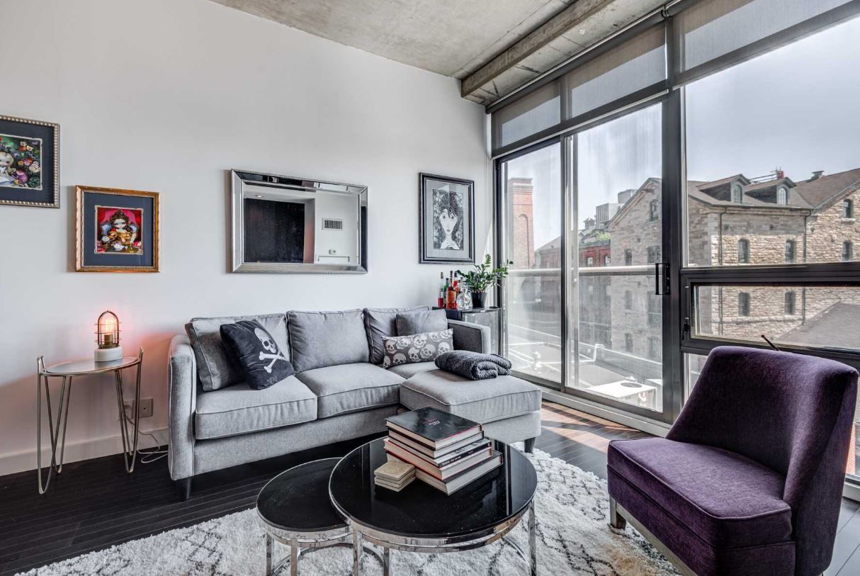 Stunning loft style 1-bedroom plus den with over 750 sq. Ft. Of upgraded living space with high ceilings, hardwood floors, and granite countertops. The kitchen features a large island, perfect for cooking or casual dining, and top-of-the-line stainless steel appliances. Enjoy an enviable south-facing view directly into the distillery district, known for its charming victorian architecture and cobblestone streets. Step outside and find yourself in one of toronto's most vibrant and sought-after neighbourhoods. The distillery district offers a pedestrian-only area filled with art galleries, boutique shops, trendy restaurants, and lively bars. Whether you're exploring local art, enjoying a meal at an upscale eatery, or relaxing in one of the many cafes, everything you need is right at your doorstep. This rare unit provides the perfect combination of modern comfort and a dynamic cultural scene, all in one of the best locations in the city. Dont miss out on this exceptional opportunity!