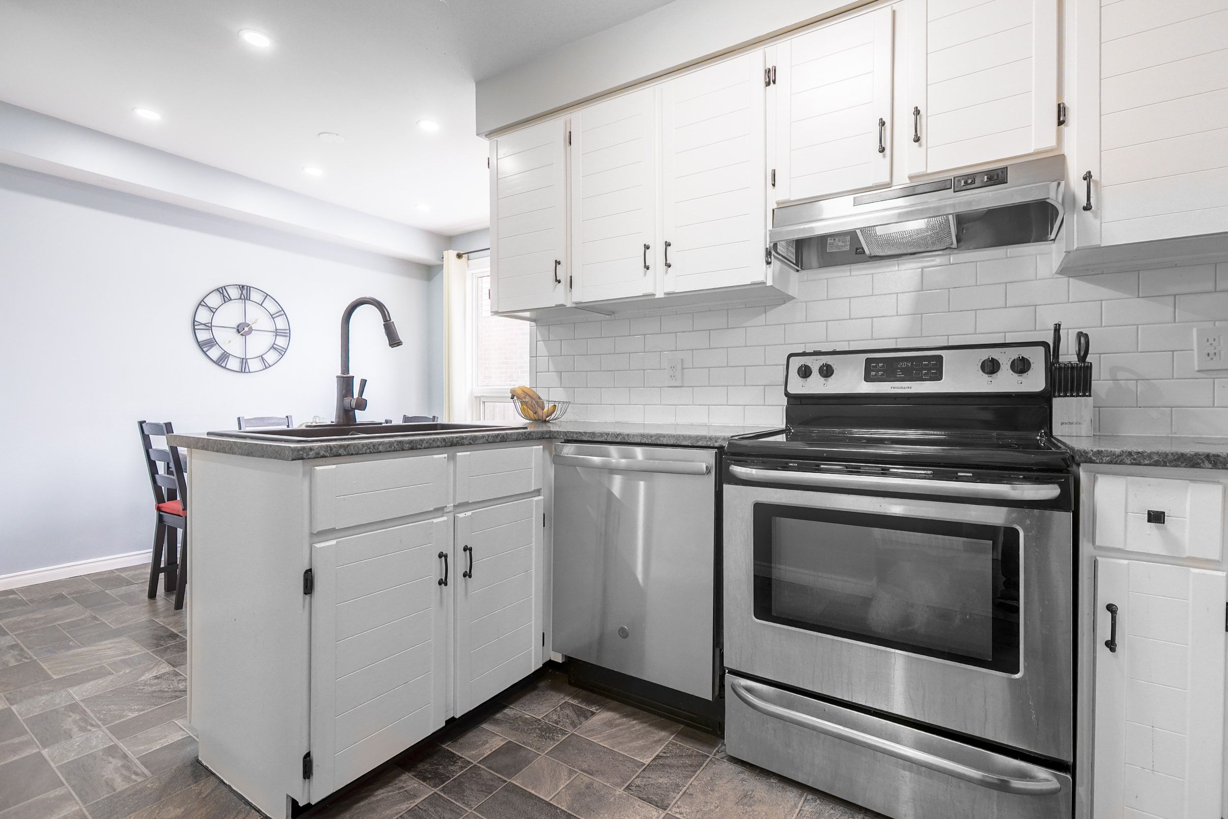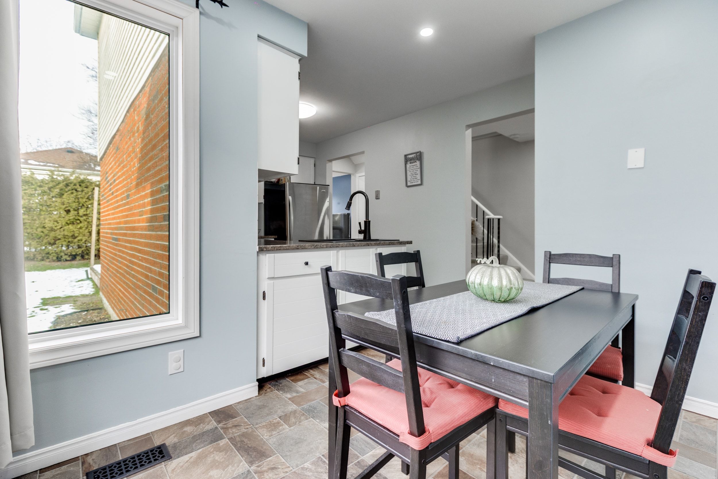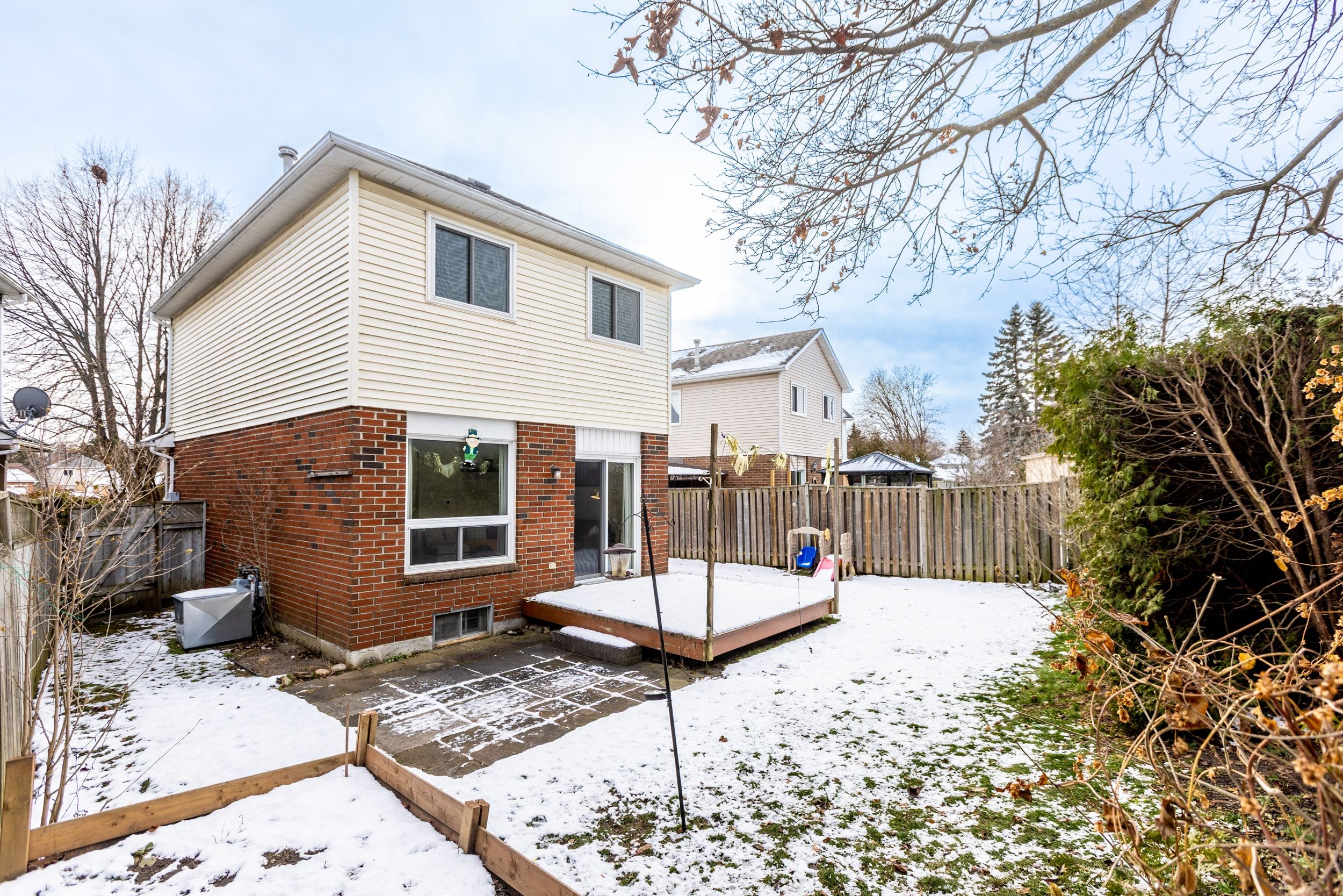 Welcome to this beautifully updated 3-bedroom, 2-bath family home tucked away on a quiet court in the heart of courtice. Enjoy a bright, renovated eat-in kitchen and modern laminate flooring throughout. The spacious l-shaped backyard offers exceptional privacy and a large deck off the family room, perfect for relaxing or entertaining. Upstairs features three generous bedrooms and a sun-filled bathroom with a skylight. The freshly finished basement includes a 3-piece bathroom for added convenience. Ideally located close to the 401, 418, 407, and just a short walk to the new trulls rd plaza with all amenities. A perfect home for families looking for comfort and convenience. New roof and furnace 2024. Hot water tank is owned.