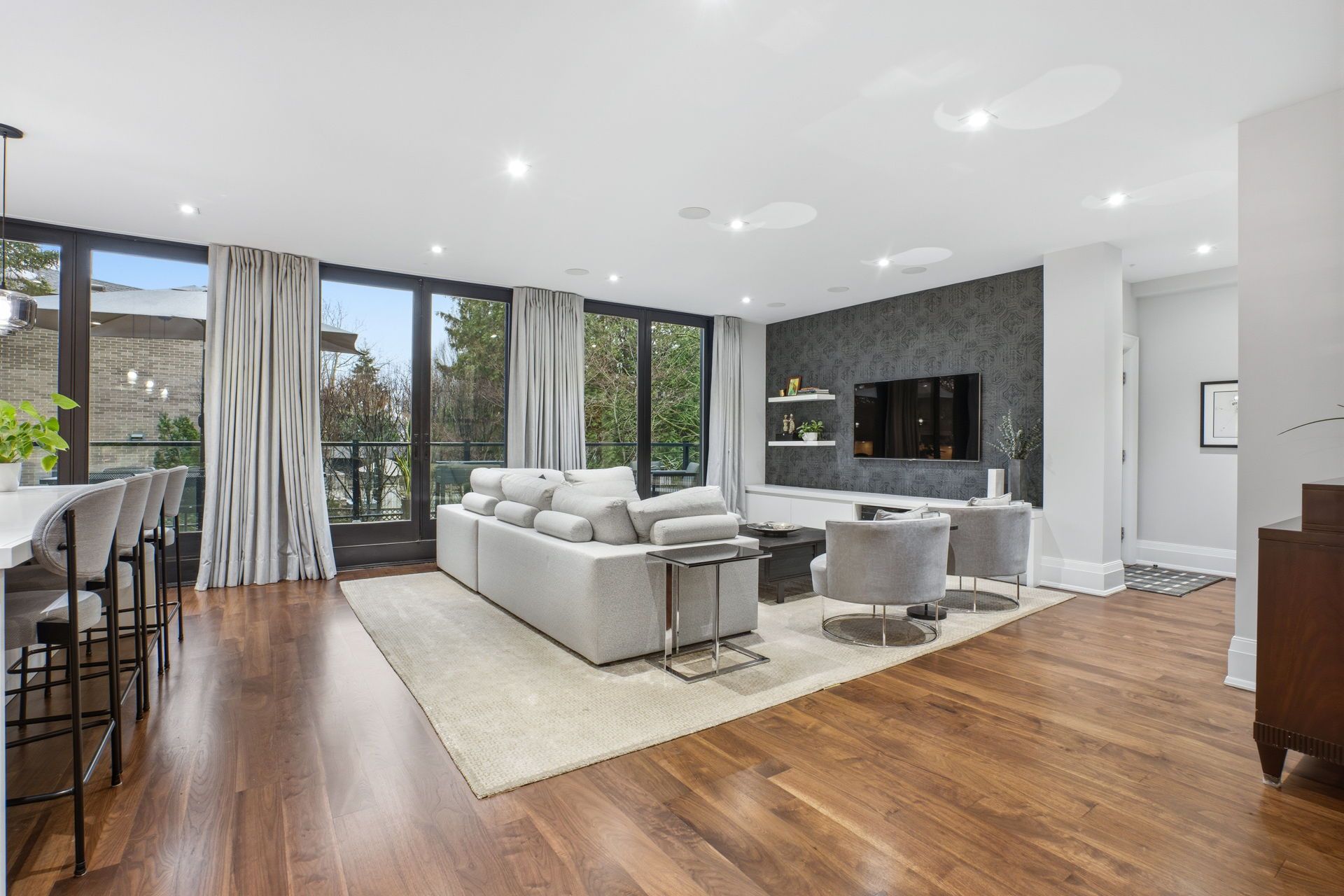 Welcome to this beautifully reimagined family home in the exclusive enclave of governor's bridge, where timeless design meets modern luxury. Thoughtfully redesigned by a toronto-based interior design firm, this exceptional residence offers a rare opportunity to enjoy turnkey living in a quiet, nature-connected neighbourhood just minutes to the city. The open-concept main floor is designed for both everyday living and entertaining, featuring seamless walnut hardwood flooring, a stunning marble-clad fireplace, and a fully renovated chef's kitchen with premium appliances, custom cabinetry, and a generous island. Walk out to a new composite deck with glass railings and gas line, perfect for effortless indoor-outdoor living. This home offers 3+1 spacious bedrooms and 4 beautifully appointed bathrooms, including a serene primary retreat with a spa-inspired ensuite featuring heated floors, a rain shower, and custom finishes. The second floor also boasts an expansive private terrace, w/speaker system, creating a unique outdoor escape rarely found in the area. The bright walkout lower level provides incredible flexibility with an additional bedroom, recreation space, and direct access to the private backyard. Extensively renovated with quality craftsmanship throughout, including updated systems, premium windows and doors, integrated lighting, and smart home features, this home is truly move-in ready. Ideally located steps to ravine trails and connected to rosedale via the governor's bridge, with easy access to bayview avenue, top schools, parks, shops, and downtown via the bayview extension. A rare offering that combines lifestyle, location, and design in one exceptional home.
