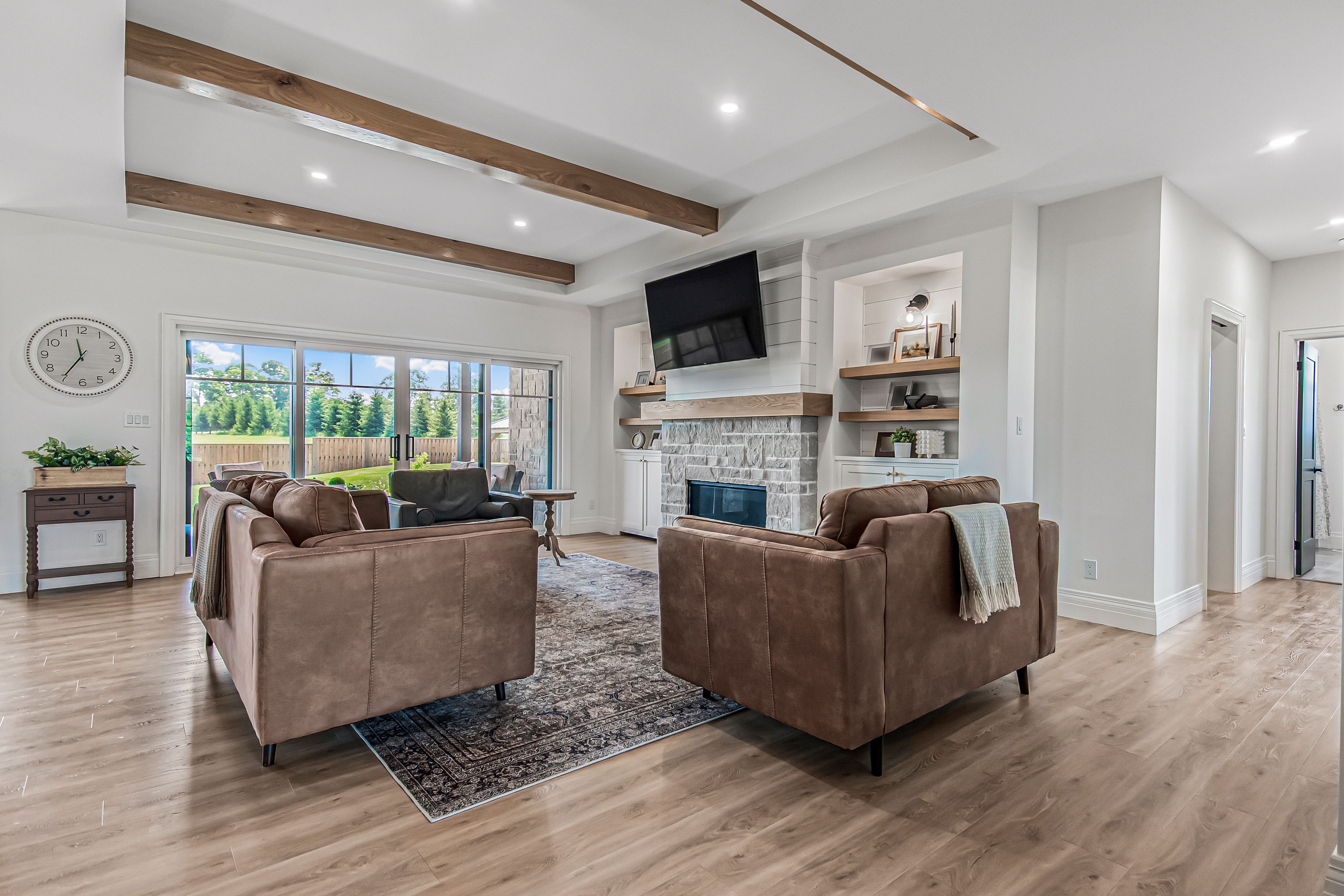 Some homes check a few boxes, this one checks them all. With over 4,000 sq ft of finished living space across the main floor and lower level, this custom-built bungalow offers a level of space and flexibility rarely found. Ideal for families who want room to live, work, entertain, and grow. Set in allenford's sought-after nickason drive subdivision, it blends a peaceful country feel with unbeatable central convenience. Just 15 mins to southampton, 20 to owen sound & port elgin, 40 to bruce power. Curb appeal stands out with full shouldice stone exterior, stamped concrete porch, triple-wide driveway, modern entry and oversized 2. 5-car garage. Inside, the open-concept layout is refined and functional. The kitchen is a showpiece with quartz counters, contrasting white and white oak cabinetry, brick-style backsplash, black stainless appliances and farmhouse sink overlooking the yard. A walk-in butler's pantry adds bonus storage and prep space, with a stylish 2-pc bath tucked nearby. The living room features a propane fireplace with stone surround, custom built-ins and glass doors to the backyard. The primary suite offers a spa style ensuite and walk-in closet with laundry nearby. Two additional bedrooms share a beautifully finished 4-pc bath. The fully finished lower level impresses with 9-ft ceilings, in-floor heat, custom media wall and space for a golf simulator, gym or play zone, plus a 4th bedroom, office/guest room and designer 3-pc bath. Outside, relax on the covered 16' x 8' patio or soak in the hot tub under the gazebo. The fenced yard backs on to open space for privacy and peaceful views. A rare, best-of-the-best offering - homes like this don't come along often.