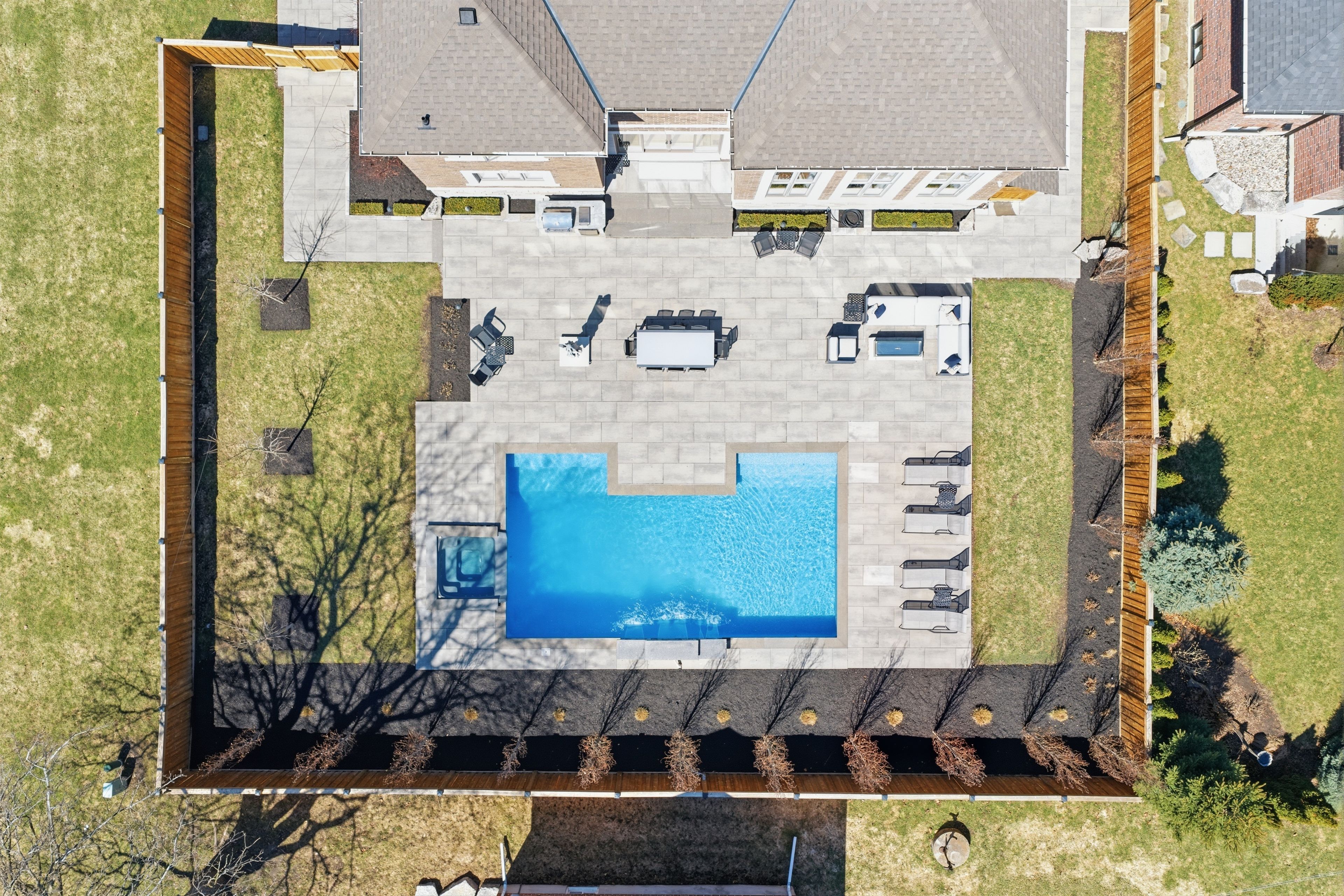 • Backyard oasis featuring a saltwater pool, spa, and outdoor kitchen.