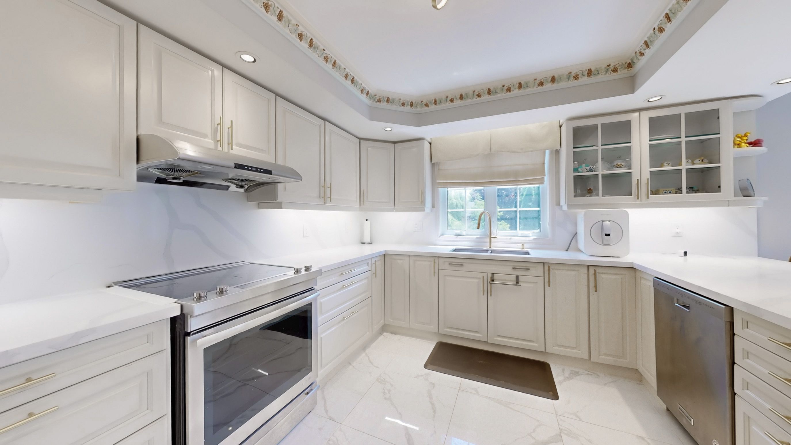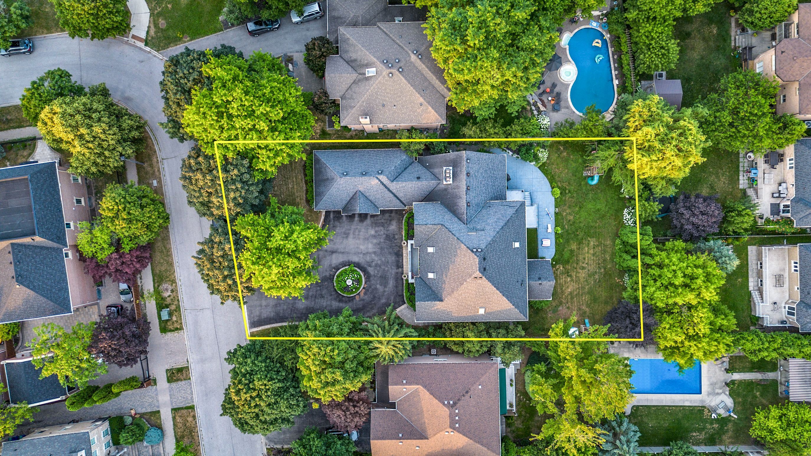 Wow, a true masterpiece & showcase** renovated over 8,000 sq. Ft. Living spaces sprawling luxe hm. Nestled on prem. 90x164 ft. Lot next to park in prestigious mill pond estates community**perfect layout with independent upper in-law suite w/kitchen, 4-pc bath & walkin closet**decent & bright living room w/crown moulding over looking frontyard fountain**stuning dining room w/ french doors**chef inspired gourmet kitchen w/top of line appliances including quartz counter top, central island, coffee table, custom-made cabinetry & double sink over looking sunny backyard**bright breakfast area w/w/o to deck & sunroom over looking oasis backyard**magnificent spacious family room w/marble gas fireplace over looking views of oasis backyard **spacious office w/large window**5 spacious & bright 5 bdrms on 2nd floor, primary bdrm /w/i closets plus 7-pc en-suite**3 bdrm w/3-pc ensuites & 1 bdrm with 4-pc bath**finished bsmt w/8'3" ceiling**recreation rm & excercise rm for entertainment**nunny bdrm w/4 pc bath w/w/i closet**big formal storage room**professional landscaped private treed backyards w/ patio**huge sunny deck w/sunroom**3 garages w/interlock circle driveway w/amble 15 parkings**close schools, comm. Ctr & pool, golf courts & country club & all amenities, all top of the line finishes & fixtures, additionally 96x164 ft. Lot could be severed into 2 lots to build new homes potentially, true gem in mill pond estates club, never to be missed!