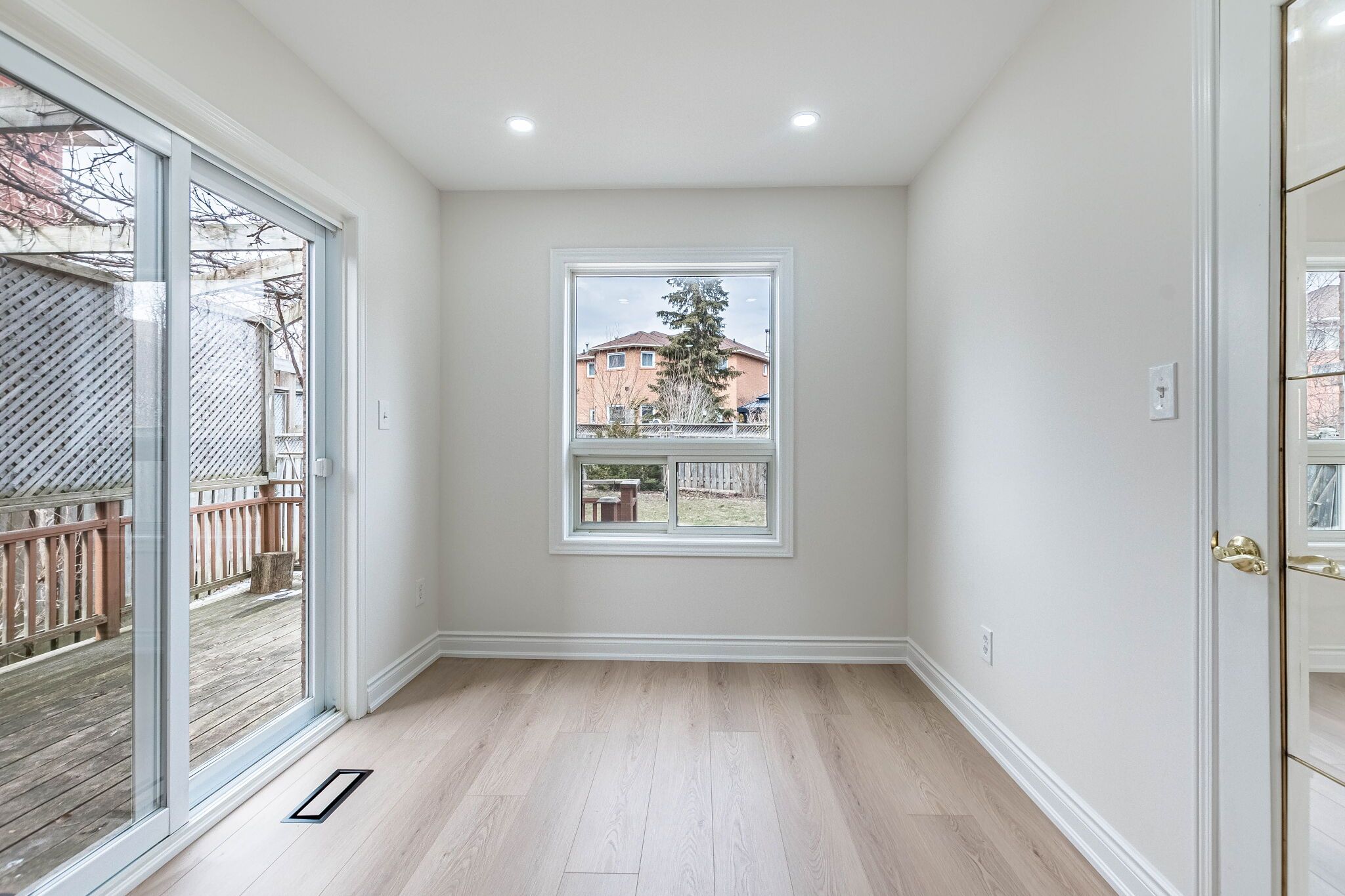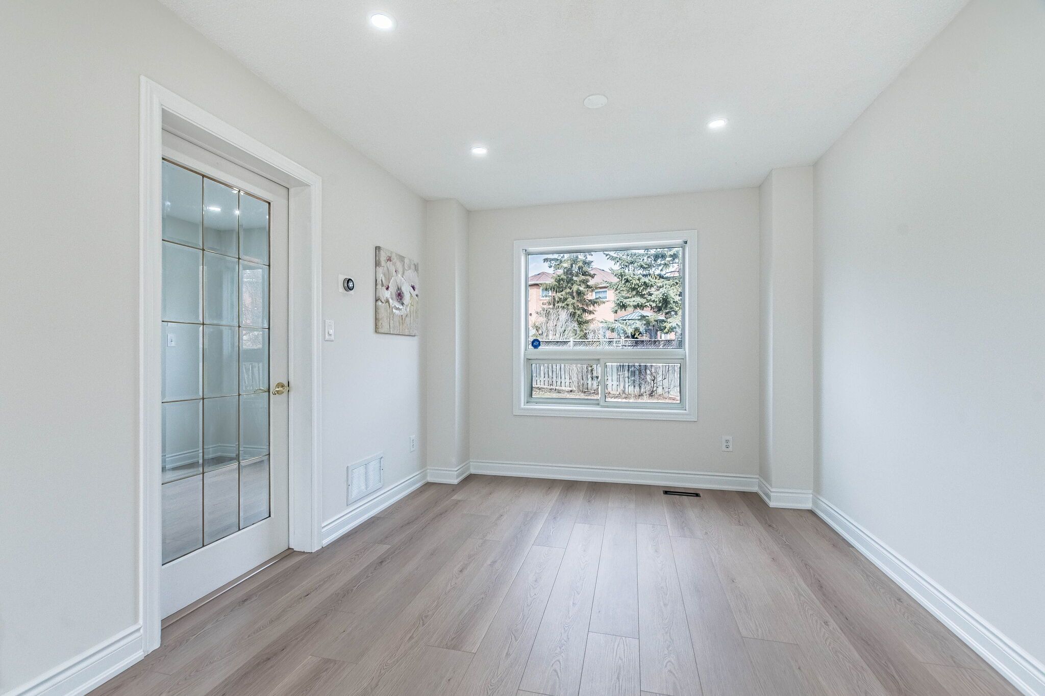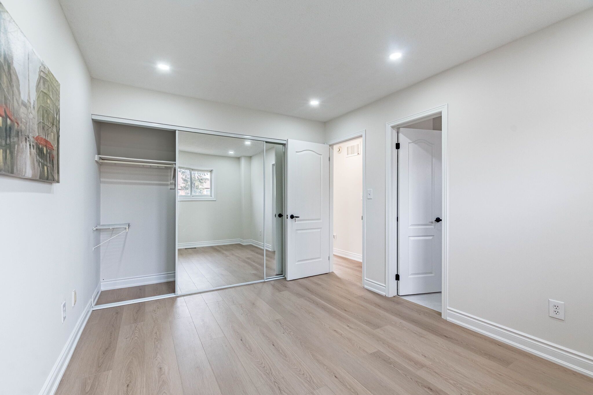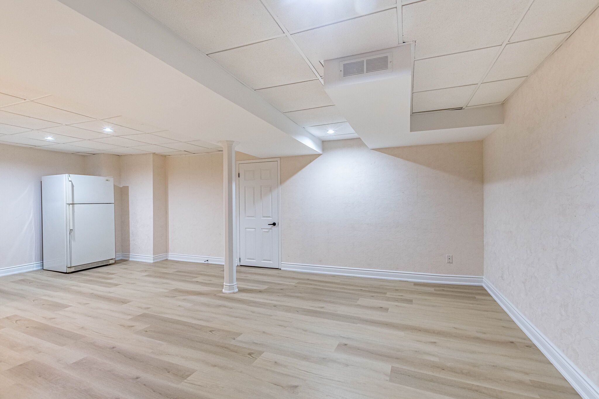 Quiet cul-de-sac location !! Newly renovated interior !! Beautiful detached home nestled on a quiet cul-de-sac in the highly desirable professors lake community. Situated on a large pie-shaped lot with an impressive 55' rear width and an east facing main entrance door, this property offers exceptional privacy with no through traffic and a peaceful setting. The home is bright and welcoming, filled with natural light throughout the day. The interior has been extensively renovated with modern finishes. The main and second floors feature new laminate flooring throughout, complemented by pot lights and a fresh coat of paint across the entire home. The kitchen has been updated with quartz countertops and newer appliances (2022), creating a stylish and functional space for everyday living and entertaining. The second floor includes generously sized bedrooms and a newly renovated full bathroom. The finished basement provides additional living space with a spacious recreation room, vinyl flooring, and a newer 4-piece bathroom-perfect for guests, extended family, or a flexible entertainment area. Outside, enjoy a private backyard with a wooden deck, perfect for outdoor use and entertaining. The home also features a single-car garage with convenient loft storage, plus a two-car driveway for additional parking. Roof replaced in 2022. Side yard offers potential for a separate basement entrance. Large pie-shaped lot !! Finished basement with 4 pc bathroom !! 3 parking spaces !! Steps to professors lake, beach, schools, parks, rec centre, transit & more !!