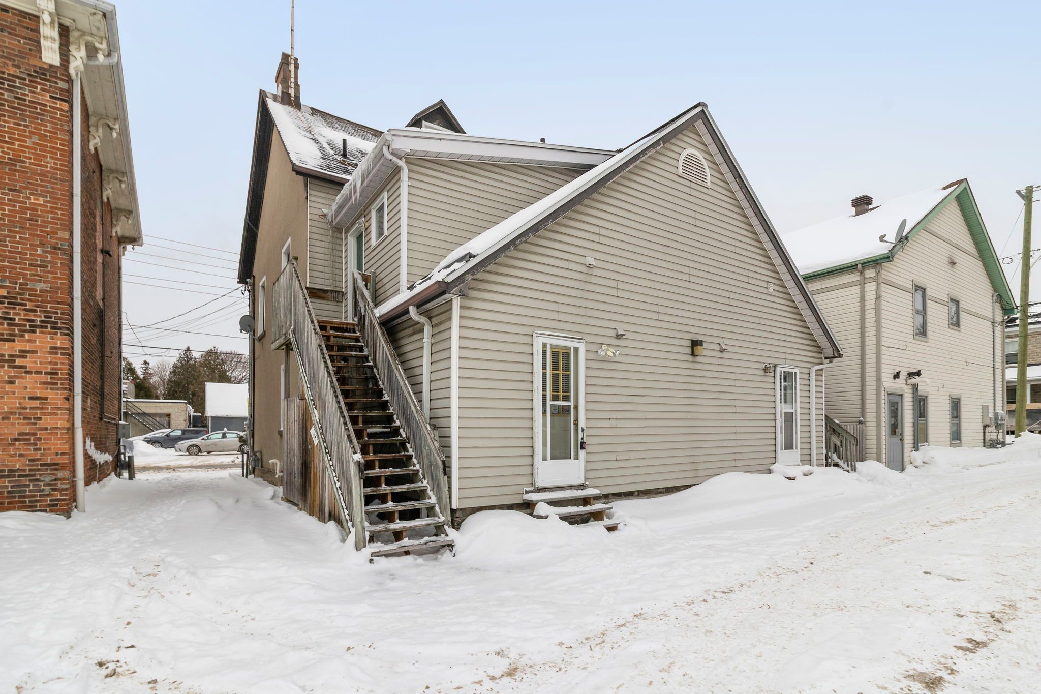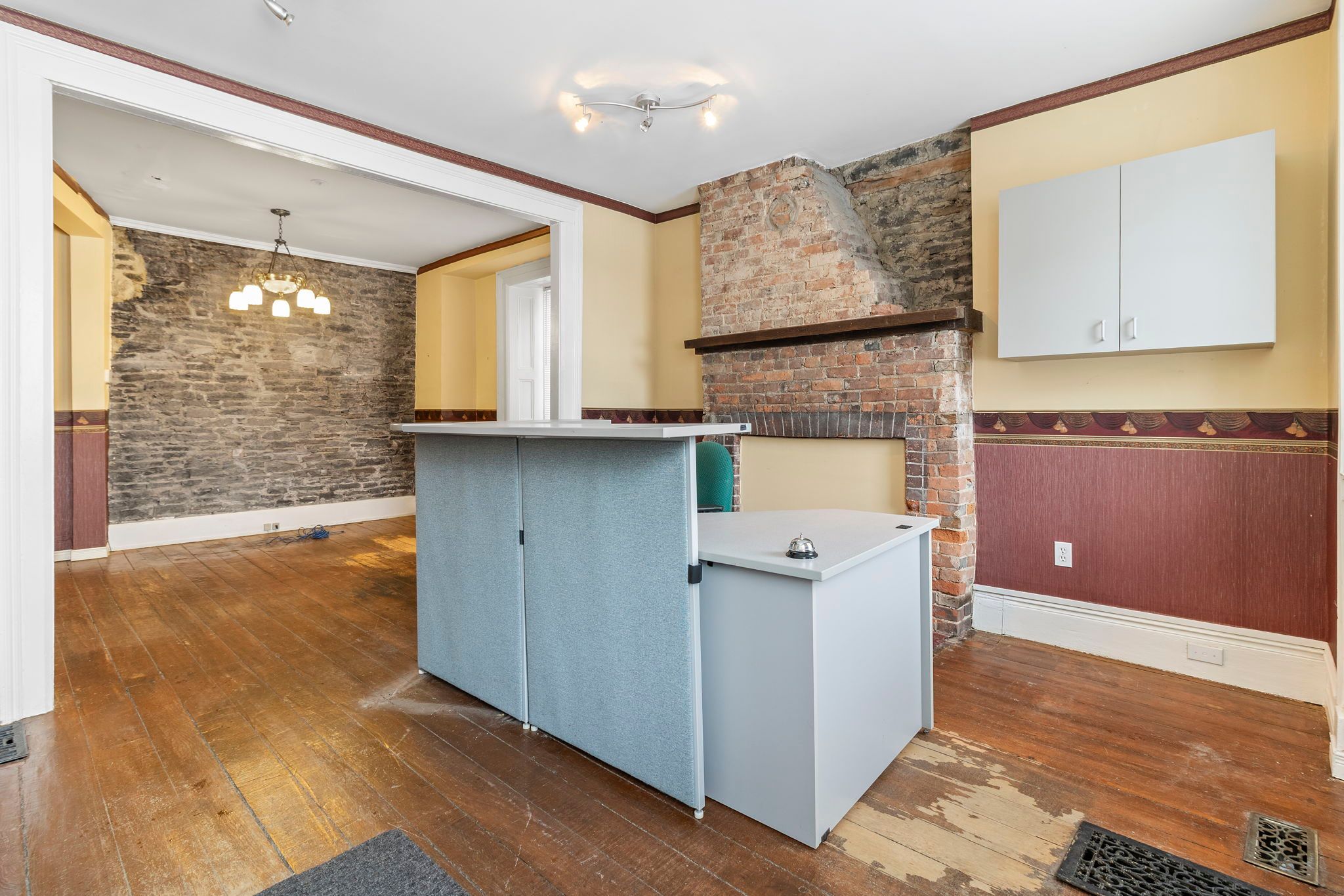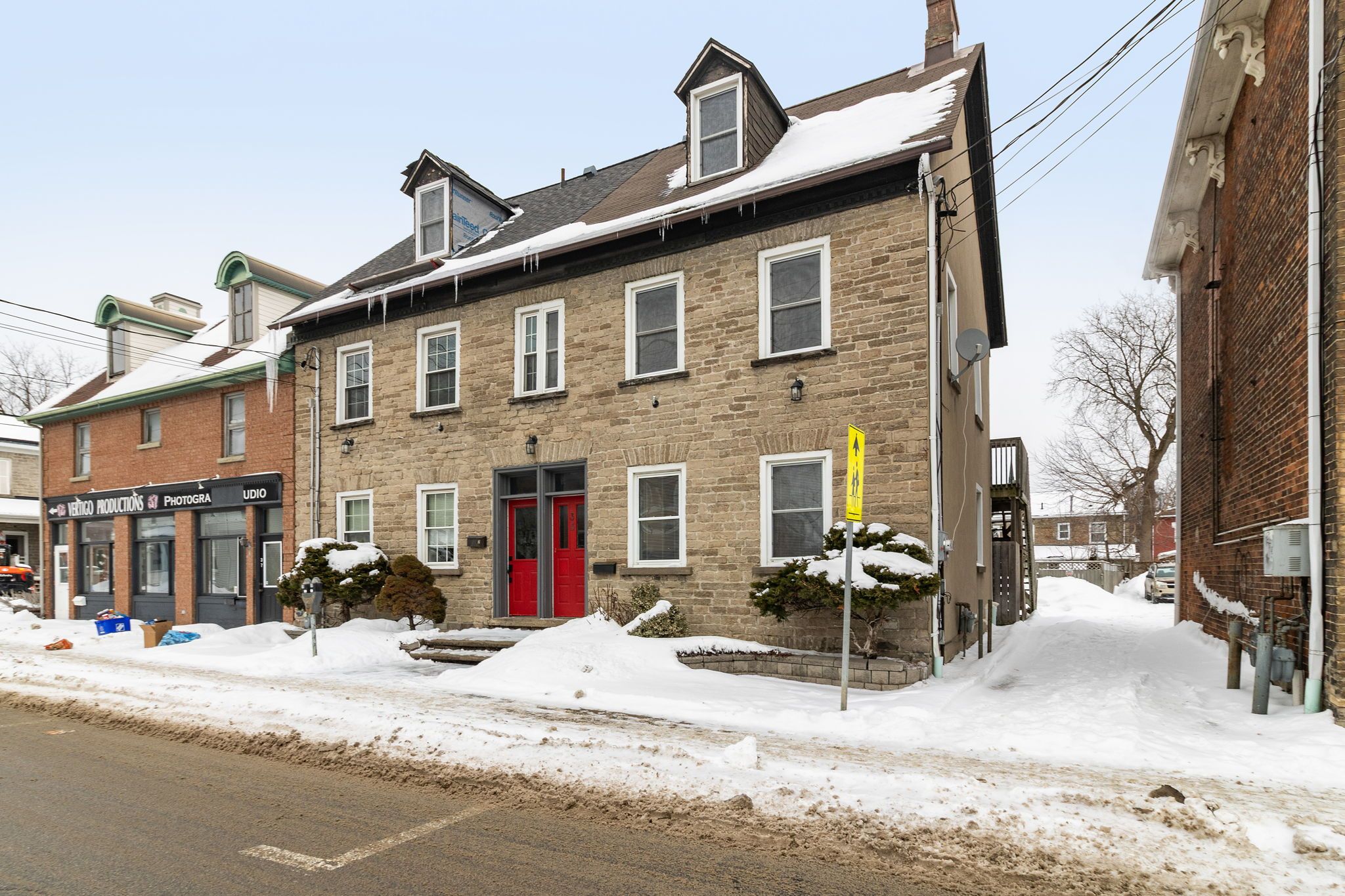A rare chance to own a character-filled mixed-use property in the heart of downtown brockville, offering immediate residential income with vacant space ready for your vision. The main-floor unit features exposed stone and brick accents, a fireplace, and a two-piece bathroom, creating a warm and distinctive atmosphere ideal for professional services, boutique retail, studio space, or office use. The unit is currently connected to the adjoining unit at 35 perth street, providing flexibility for an expanded footprint if purchased together, or it can be closed off and operated independently. The upper floor is a tenanted, multi-level residential apartment, offering stable rental income. The unit includes a functional layout spread across two levels, with defined living areas, kitchen, bathroom, and bedroom spaces. The property also includes three parking spaces located in the lot behind the building, with rear access via church street. The laneway beside the building is owned, adding valuable access, servicing, and operational flexibility. An important feature in a downtown core setting. Located steps from shops, restaurants, services, and waterfront amenities, this property benefits from strong pedestrian exposure while maintaining the charm and permanence of brockville's historic core.