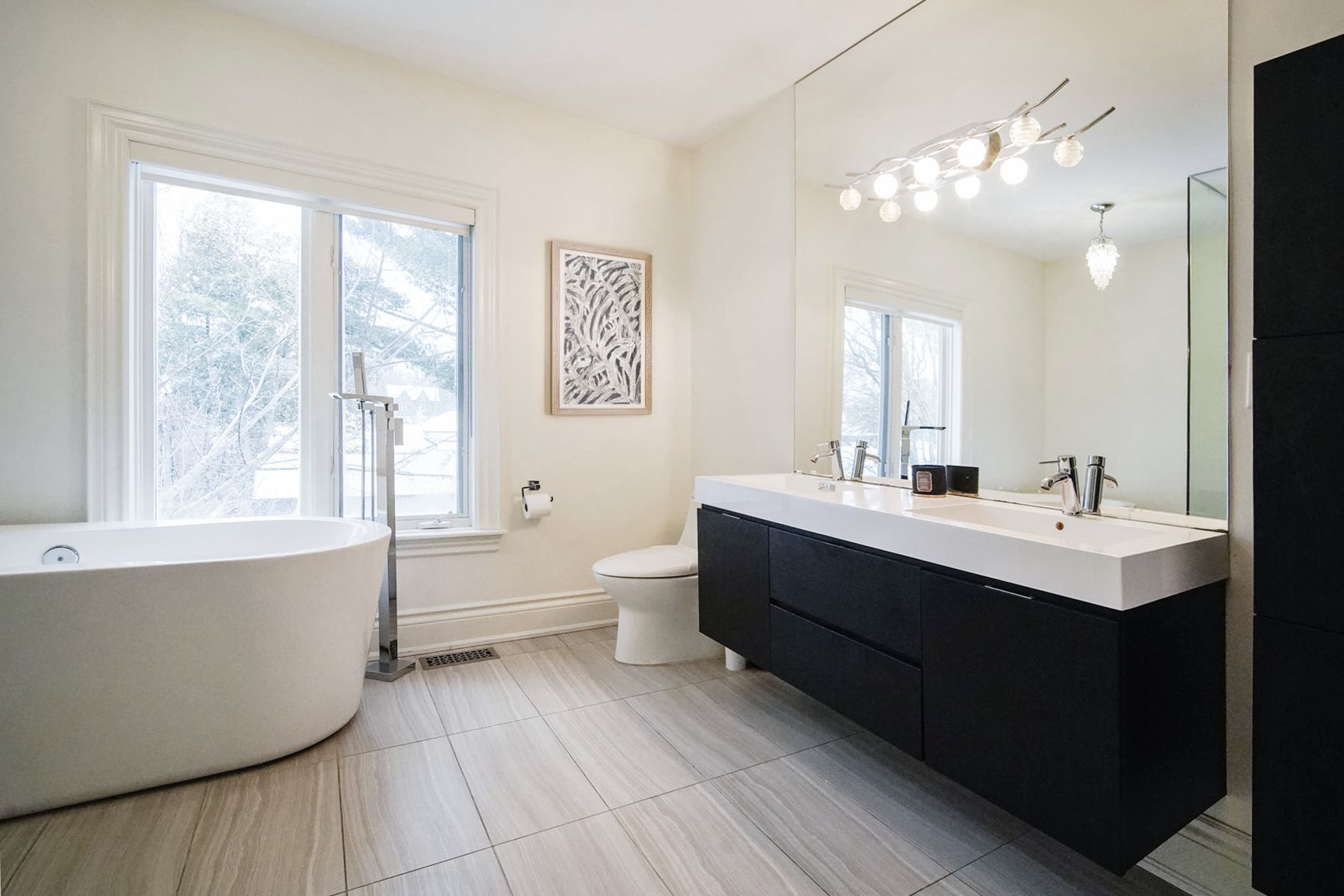 • Bright main floor with high ceilings, hardwood floors, and bay window.