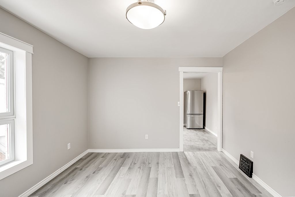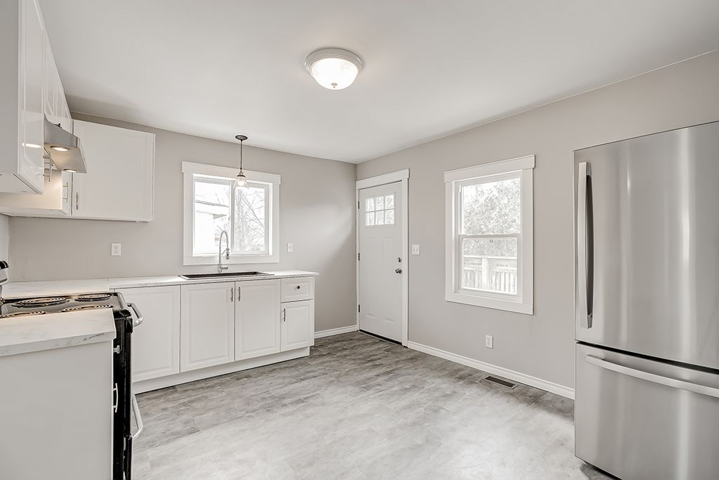 Welcome home! Beautiful 2 storey brick home converted into a duplex with a separate entrance! This completely renovated 2 bedroom upper unit boasts a light filled, spacious layout with updated windows, newer flooring, fresh paint, newer baseboards, trim and more! Beautiful eat-in kitchen with stainless steel appliances, updated cabinetry and access to large private deck. Large and bright living room with large windows. 2 spacious bedrooms and 4 pc main bath combined with in-suite laundry featuring a new washer + dryer! Carpet free throughout! 2 parking included. Close to parks, schools, public transit + amenities. Book your showing before its gone!