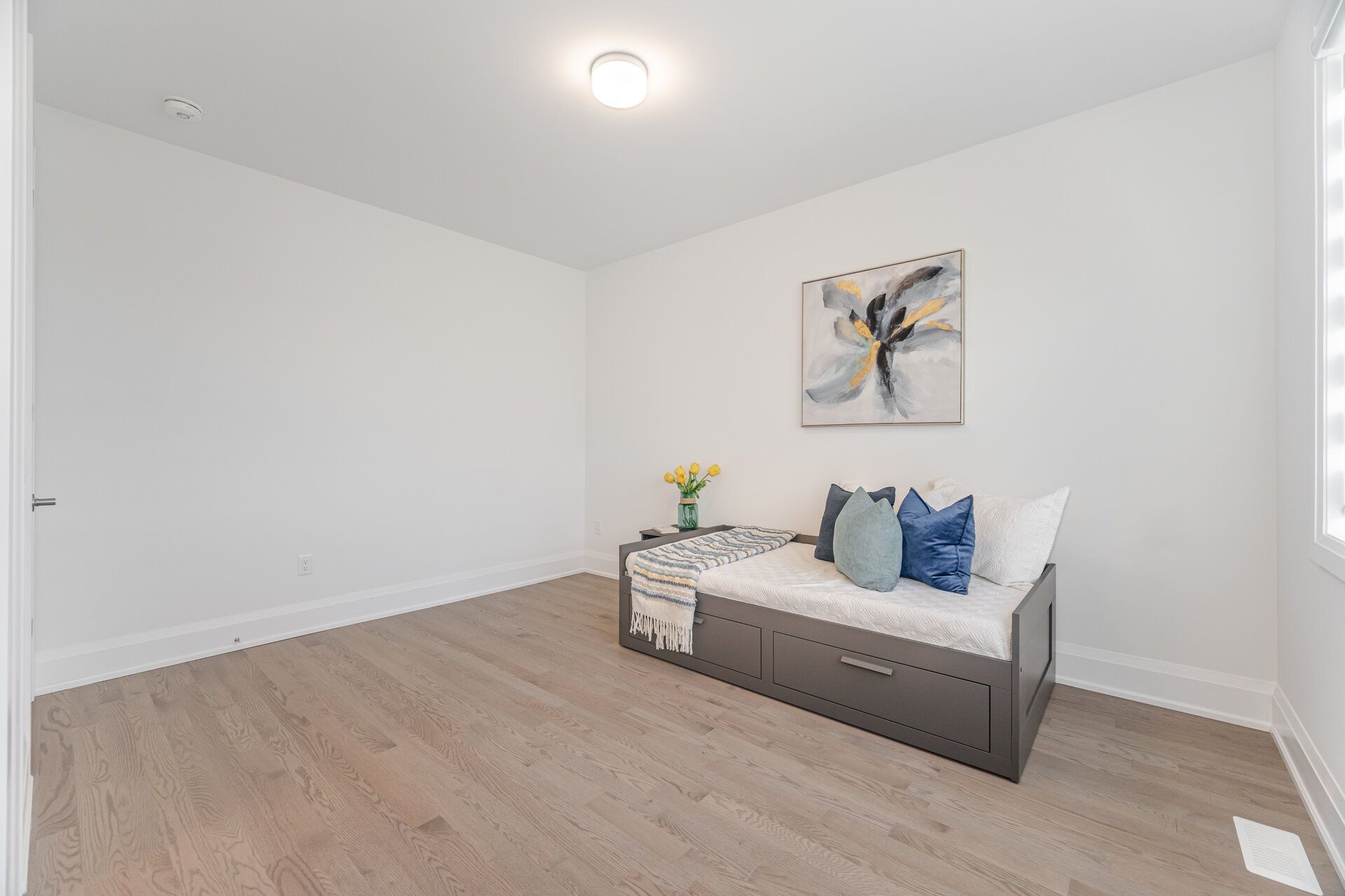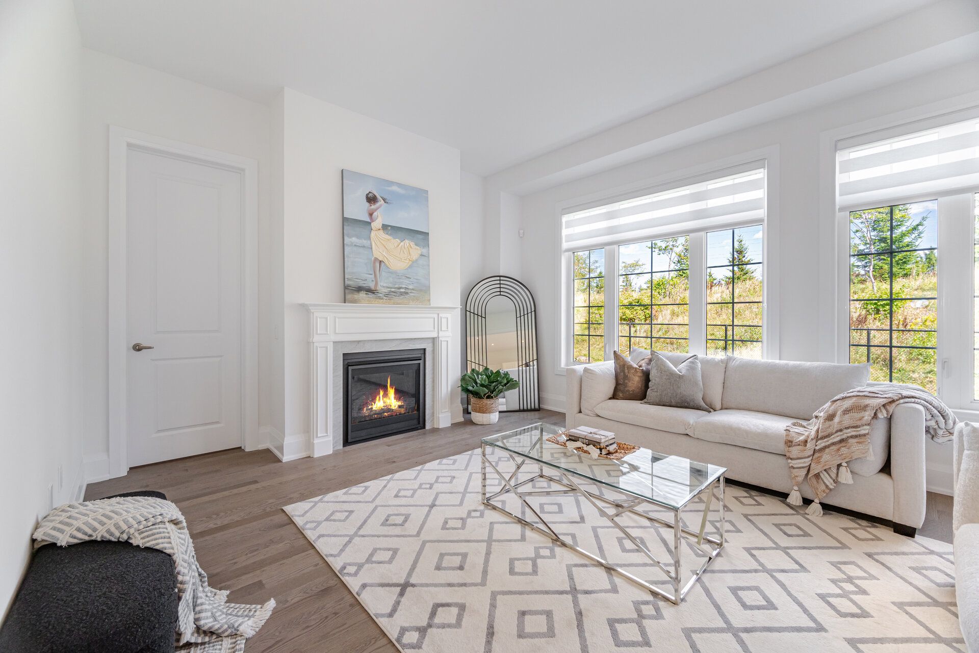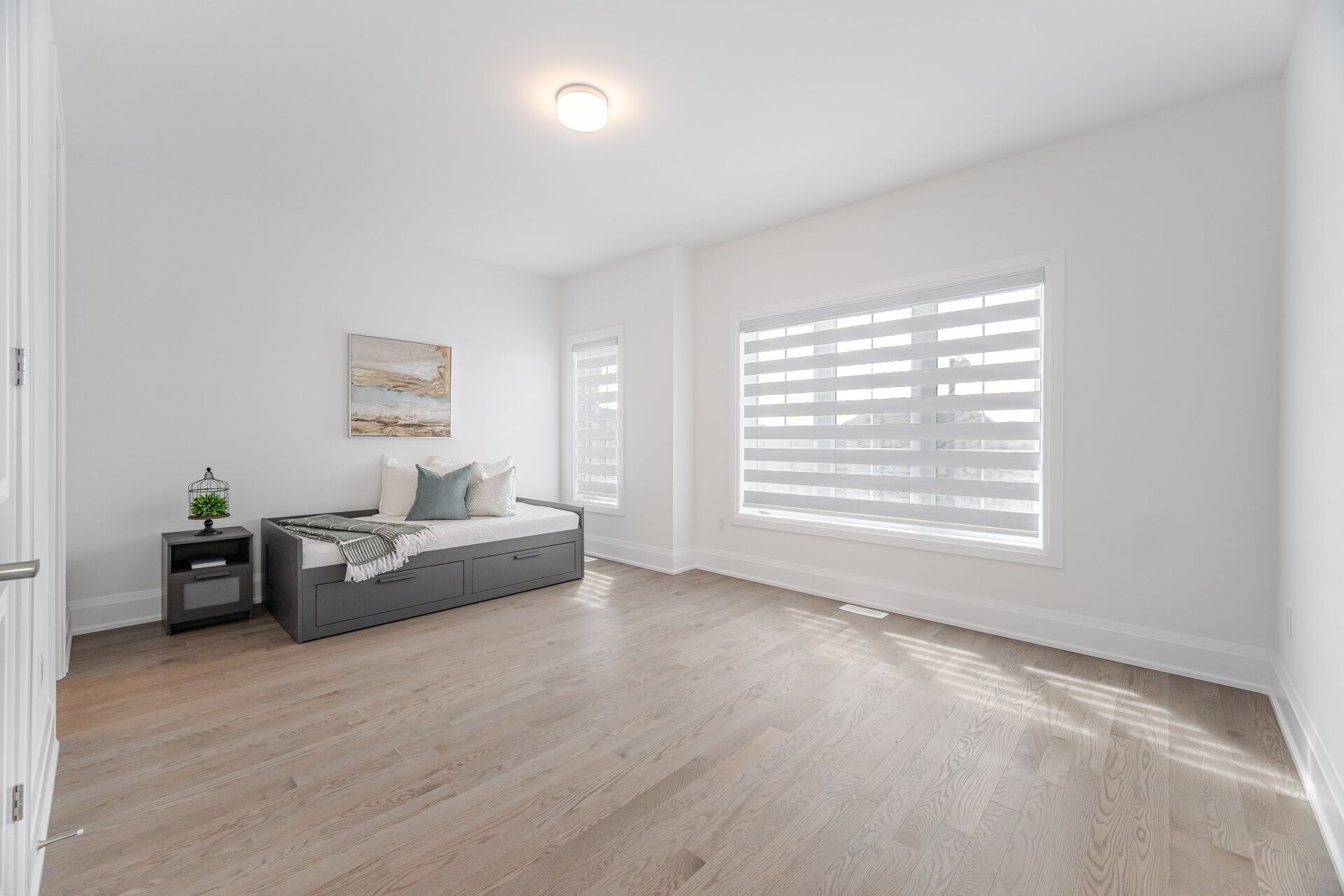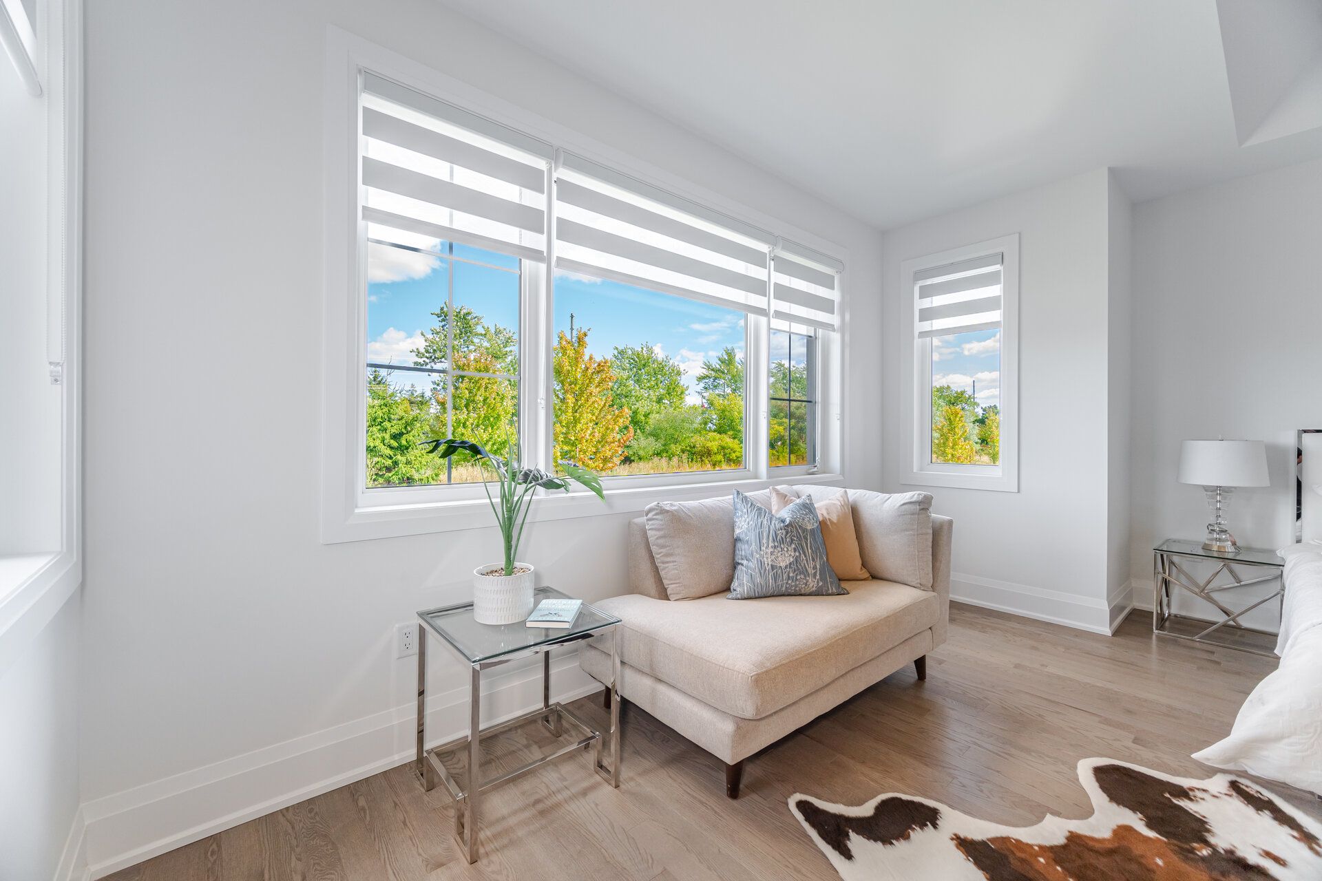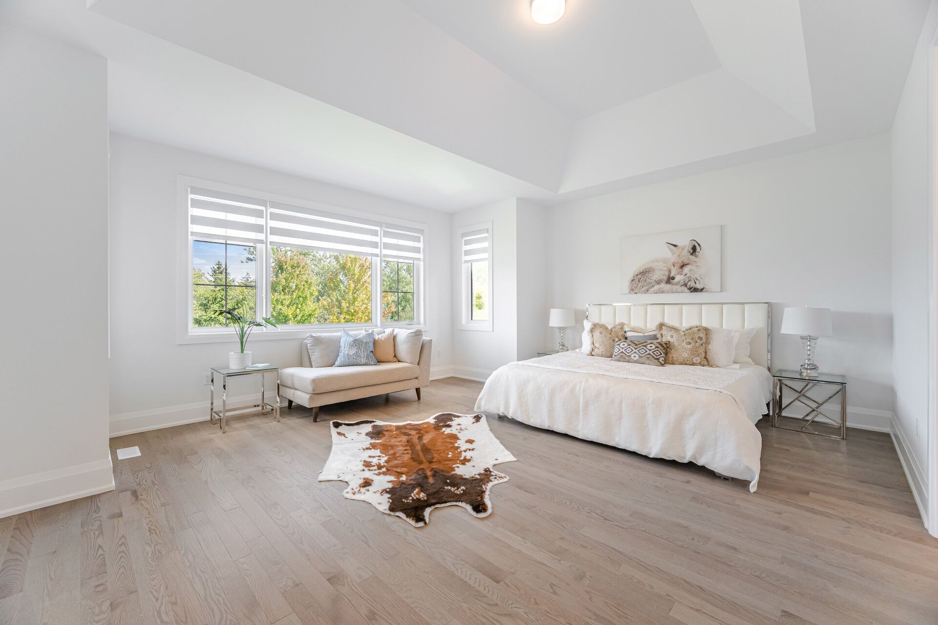 • Spacious open-concept living with 10-foot ceilings and hardwood flooring.