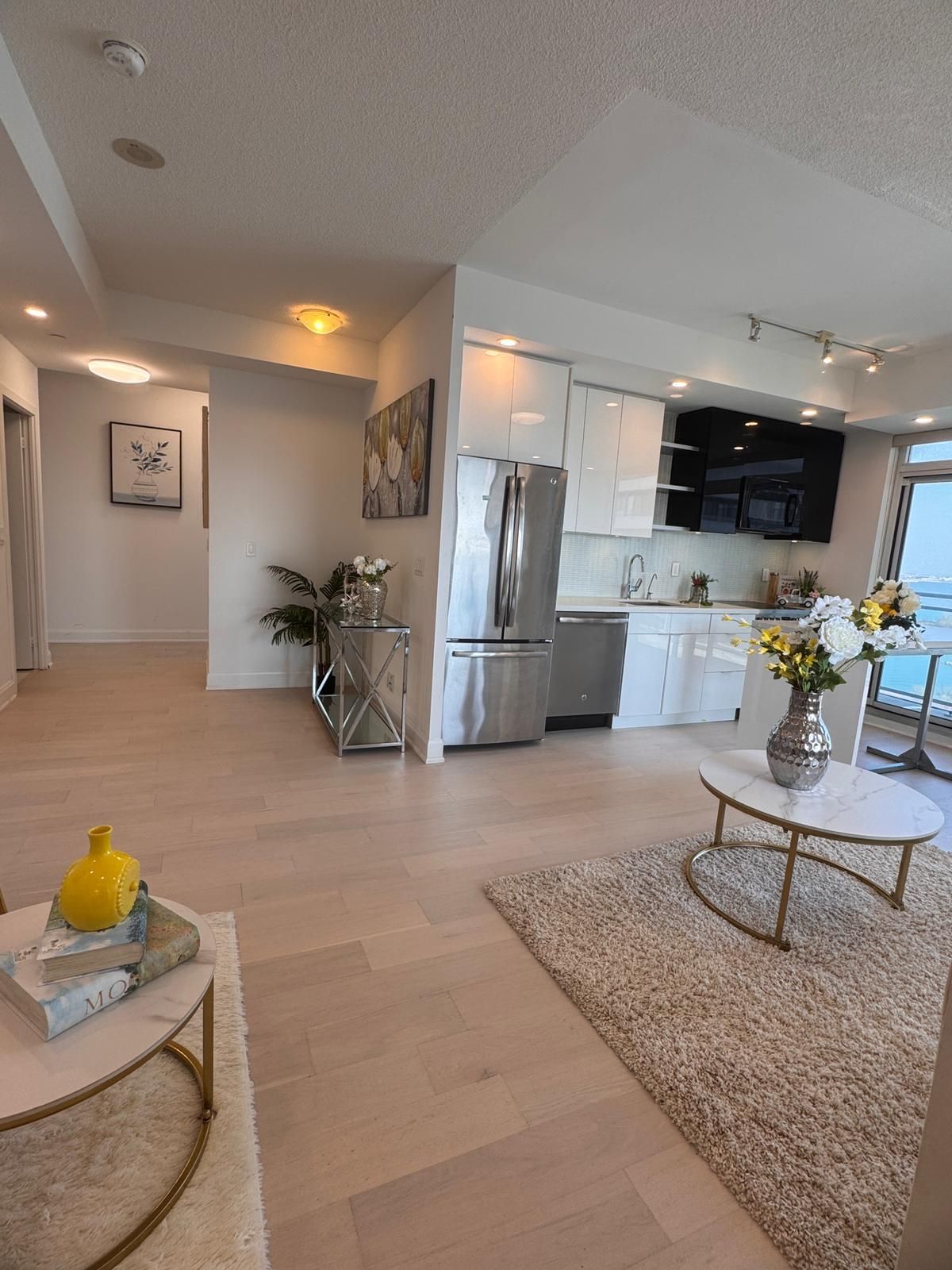 • Modern layout with floor-to-ceiling windows and a sleek kitchen.