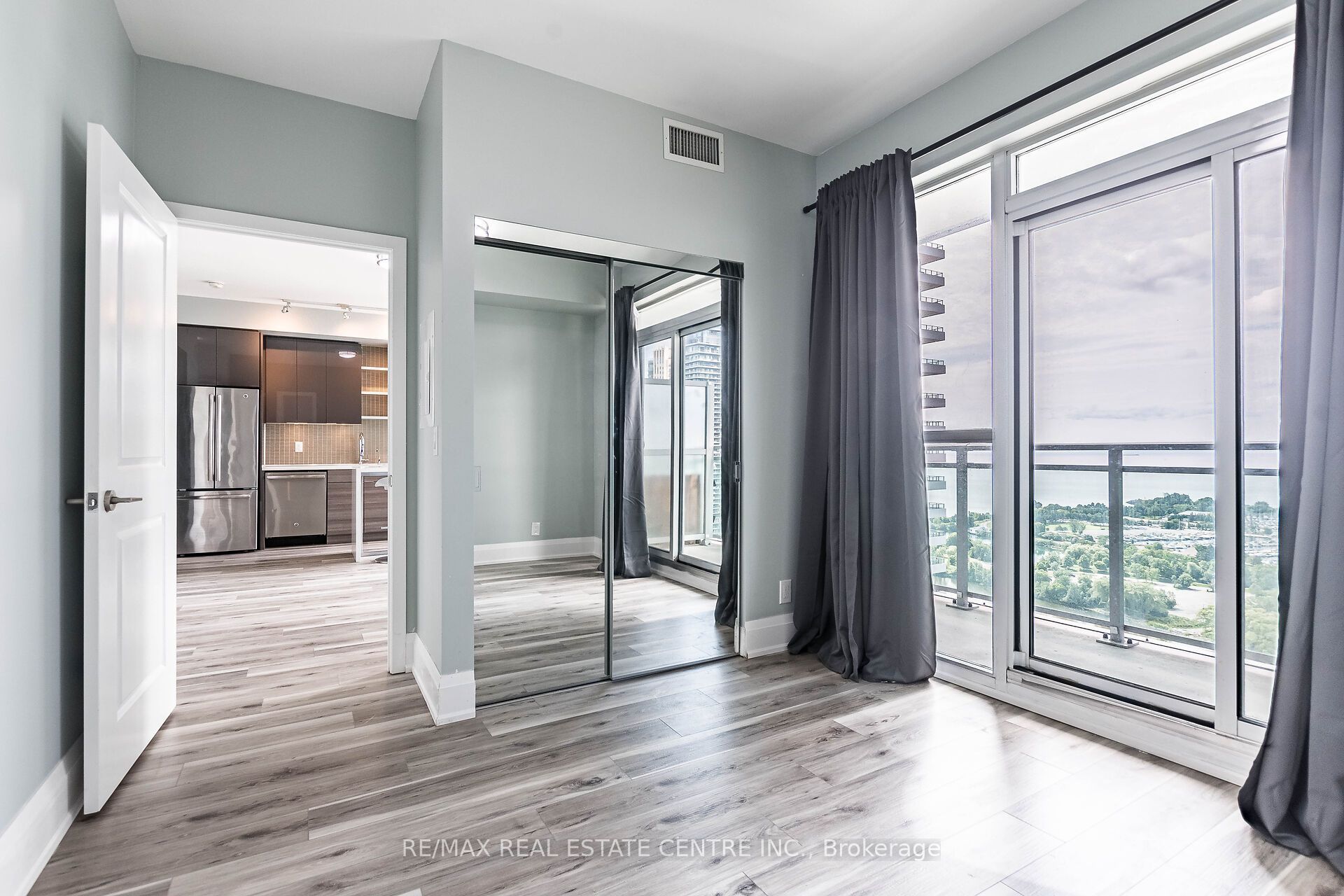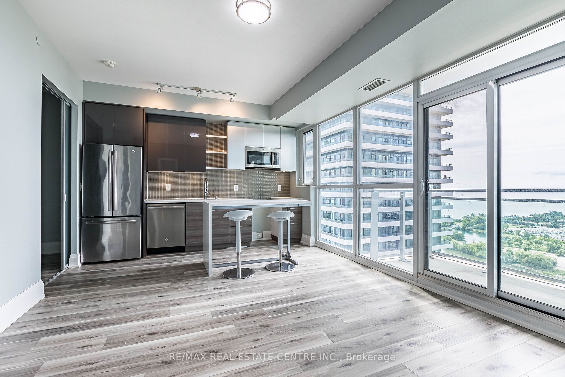 Condo in prestigious "jade water front " 858 s/f including 112 s/f open balcony. Stunning south west view of the lake and marina. Two good sized bedrooms, two full baths. Floor to ceiling glass windows. High 9 ft. Floor to ceiling windows. Newer vinyl flooring. Upgraded kitchen with moveable island. One parking spot and one locker included. Steps to humber bay shores. Ttc. Groceries. Restaurants and parks. Rented until may 11, 2026