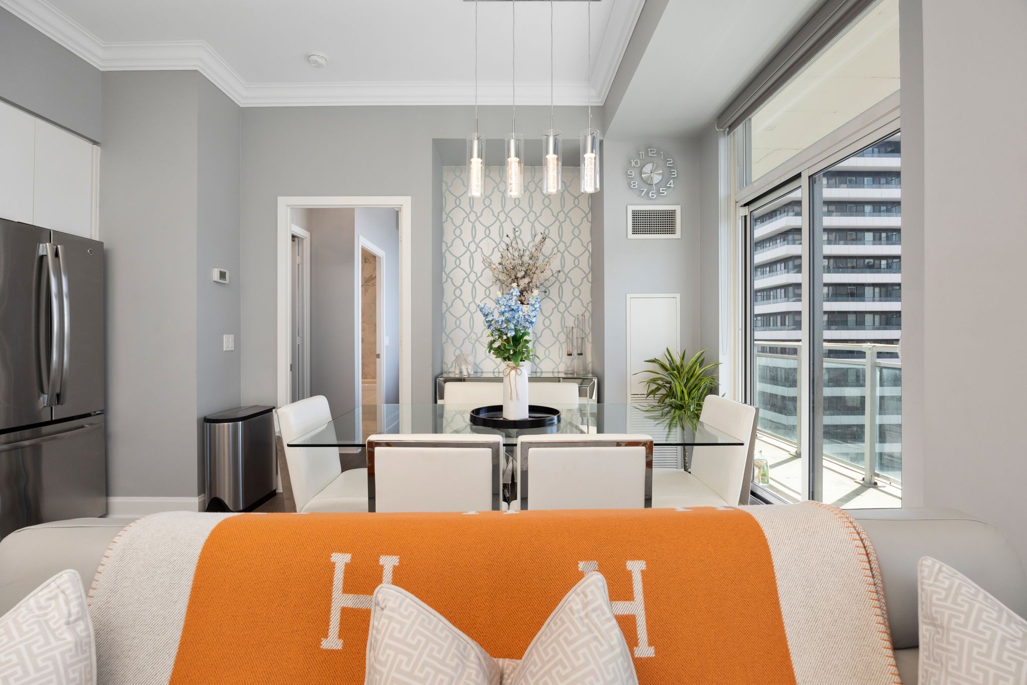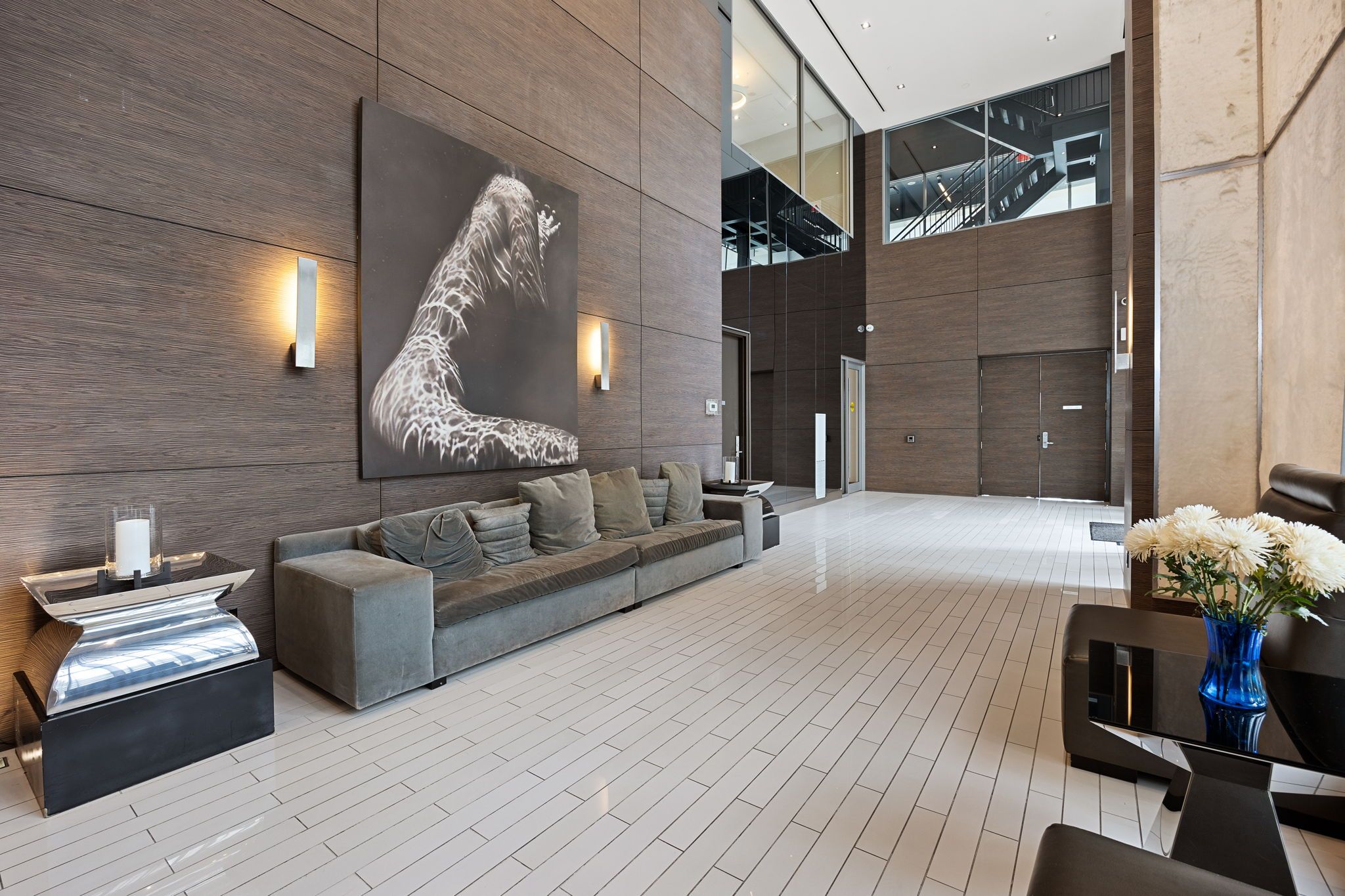 • Bright lower-penthouse suite with floor-to-ceiling windows and lake views.