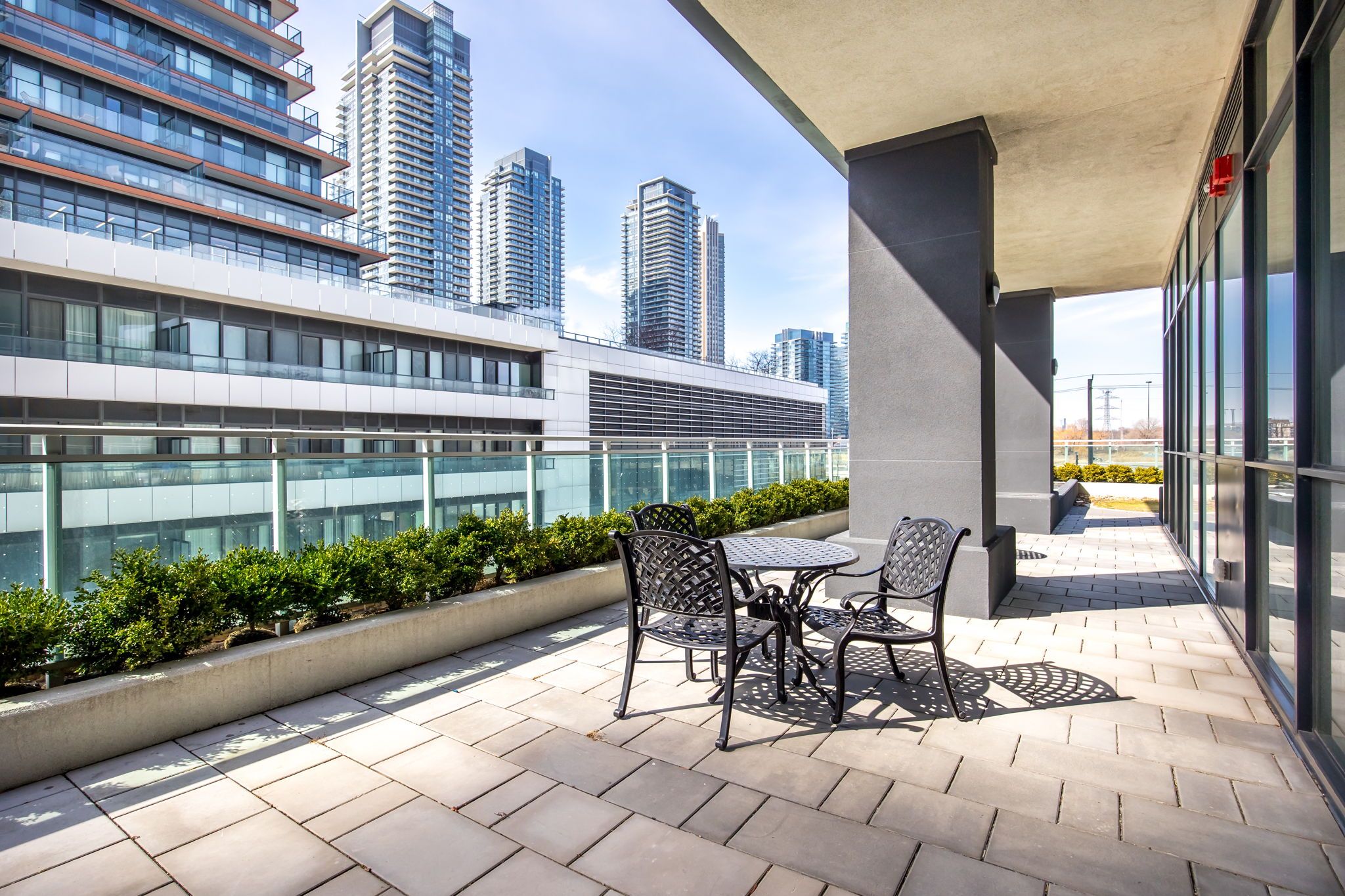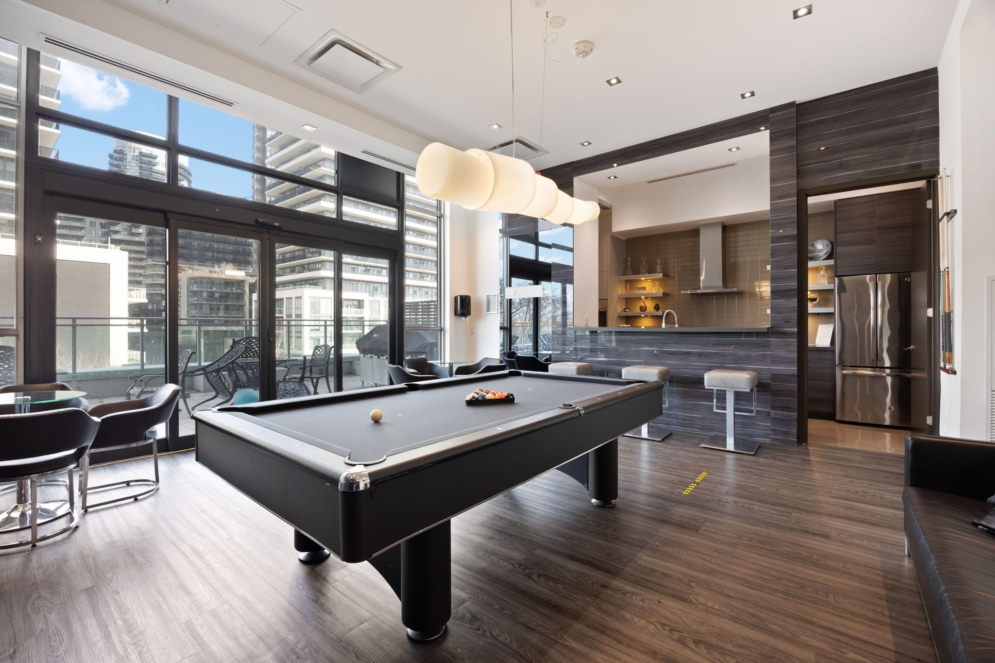 Welcome to jade waterfront condos, ideally located in the sought-after lakeside community of humber bay shores. Known for its striking wave-inspired balconies, this modern building offers a true resort-style lifestyle with an impressive selection of amenities, including a fully equipped fitness centre, party room, theatre, games room, golf simulator with putting green, yoga studio, sauna and hot tub, outdoor pool offers lounge seating with south-facing lake views, bbq terrace, guest suites, dog wash station, car wash, ample visitor parking, and 24-hour security and concierge service. This sun-filled lower-penthouse suite features floor-to-ceiling windows throughout, allowing natural light to pour in while offering beautiful lake views from every room. The thoughtfully designed split-bedroom layout provides privacy, complemented by a spacious den ideal for a nursery or home office space. High-end finishes and numerous owner upgrades create a warm and inviting atmosphere. Both bedrooms include ensuite bathrooms, with a separate powder room conveniently located off the generous foyer for guests. The suite is equipped with a full-size washer/dryer and laundry sink. A rare highlight is the 15 ft x 9 ft exclusive private locker room, located directly in front of the parking space, an exceptional condo living bonus. Enjoy breathtaking southwest views of lake ontario and the marina from the expansive balcony. Move-in ready and surrounded by fantastic restaurants, parks, waterfront trails, bike paths to downtown, grocery stores, coffee shops, the mimico cruising club marina, ttc, mimico go station, and the future park lawn go station, this is waterfront living at its finest.